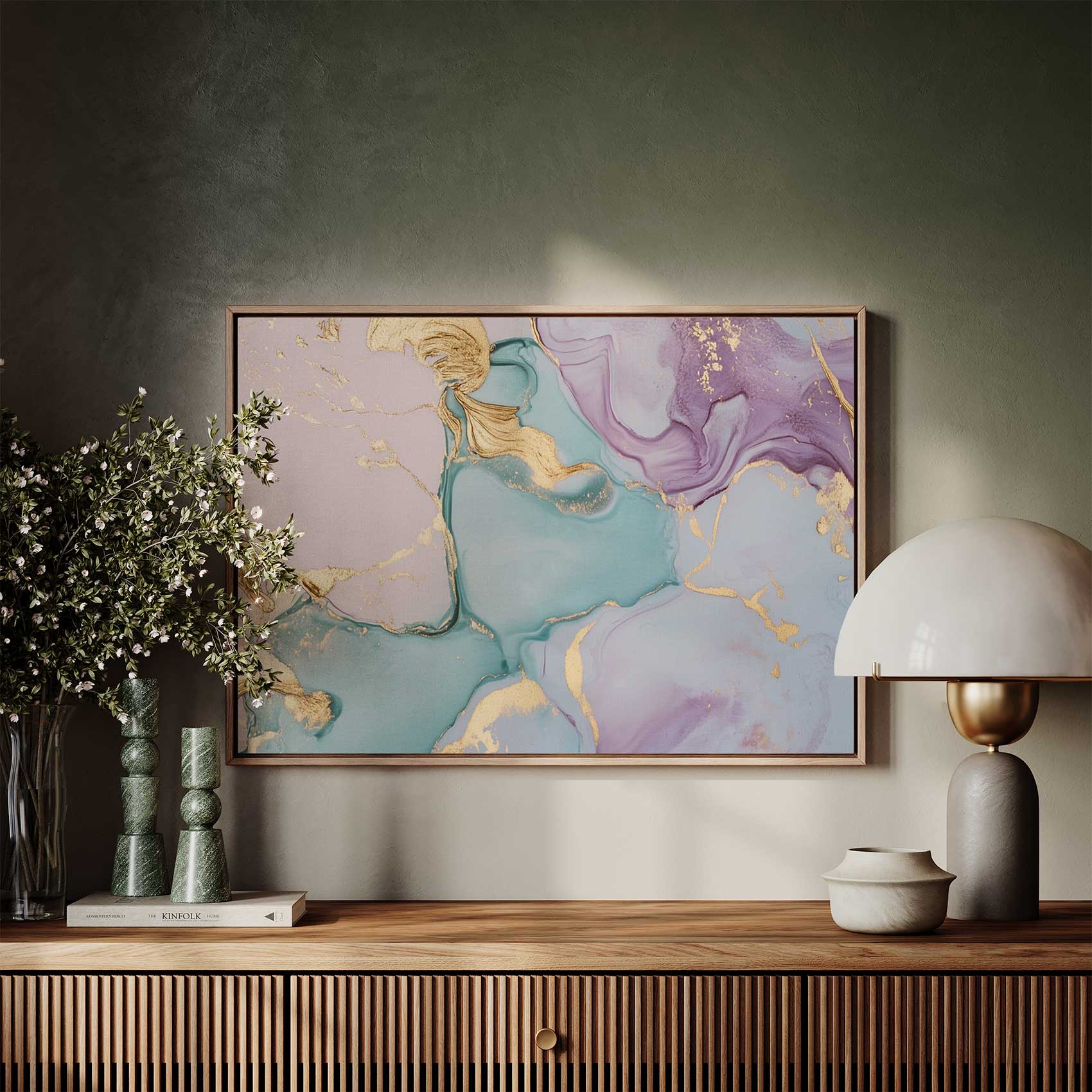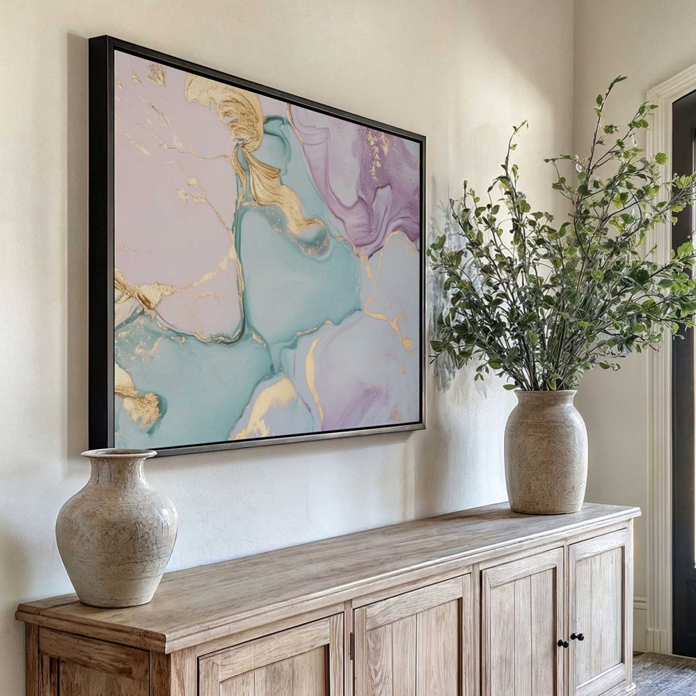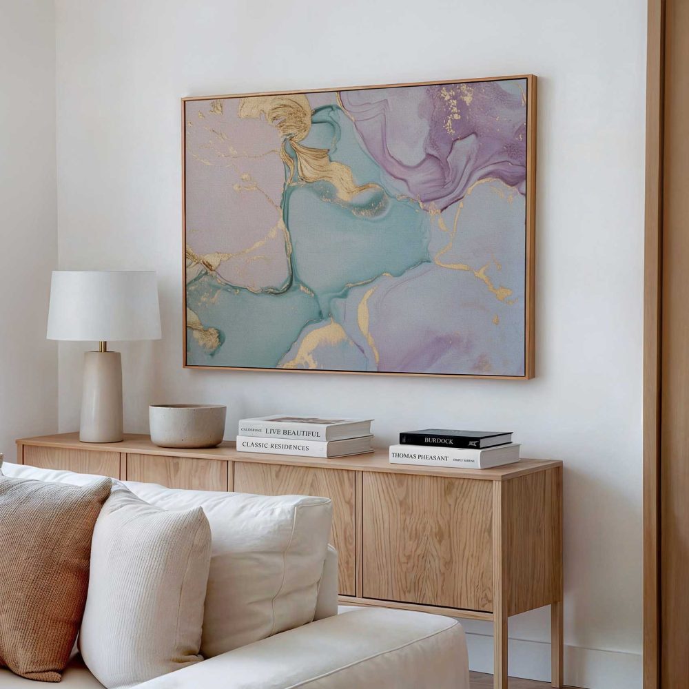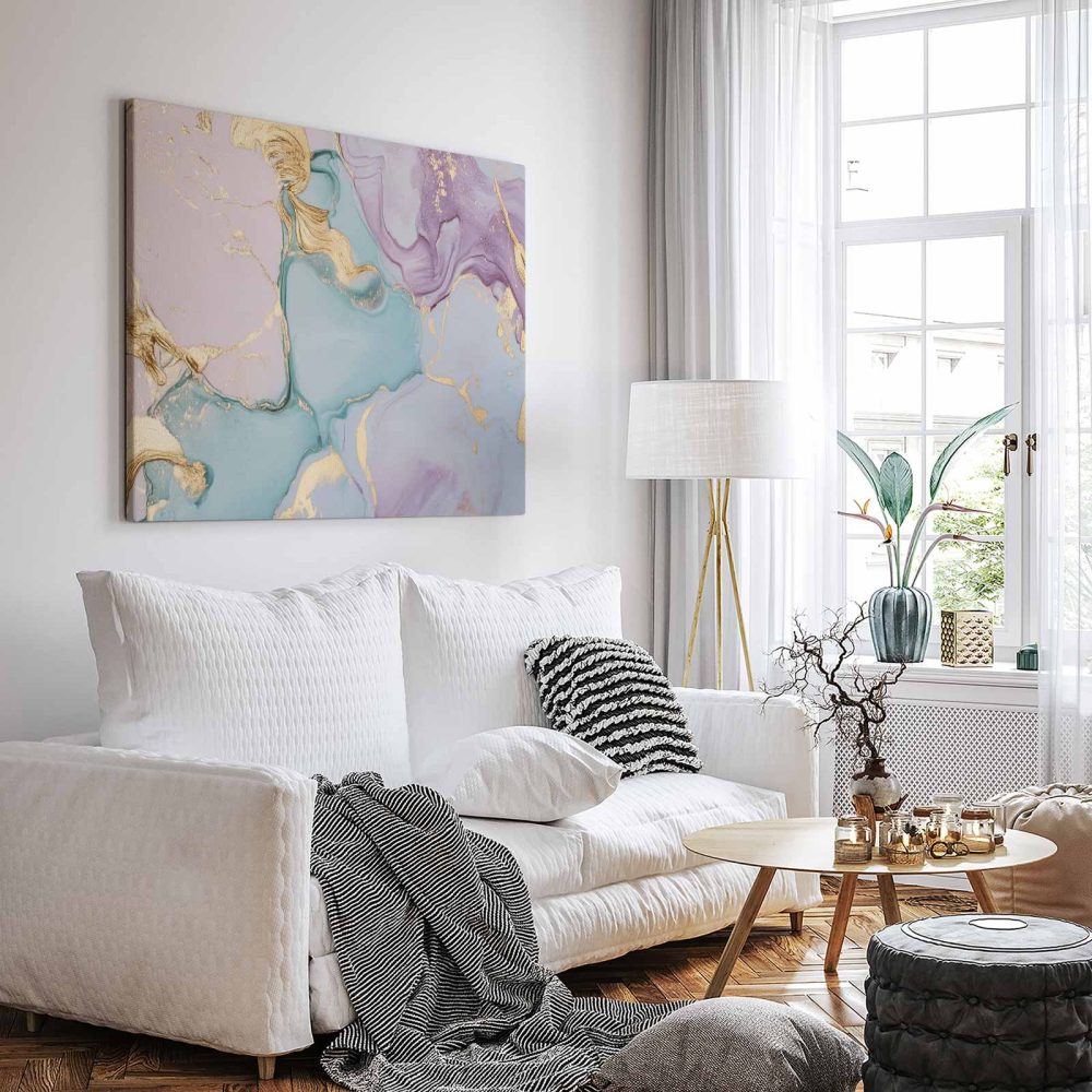 Terug naar collectie / Schilderijen / Abstract Schilderij / Abstracte Blauw-Paarse Gouden Swirl