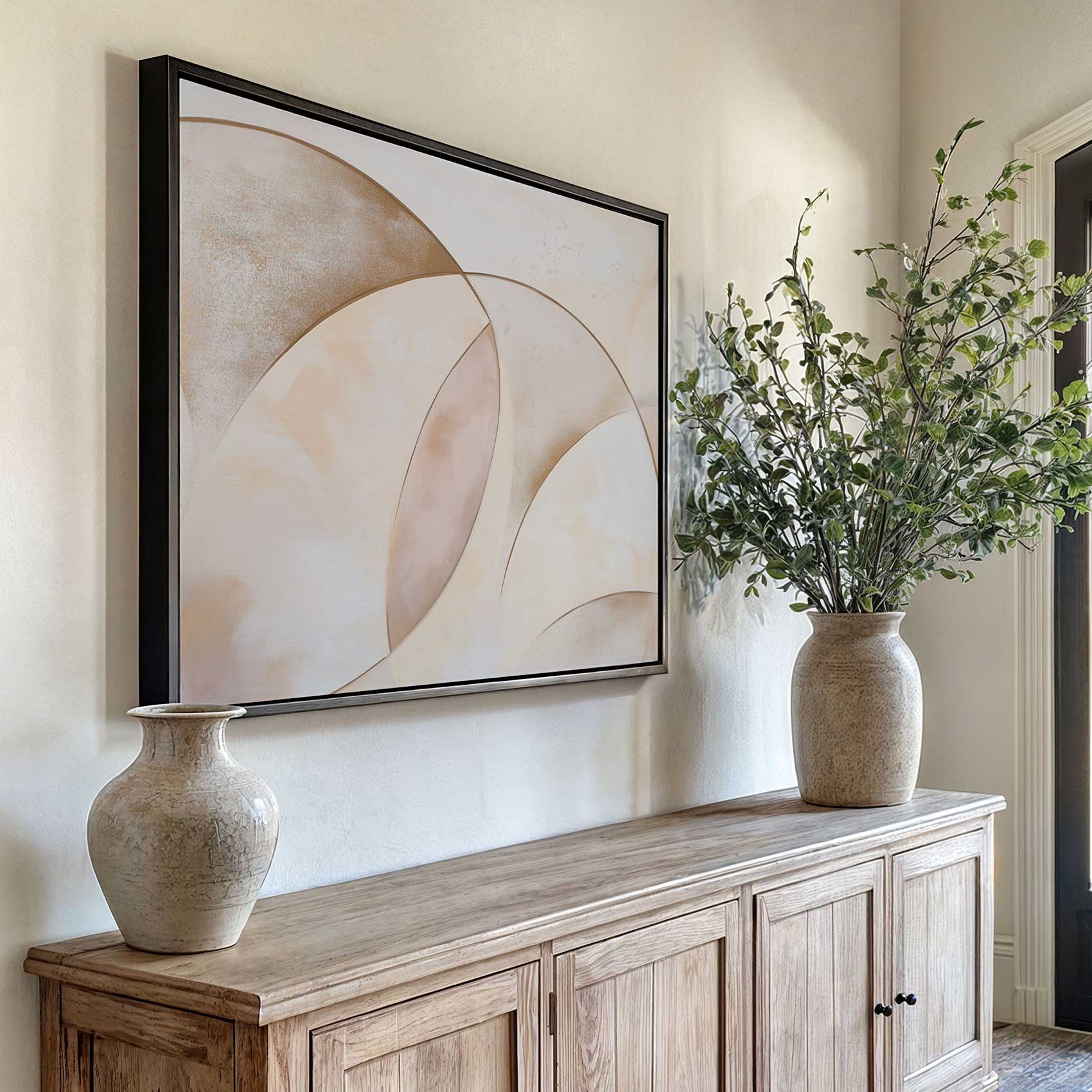 Terug naar collectie / Schilderijen / Abstract Schilderij / Abstracte cirkelharmonie in goud