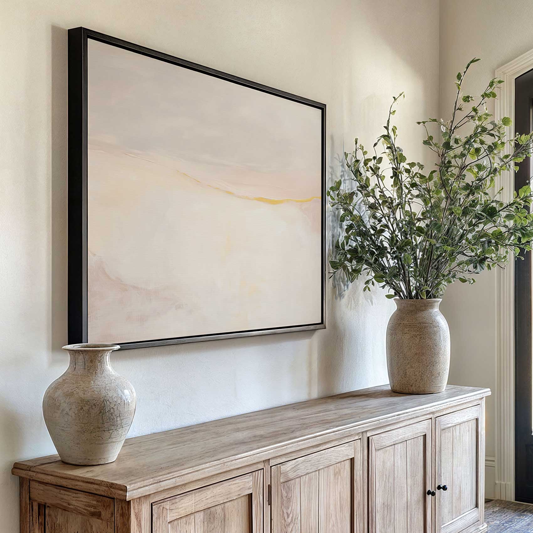Terug naar collectie / Schilderijen / Abstract Schilderij / Abstracte gele lijn landschap
