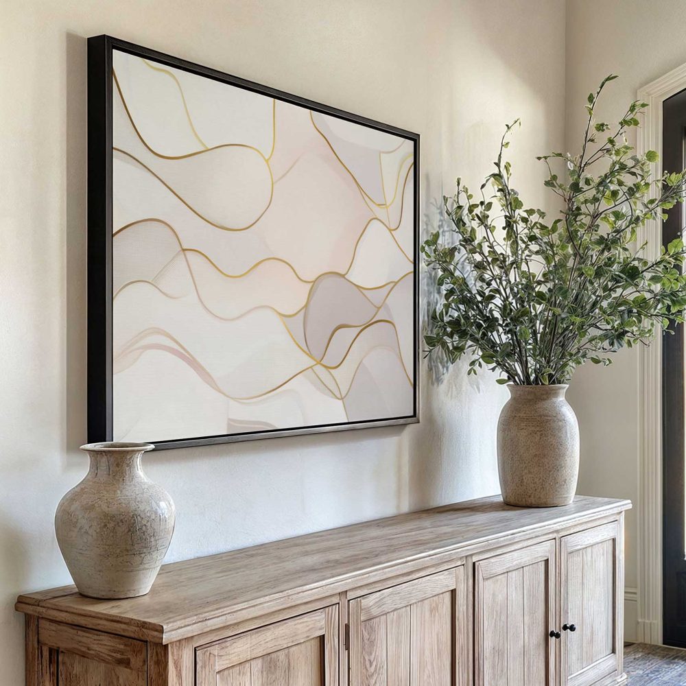 Terug naar collectie / Schilderijen / Abstract Schilderij / Abstracte goud-witte elegantie