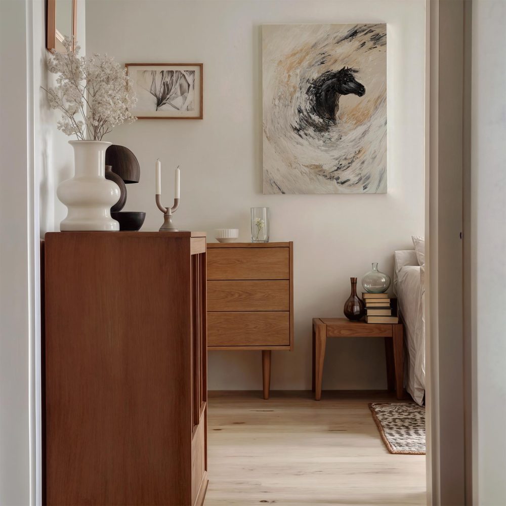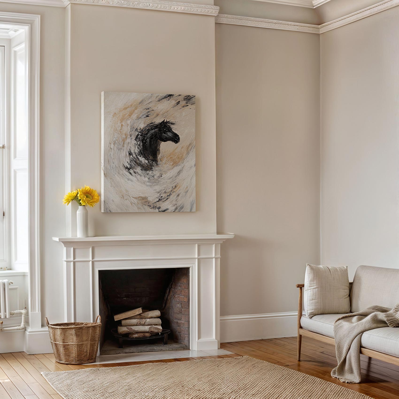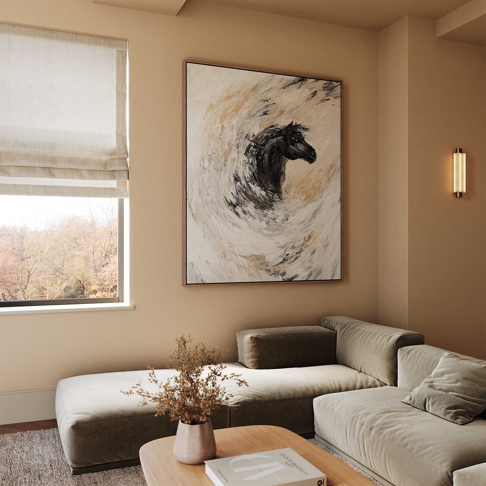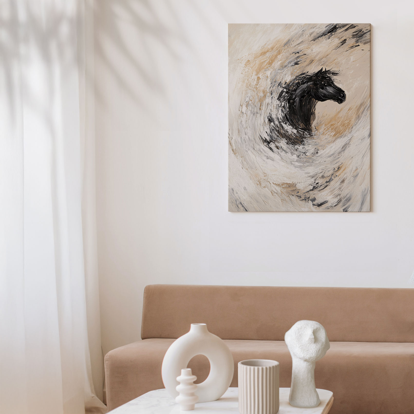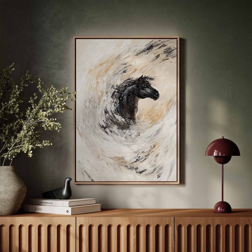 Terug naar collectie / Schilderijen / Abstract Schilderij / Abstracte rennende zwarte paard