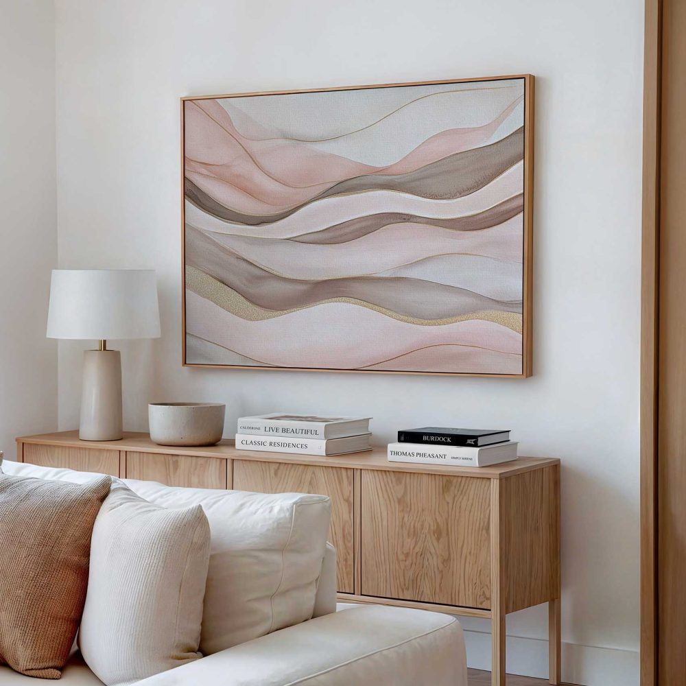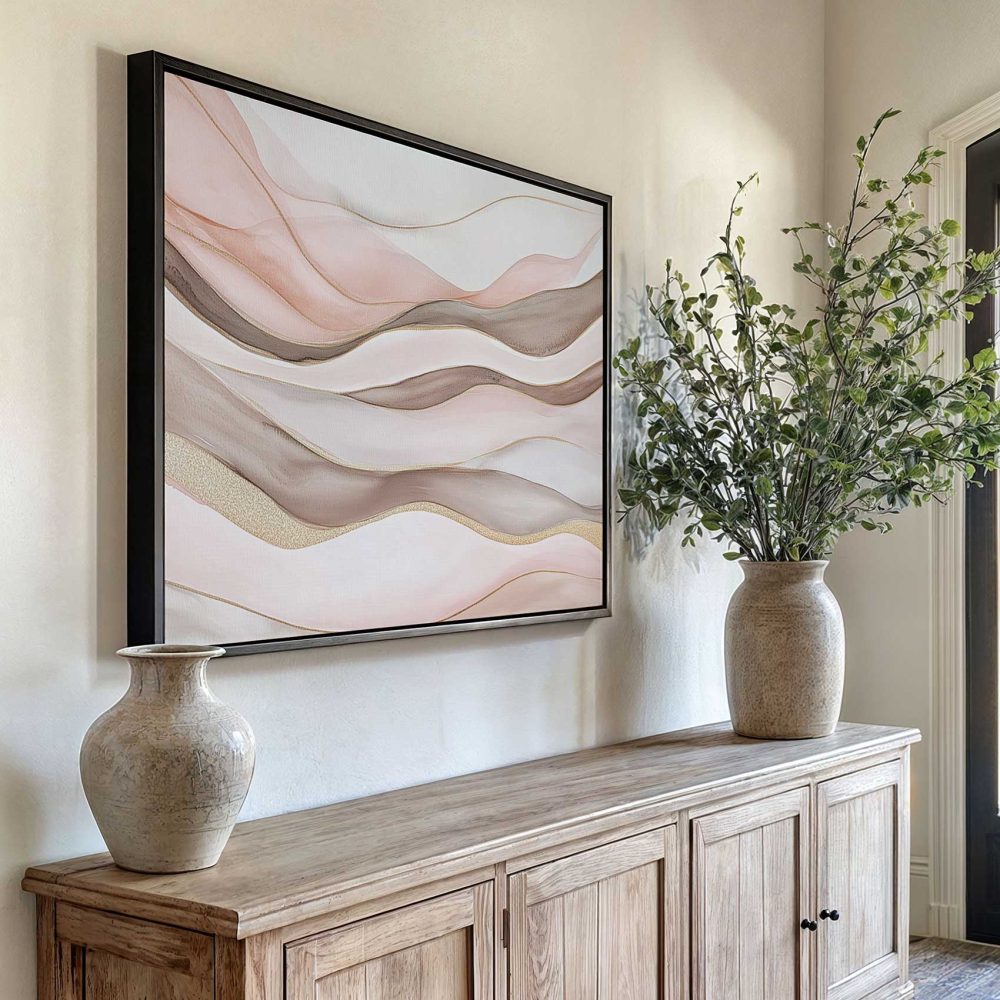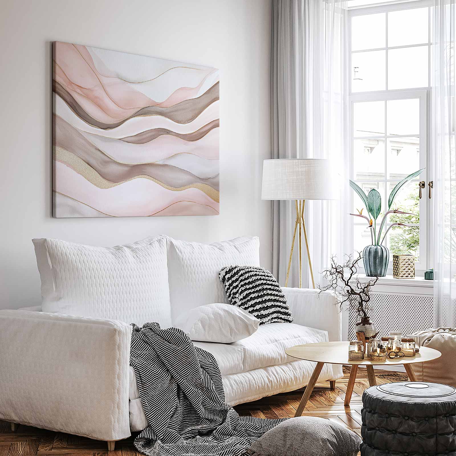 Terug naar collectie / Schilderijen / Abstract Schilderij / Abstracte roze-bruine golfcompositie