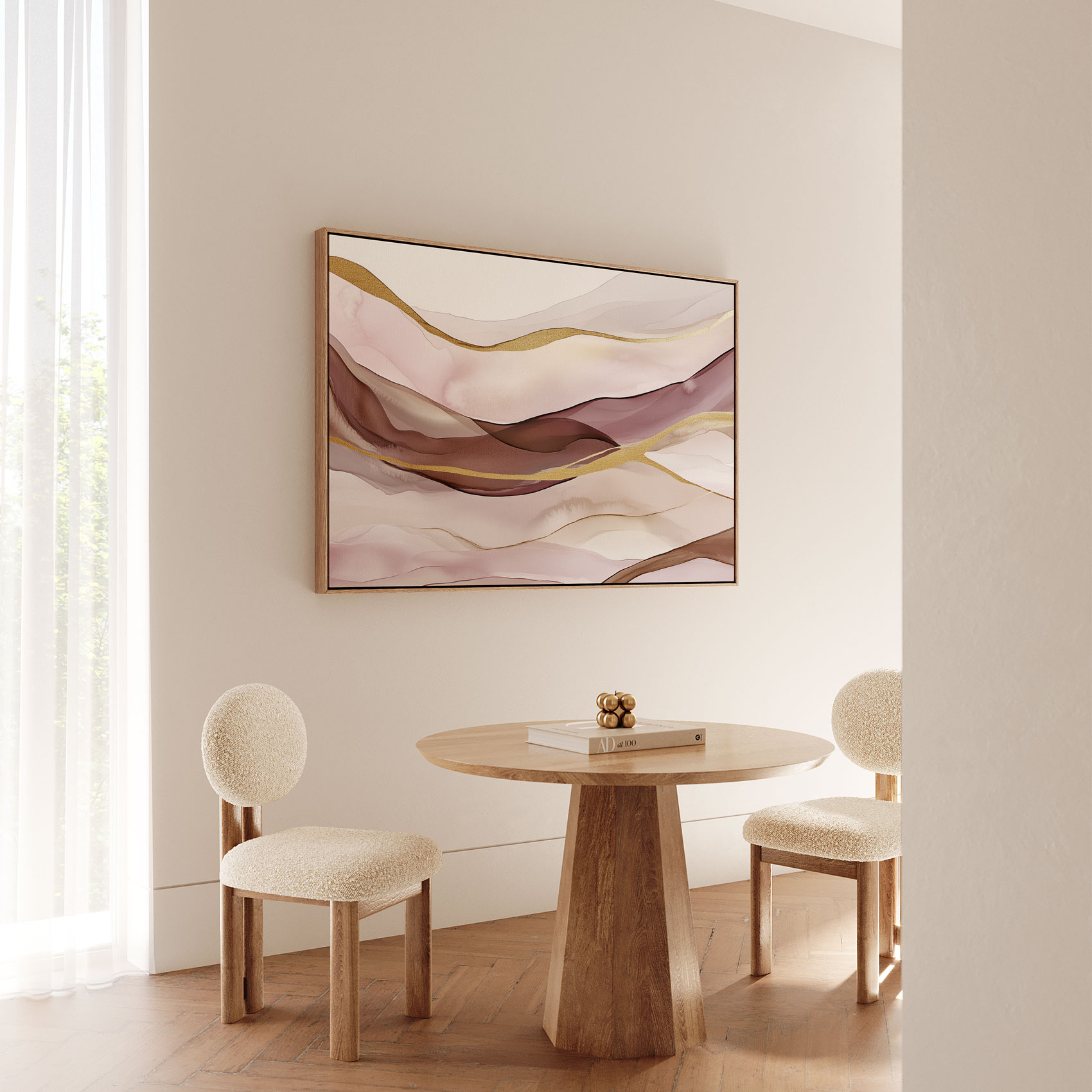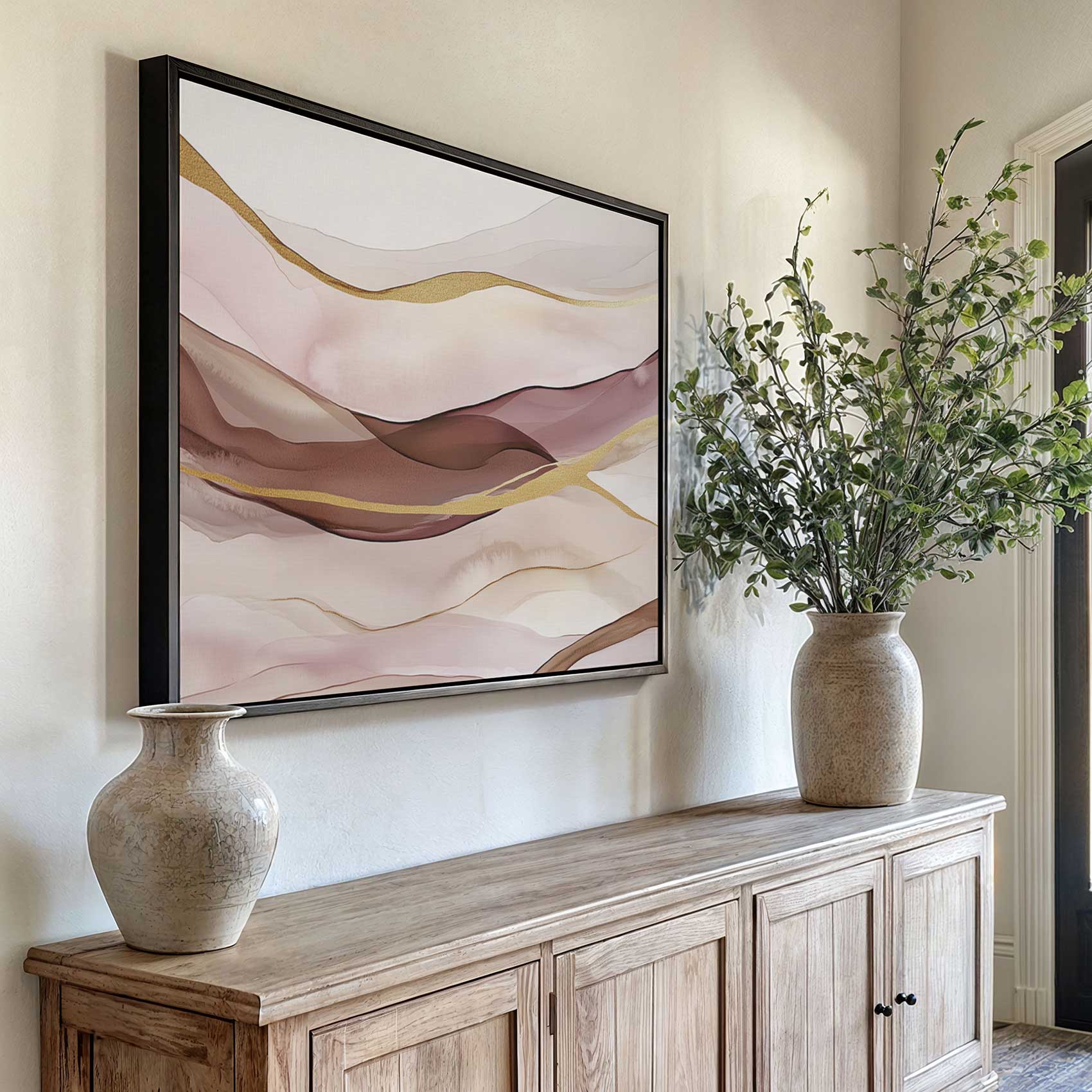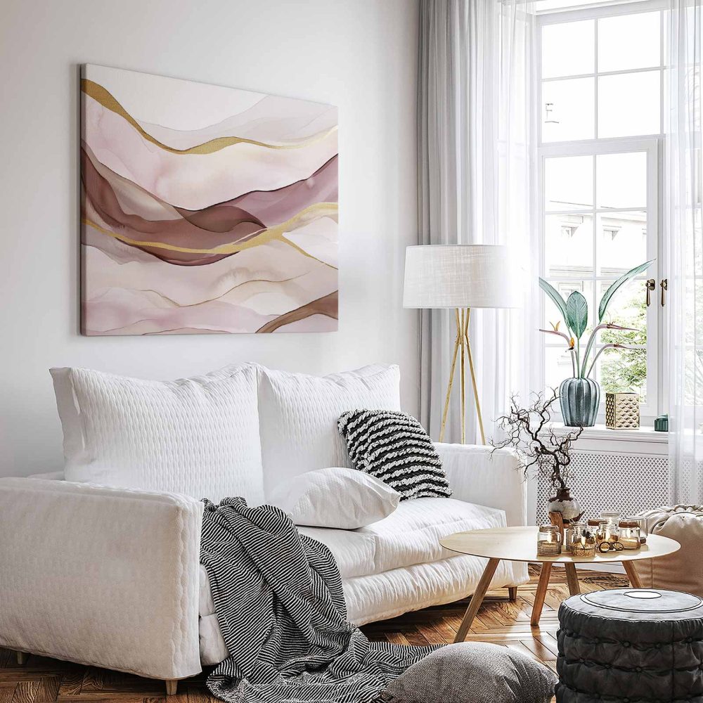 Terug naar collectie / Schilderijen / Abstract Schilderij / Abstracte Roze Gouden Golven