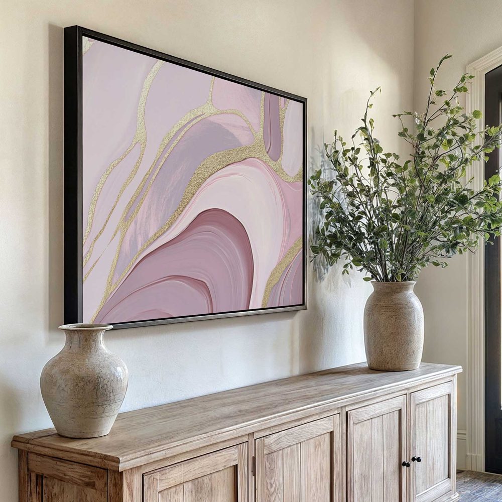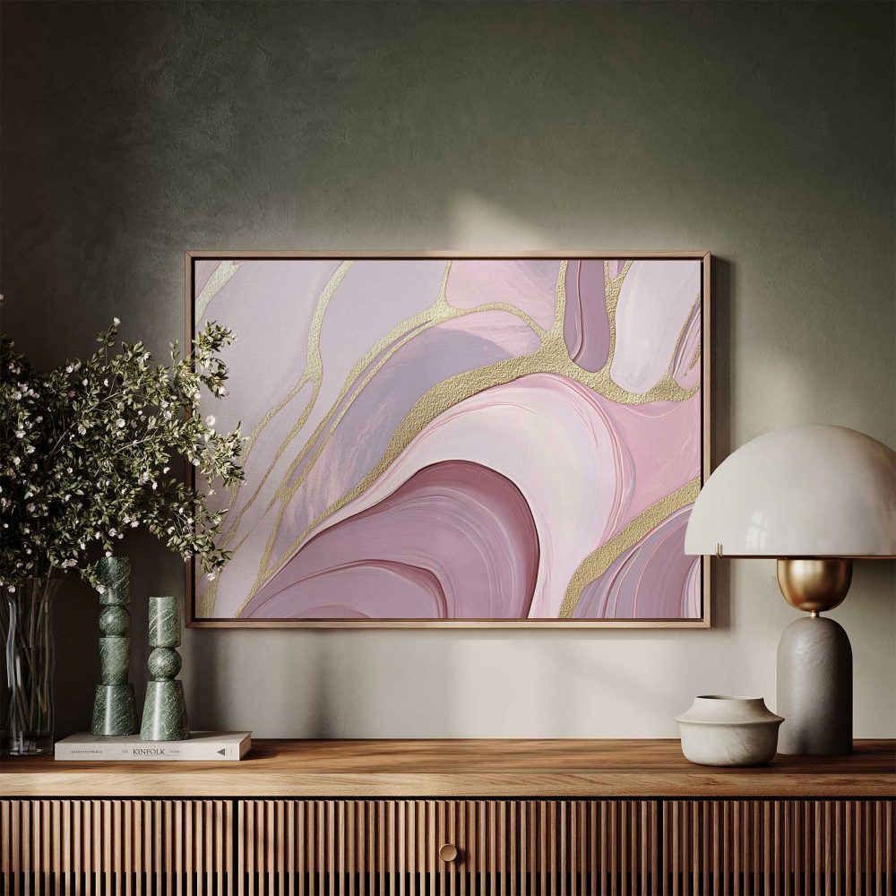 Terug naar collectie / Schilderijen / Abstract Schilderij / Abstracte Roze-Gouden Swirl Achtergrond