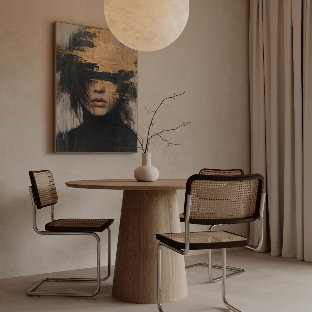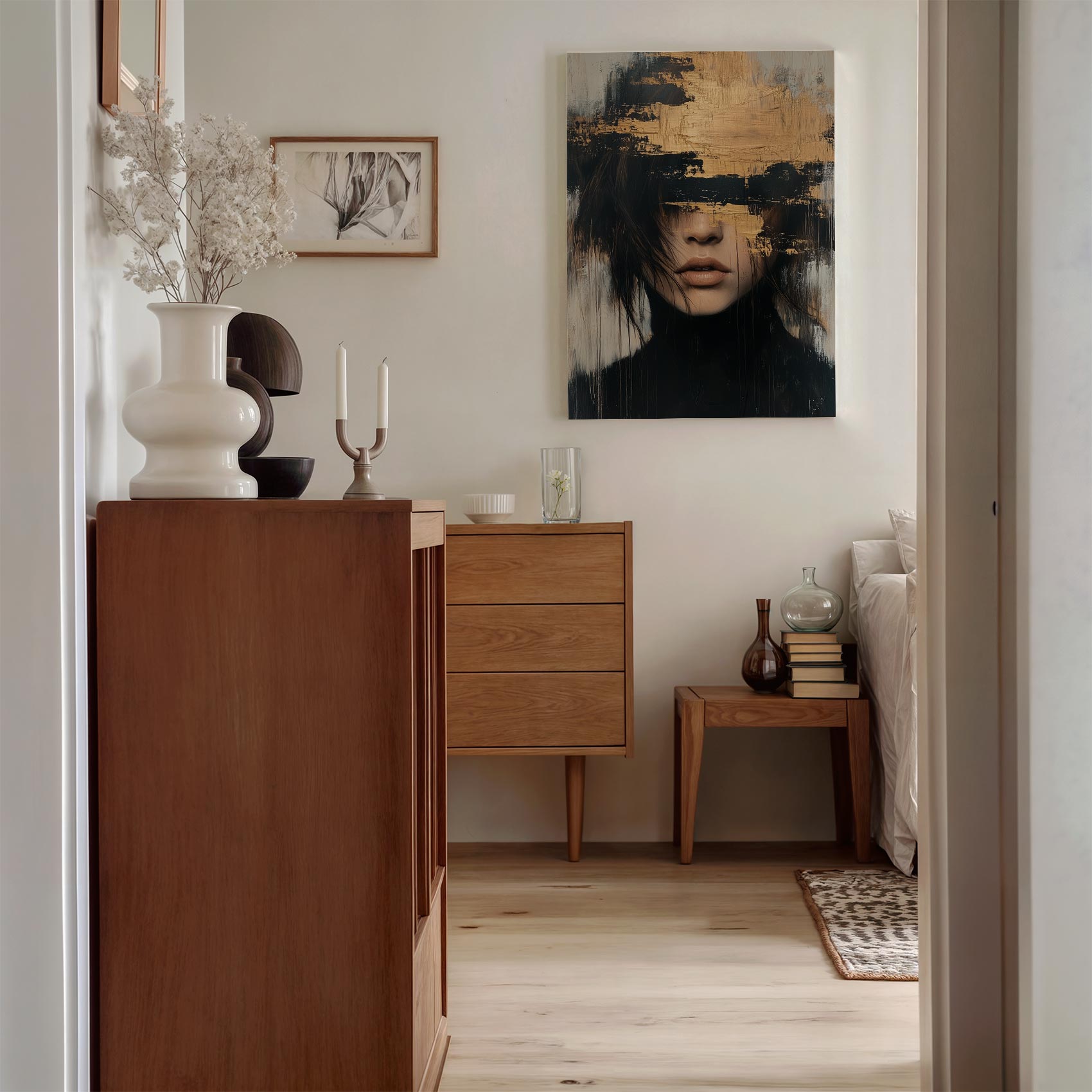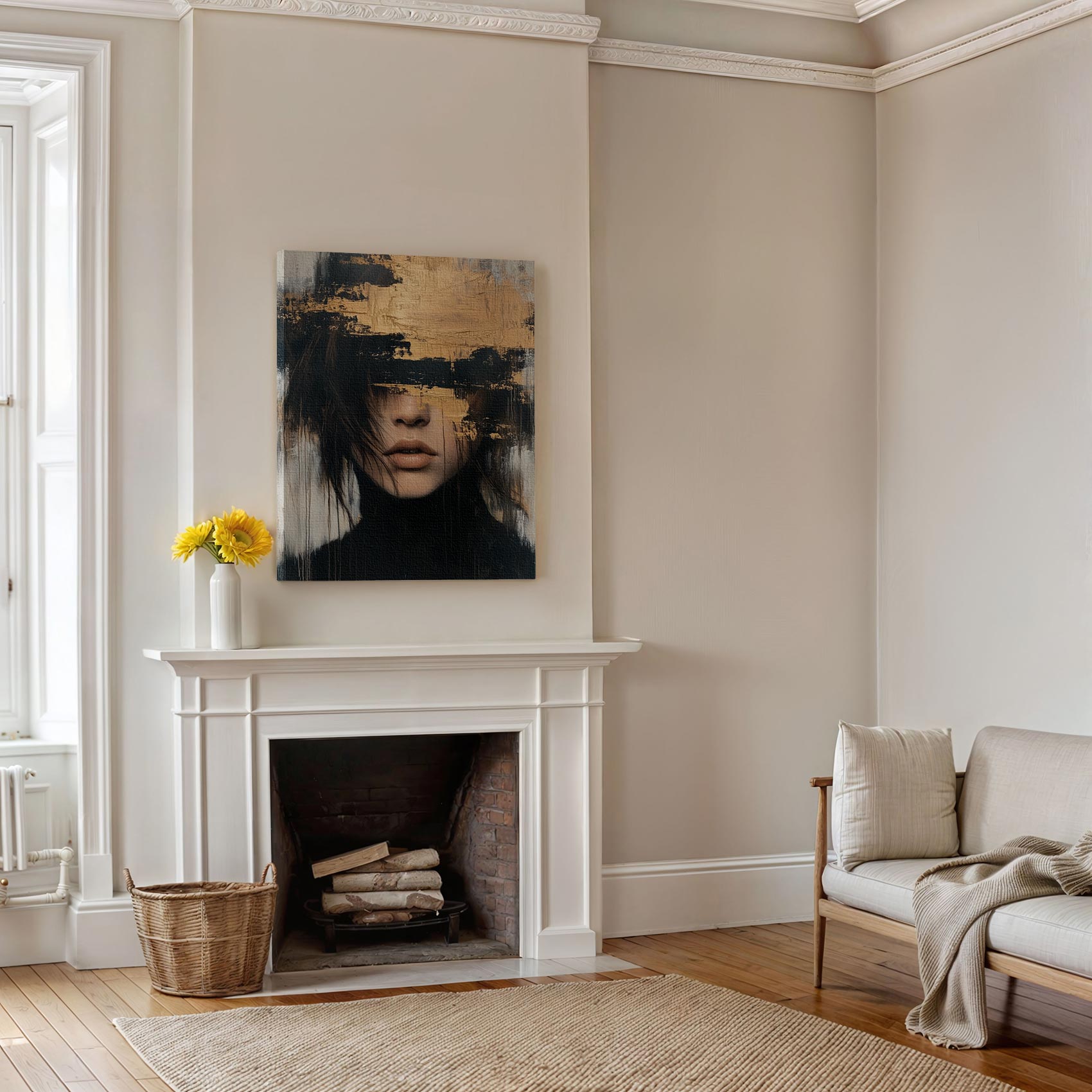 Terug naar collectie / Schilderijen / Abstract Schilderij / Abstracte vrouw met goudwind