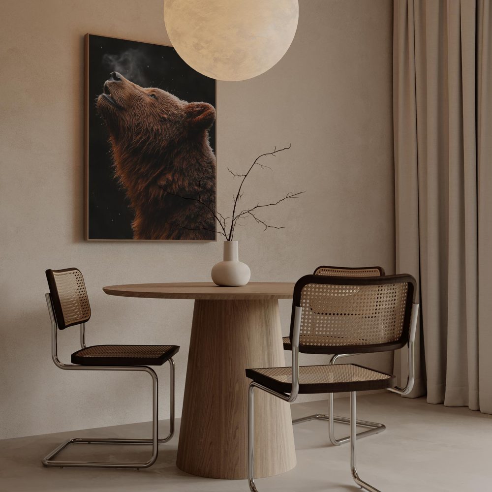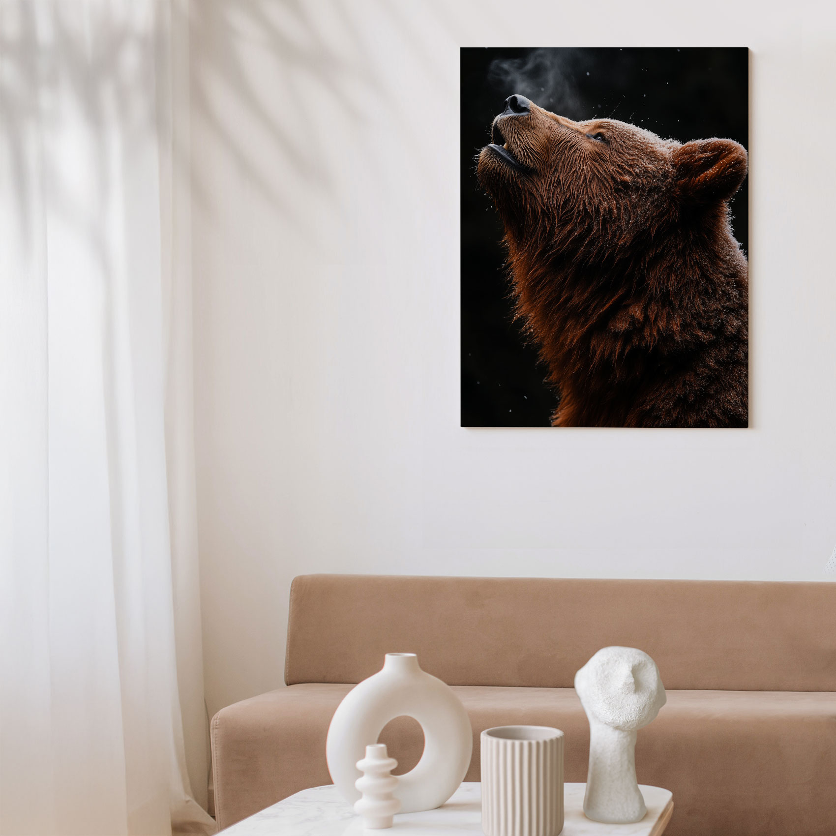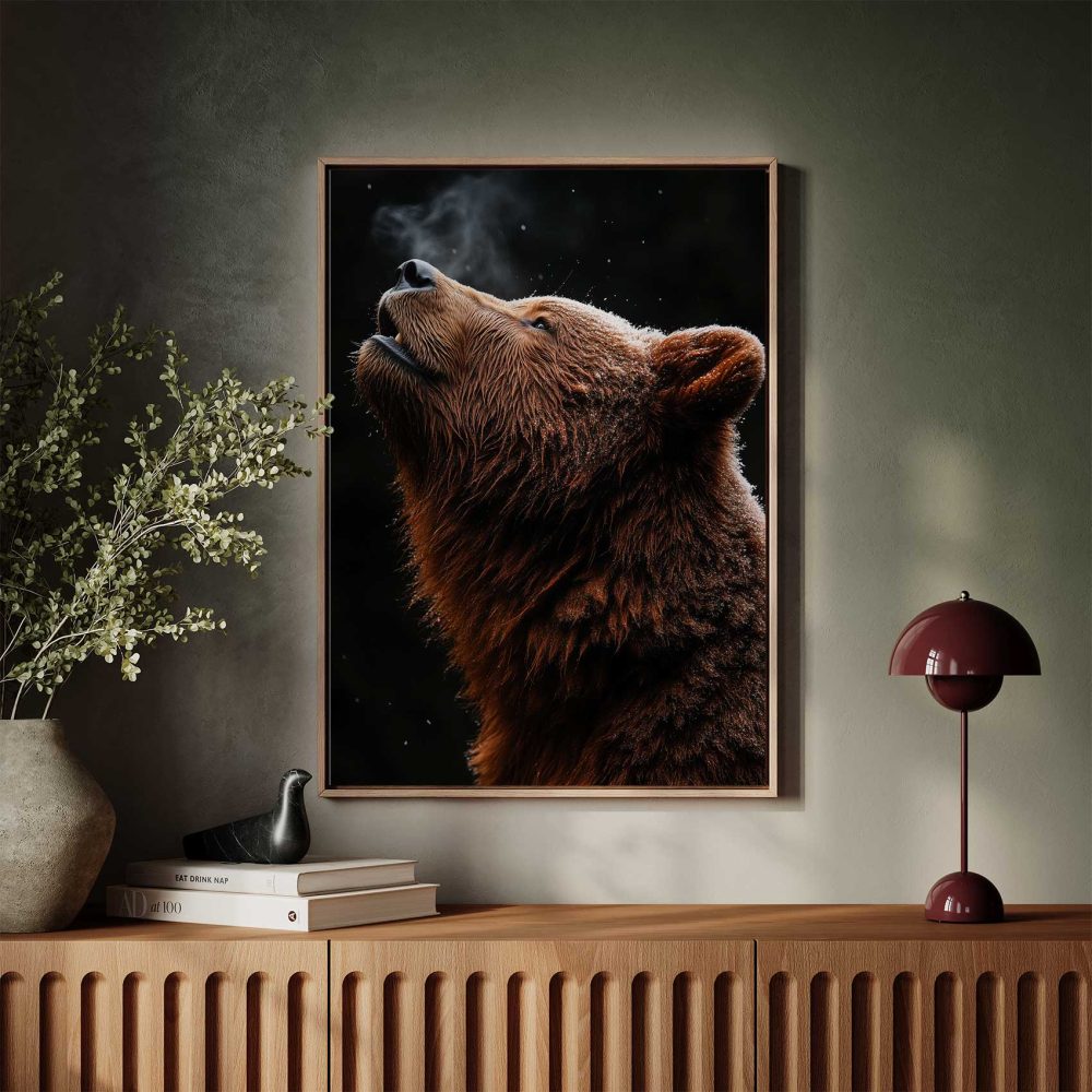 Terug naar collectie / Schilderijen / Bergen Schilderij / Alertte bruine beer in sneeuw