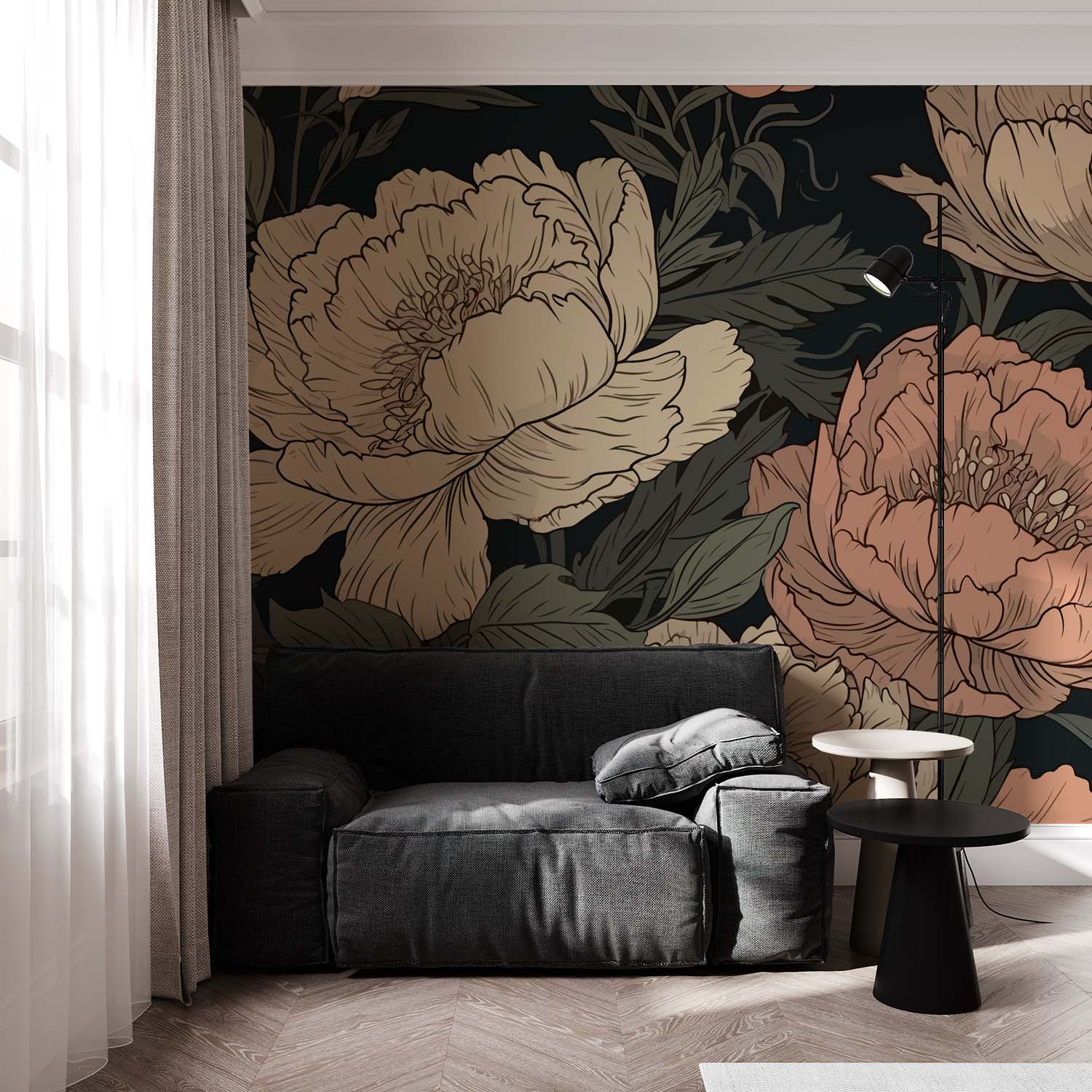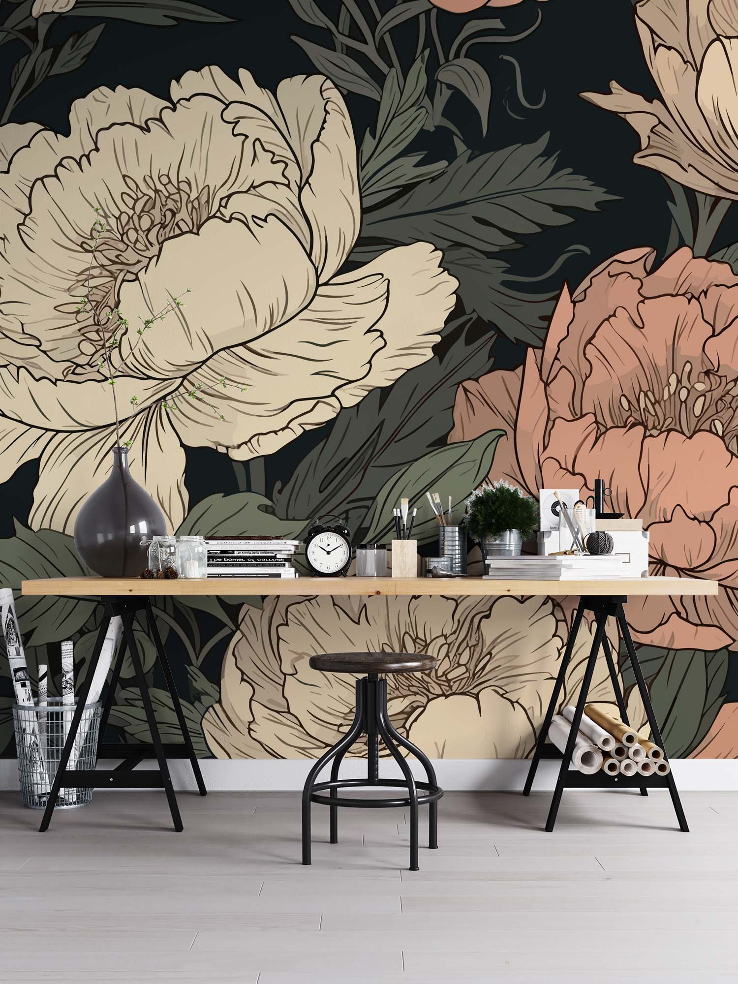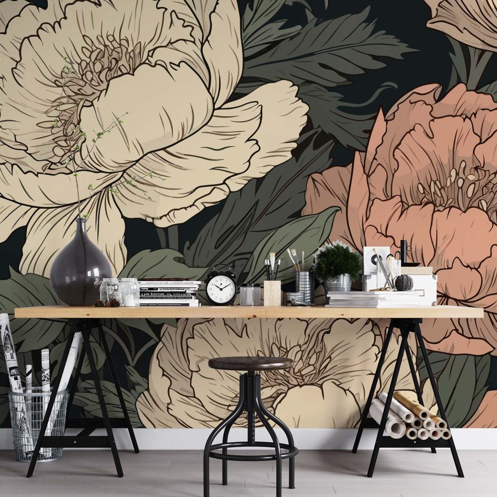 Artistieke Peonieën Behang