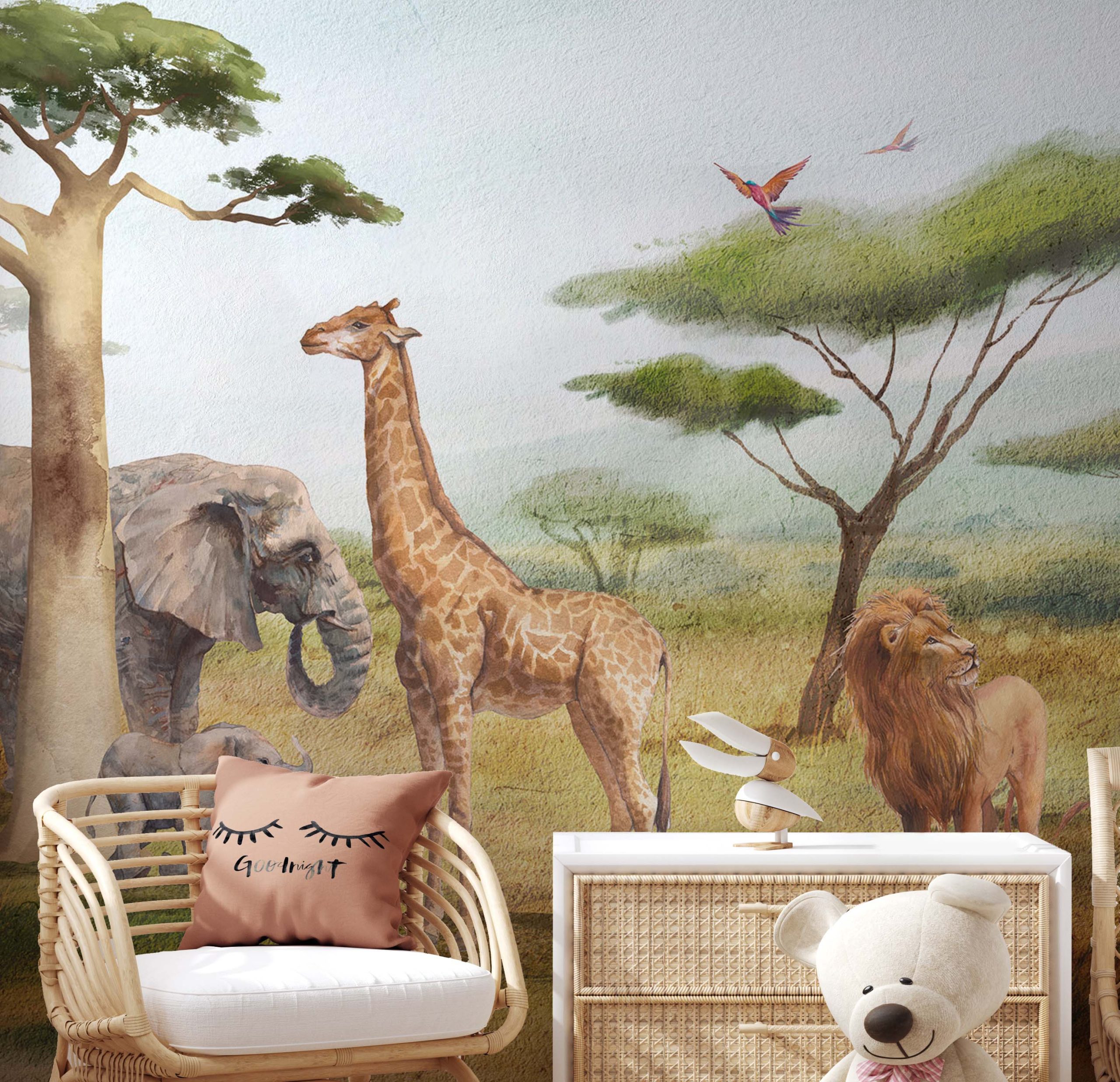 Terug naar collectie / Behang / Kinderkamer behang / Babykamer behang / Avontuurlijk Dierenbehang Kinderkamer