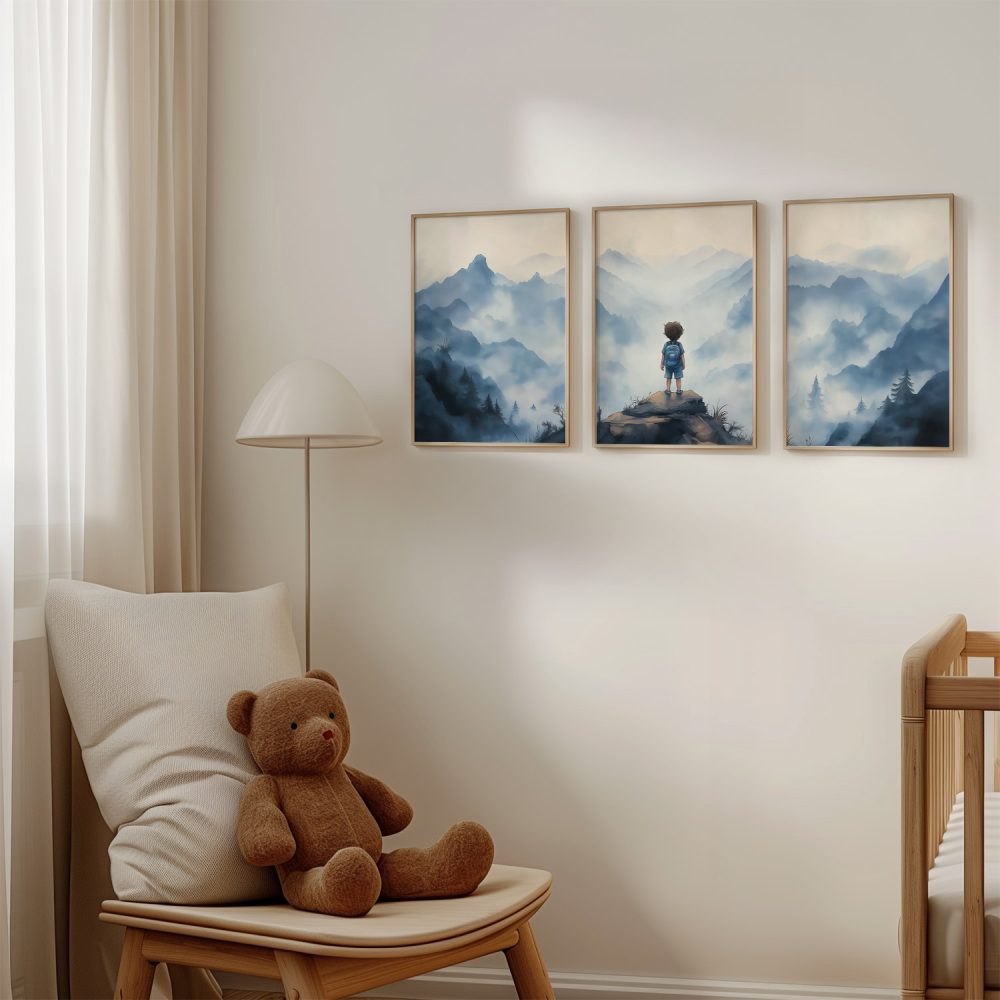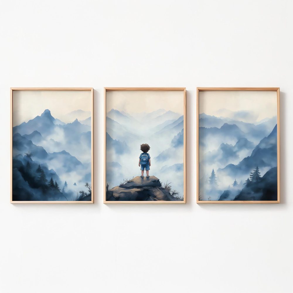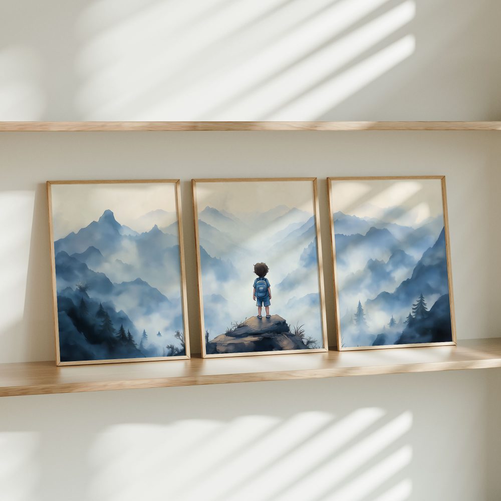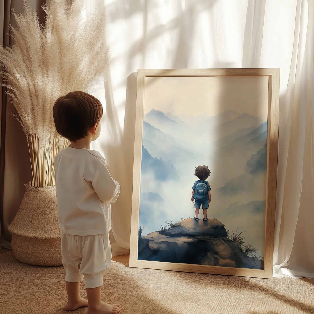 Terug naar collectie / Kinderkamer posters / Avontuurlijk posters / Avontuurlijke jongen op mysterieuze bergen