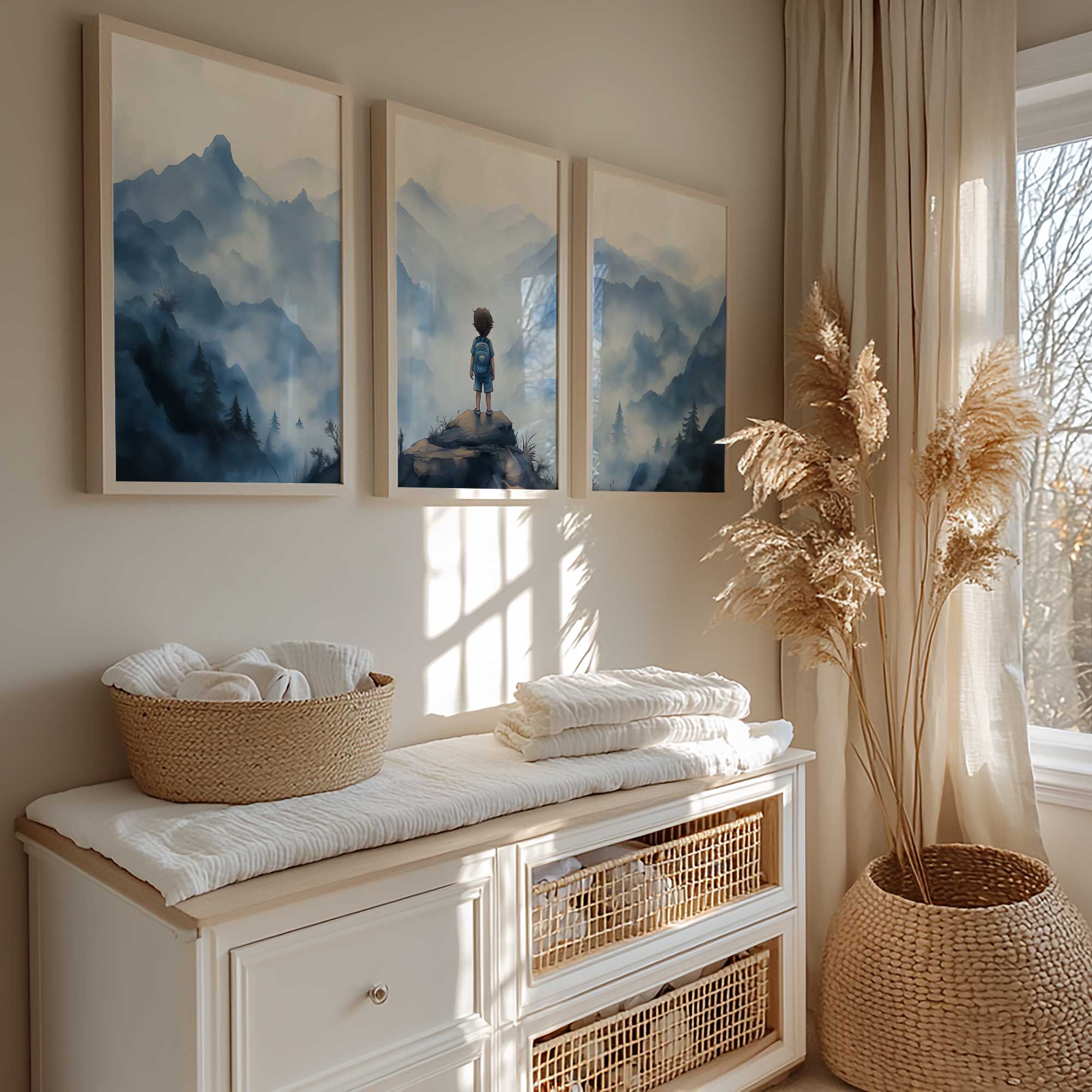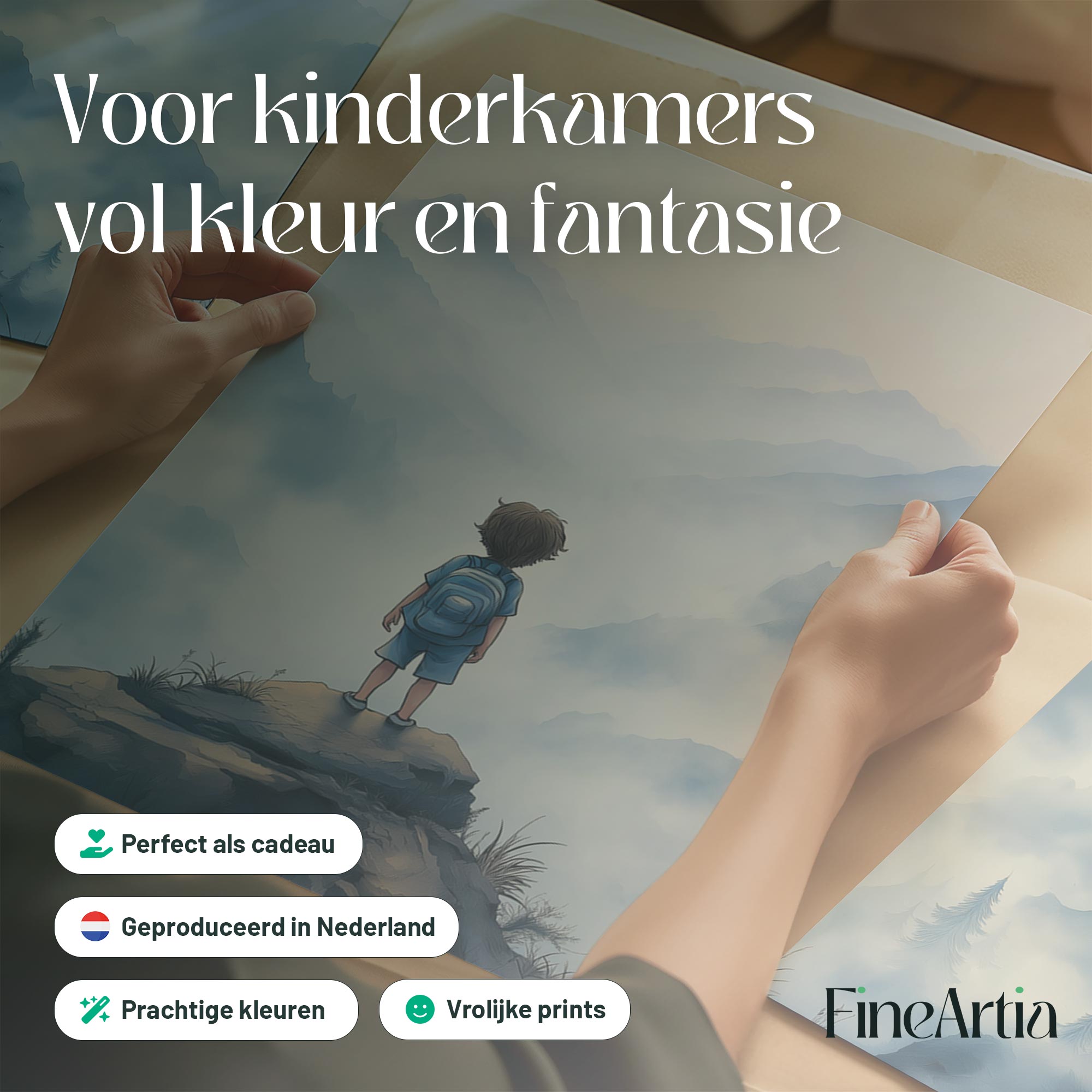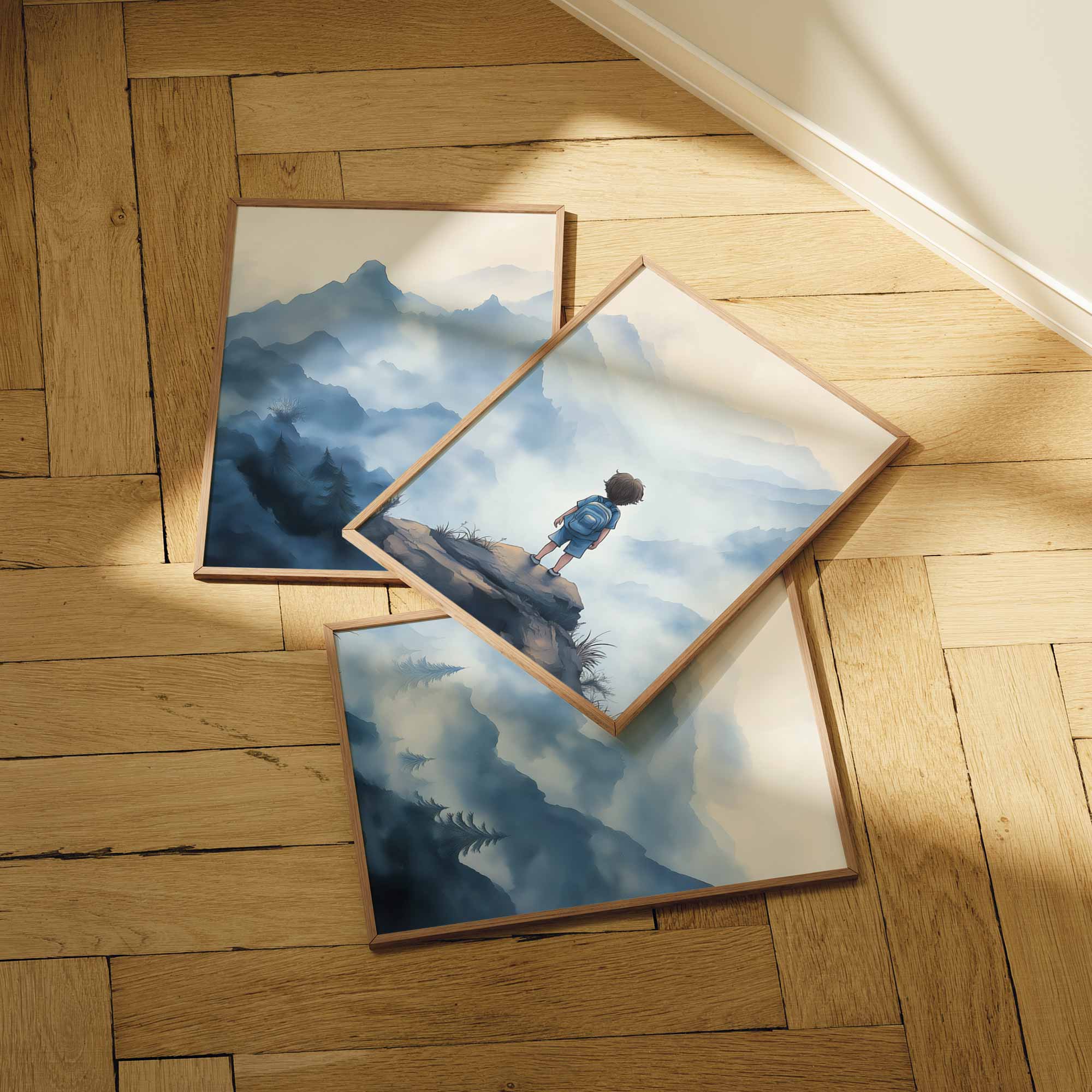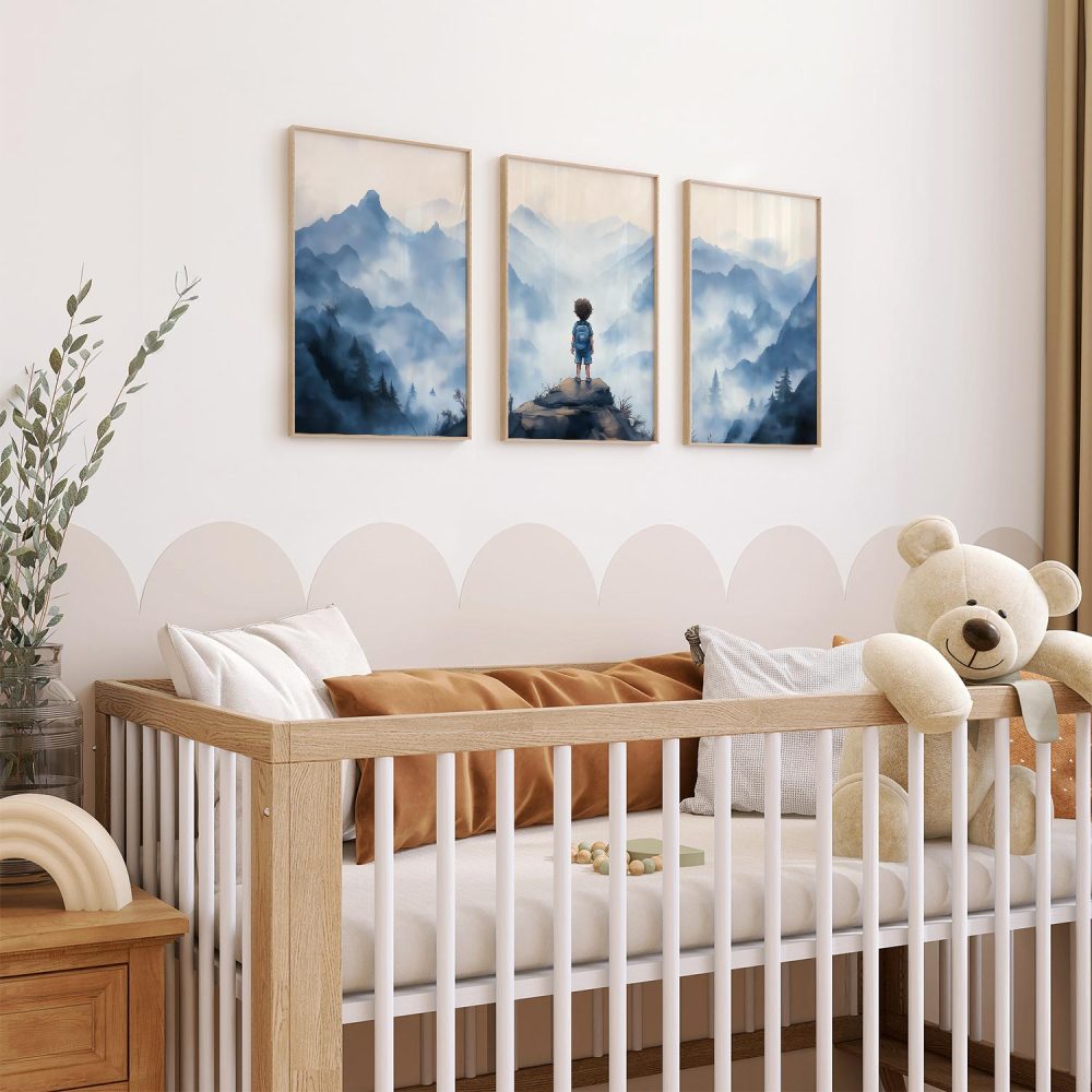 Terug naar collectie / Kinderkamer posters / Avontuurlijk posters / Avontuurlijke jongen op mysterieuze bergen
