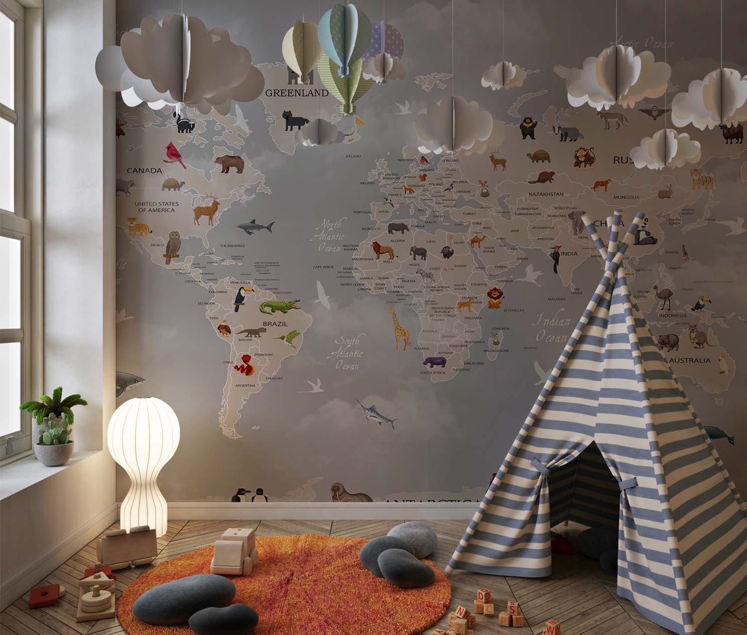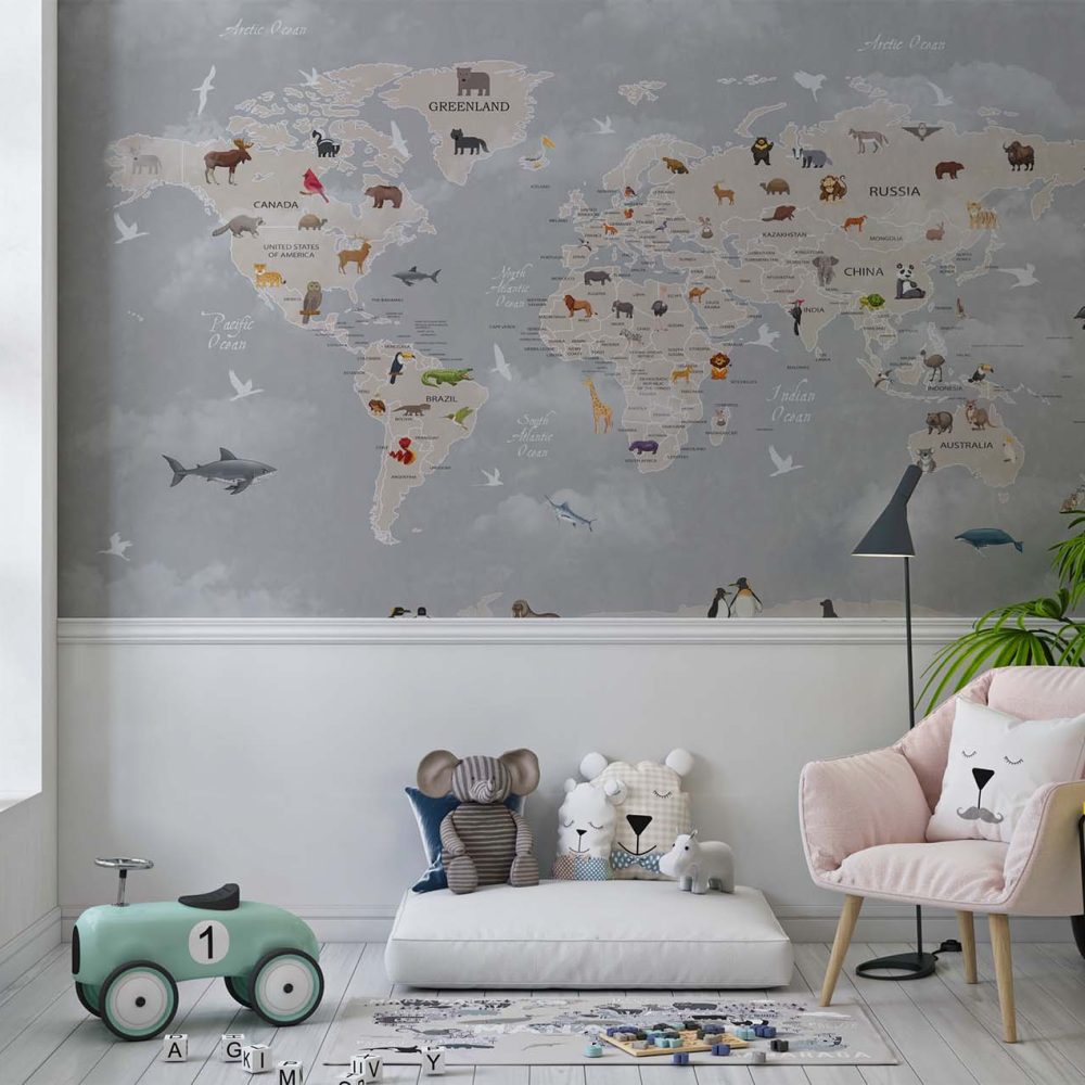 Avontuurlijke Kinderkamer Wereldkaart Behang