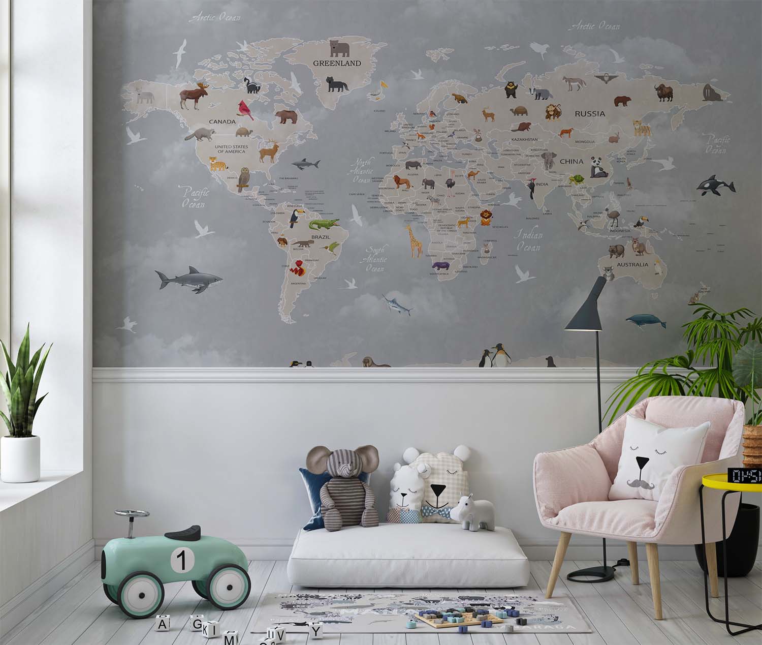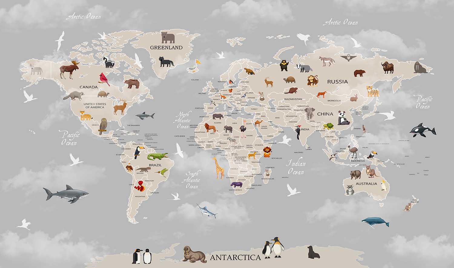Terug naar collectie / Behang / Kinderkamer behang / Avontuurlijk behang / Avontuurlijke Kinderkamer Wereldkaart Behang