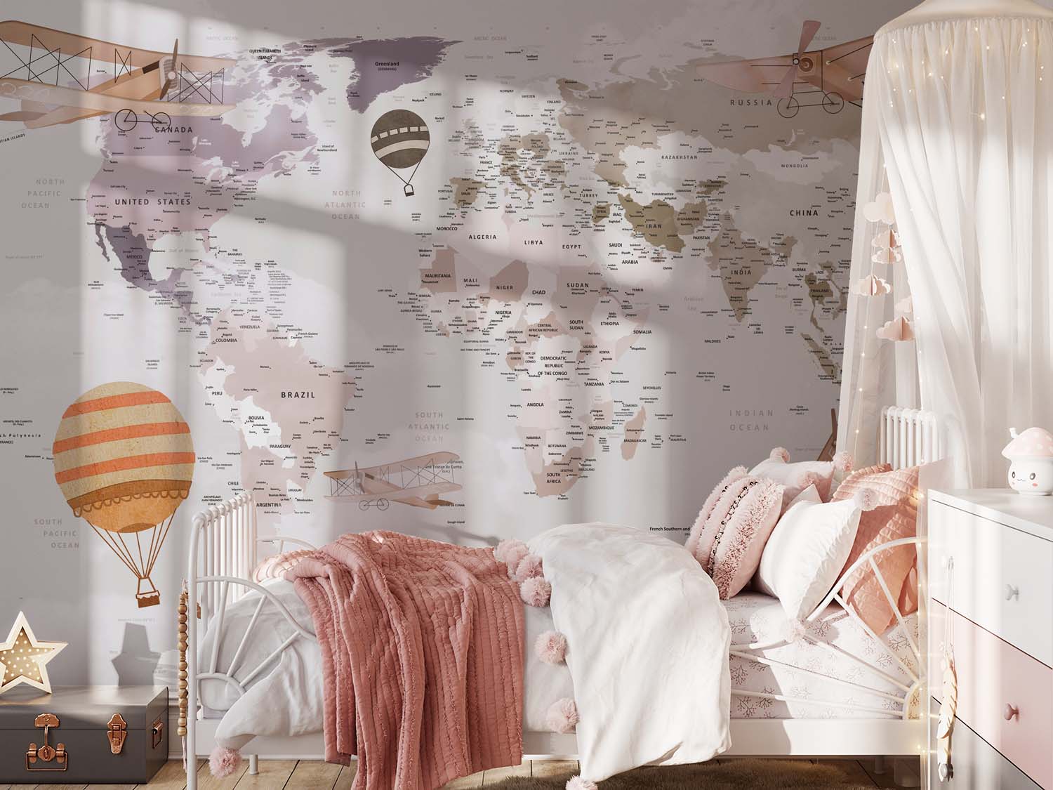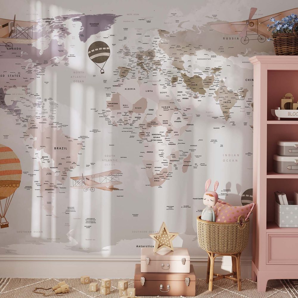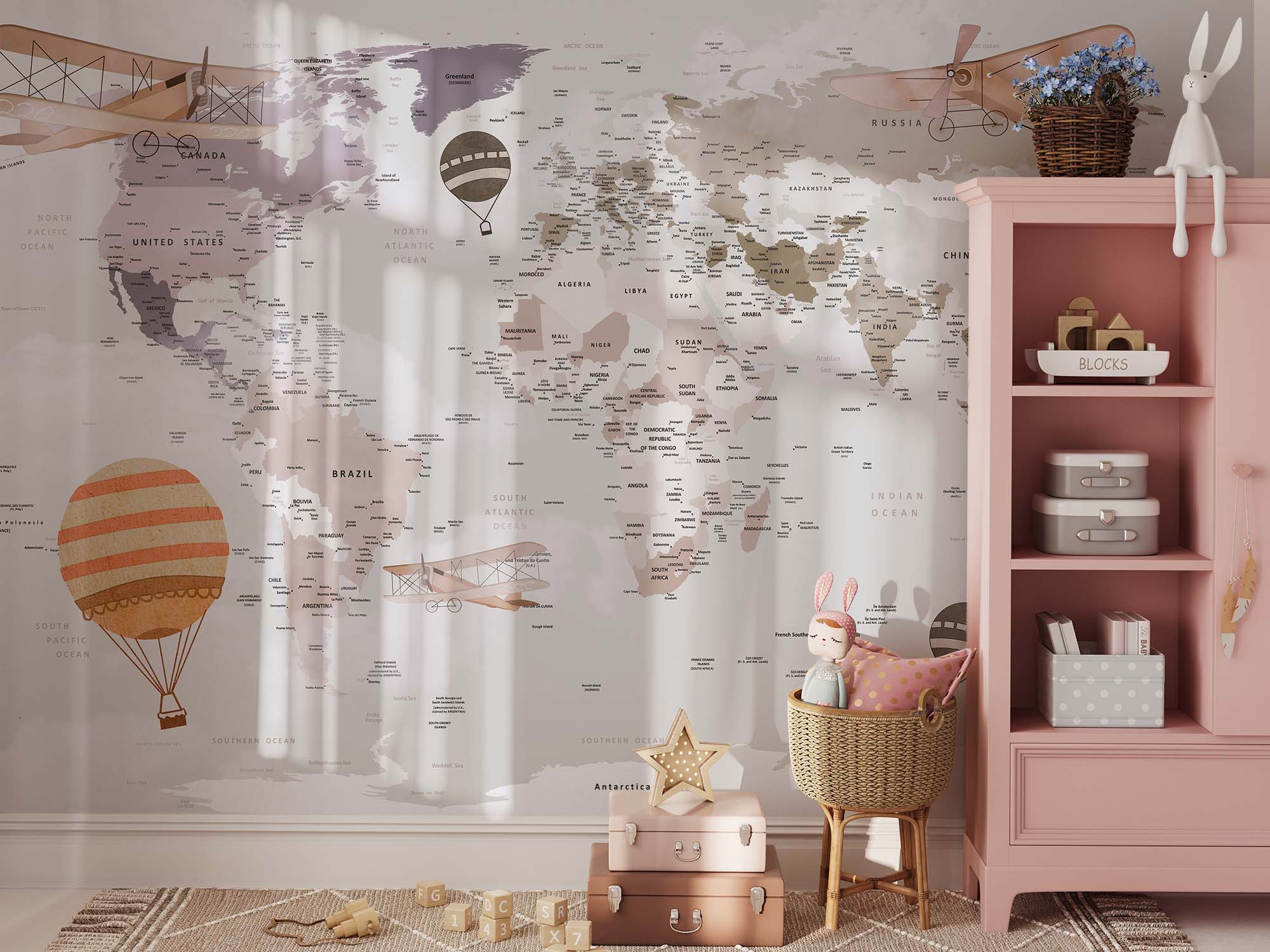 Terug naar collectie / Behang / Kinderkamer behang / Avontuurlijk behang / Avontuurlijke Wereldkaart Kinderbehang