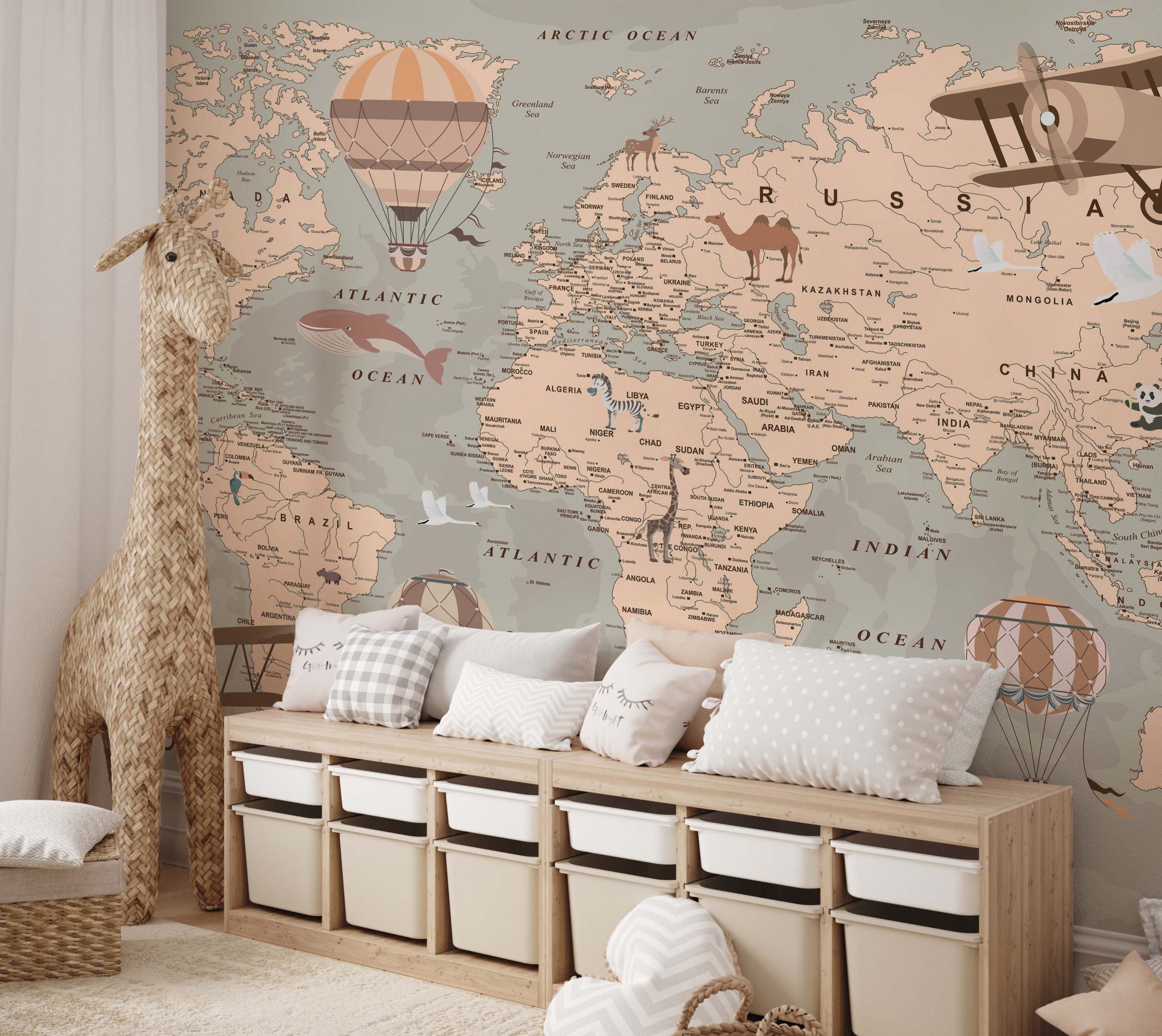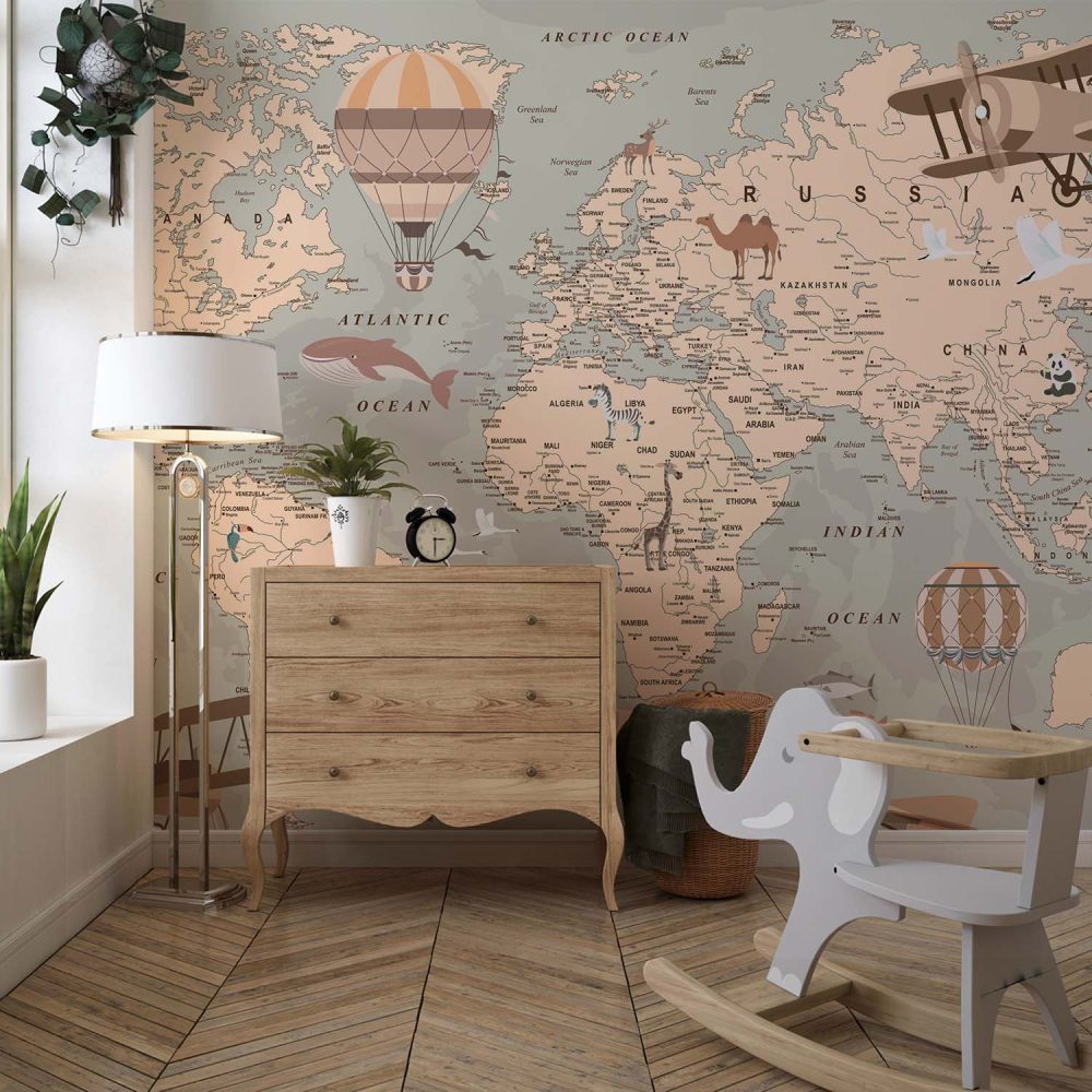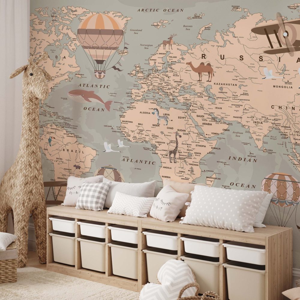 Avontuurlijke Wereldkaart Kinderkamer Behang