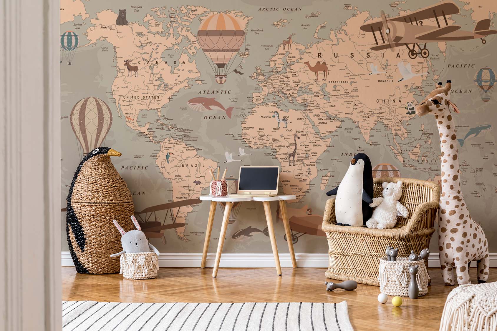 Terug naar collectie / Behang / Kinderkamer behang / Avontuurlijk behang / Avontuurlijke Wereldkaart Kinderkamer Behang