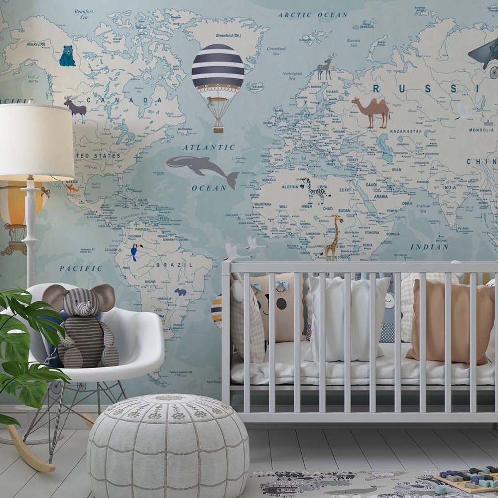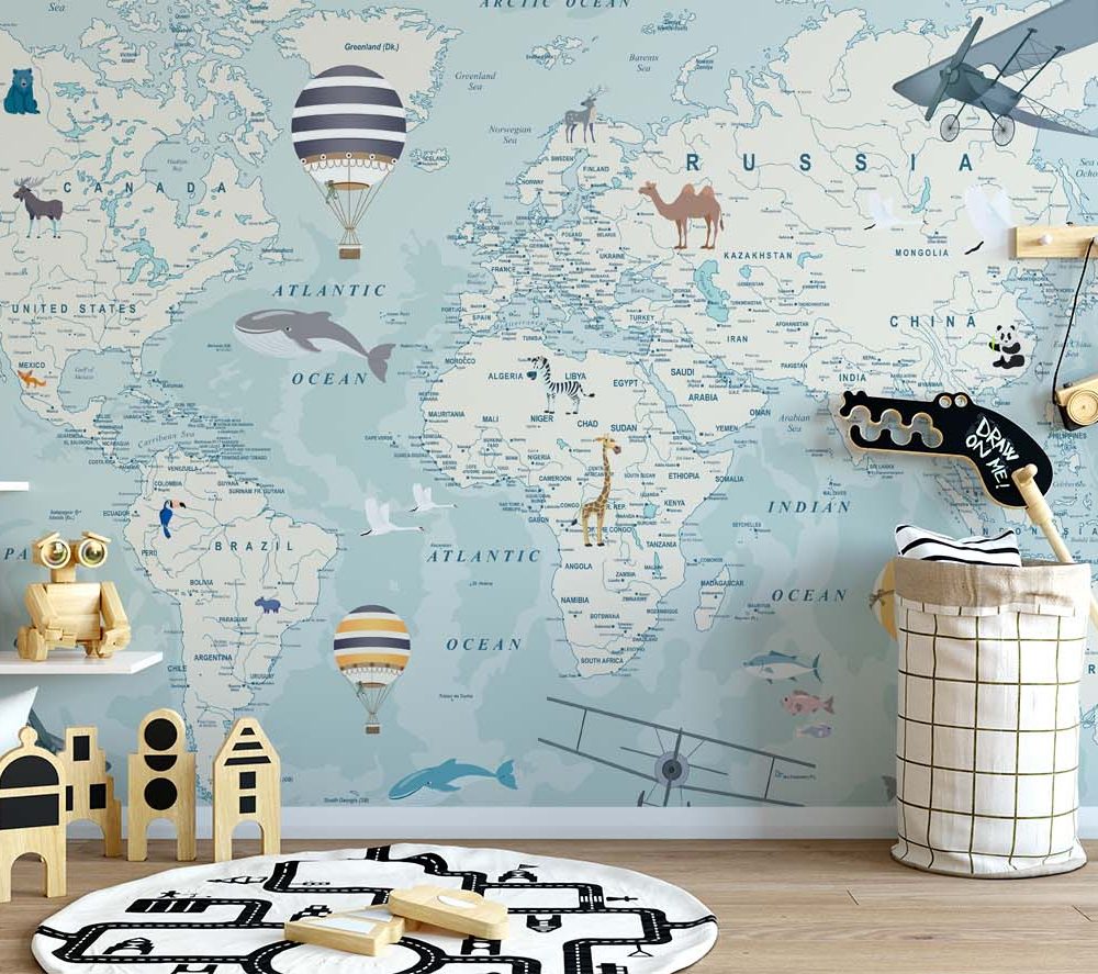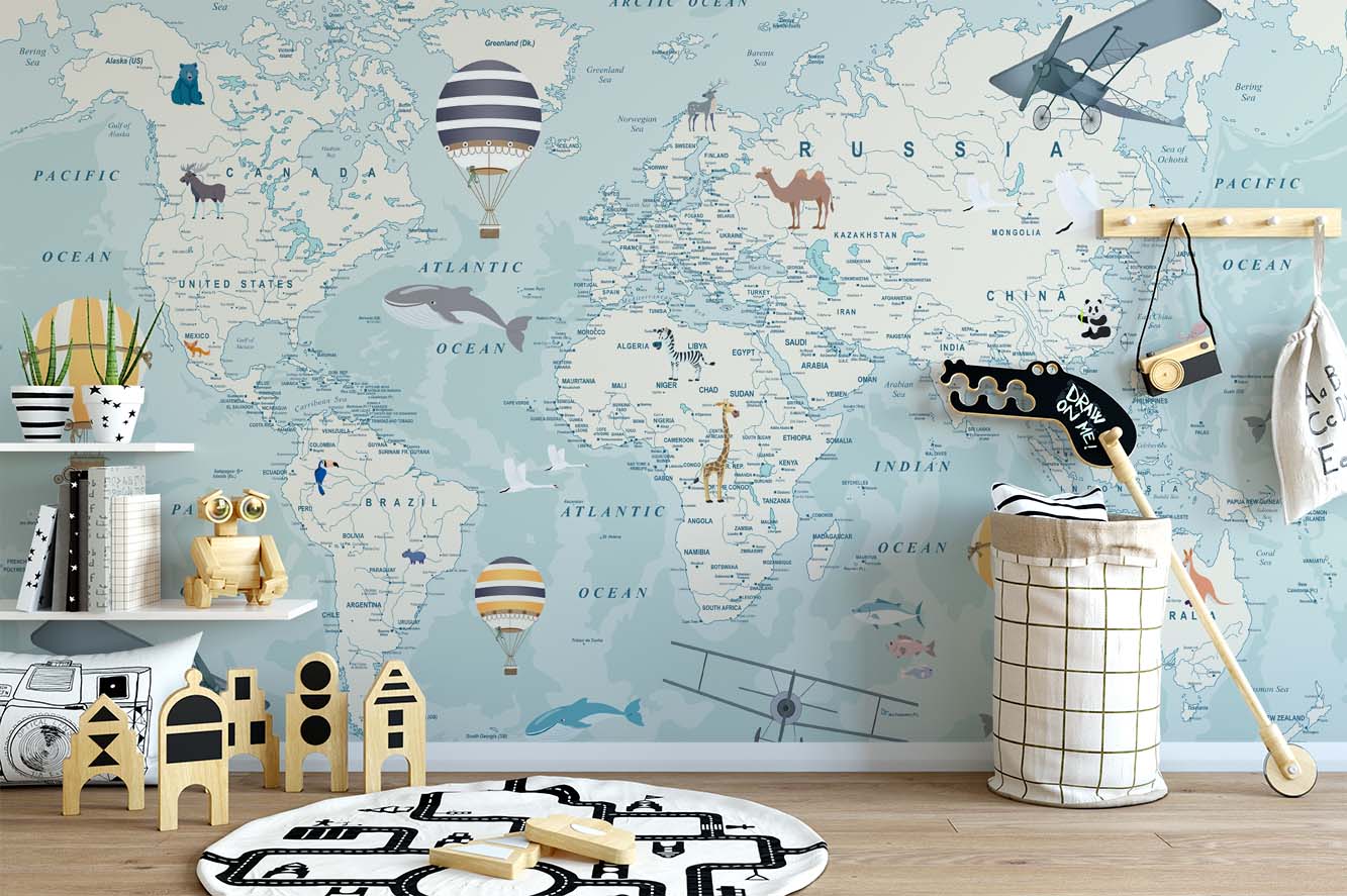 Avontuurlijke Wereldkaart Kinderkamer Behang