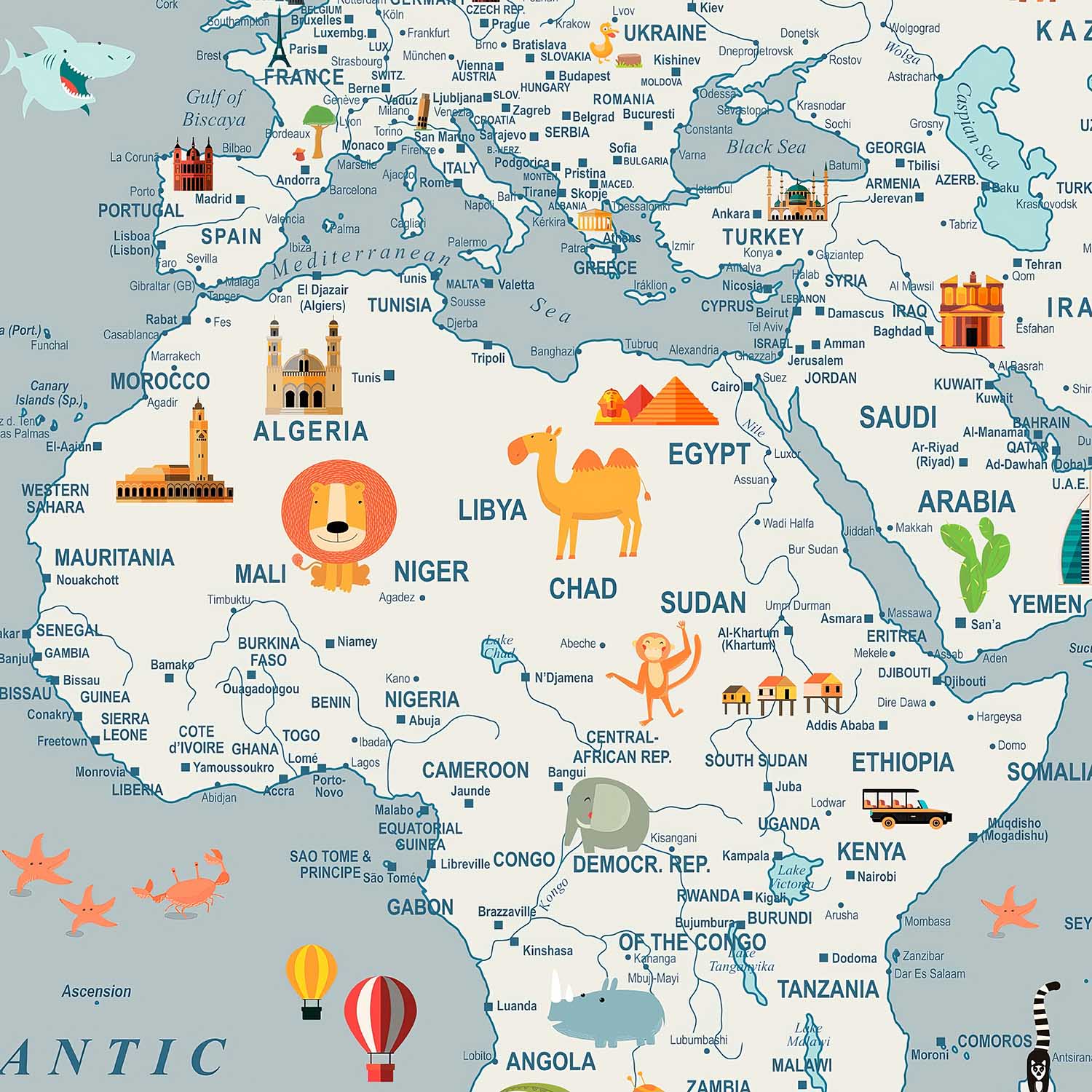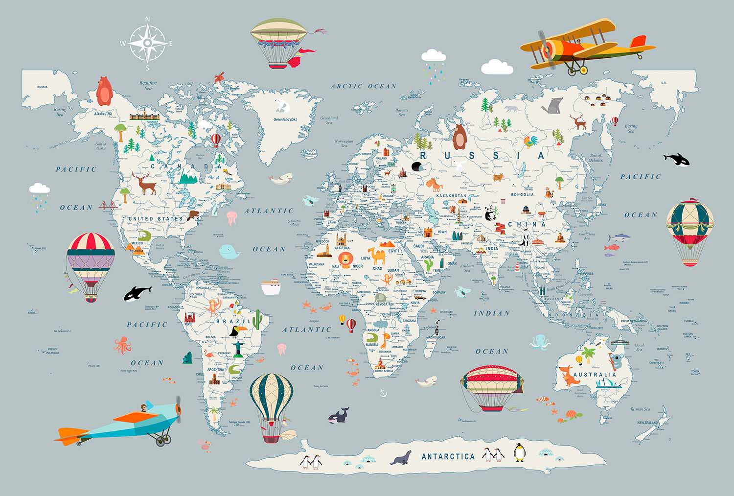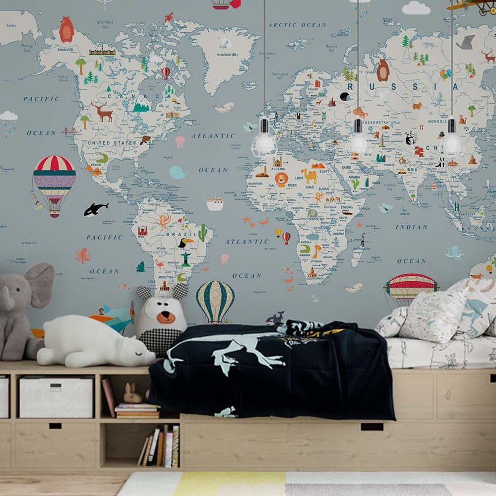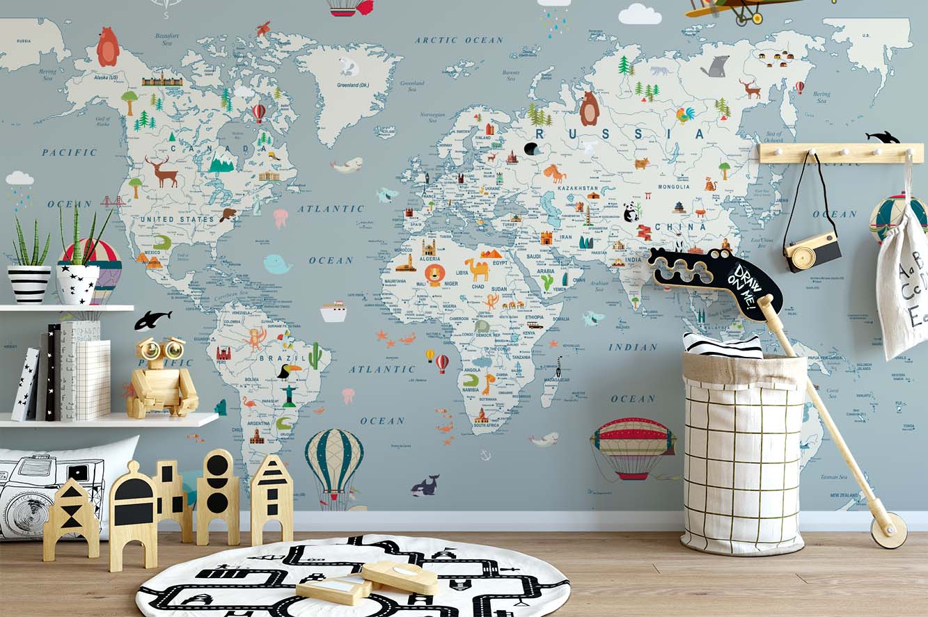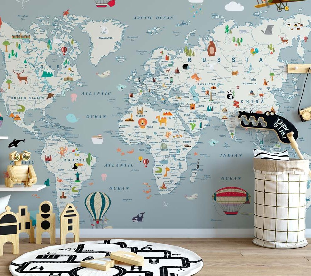 Avontuurlijke Wereldkaart Kinderkamerbehang