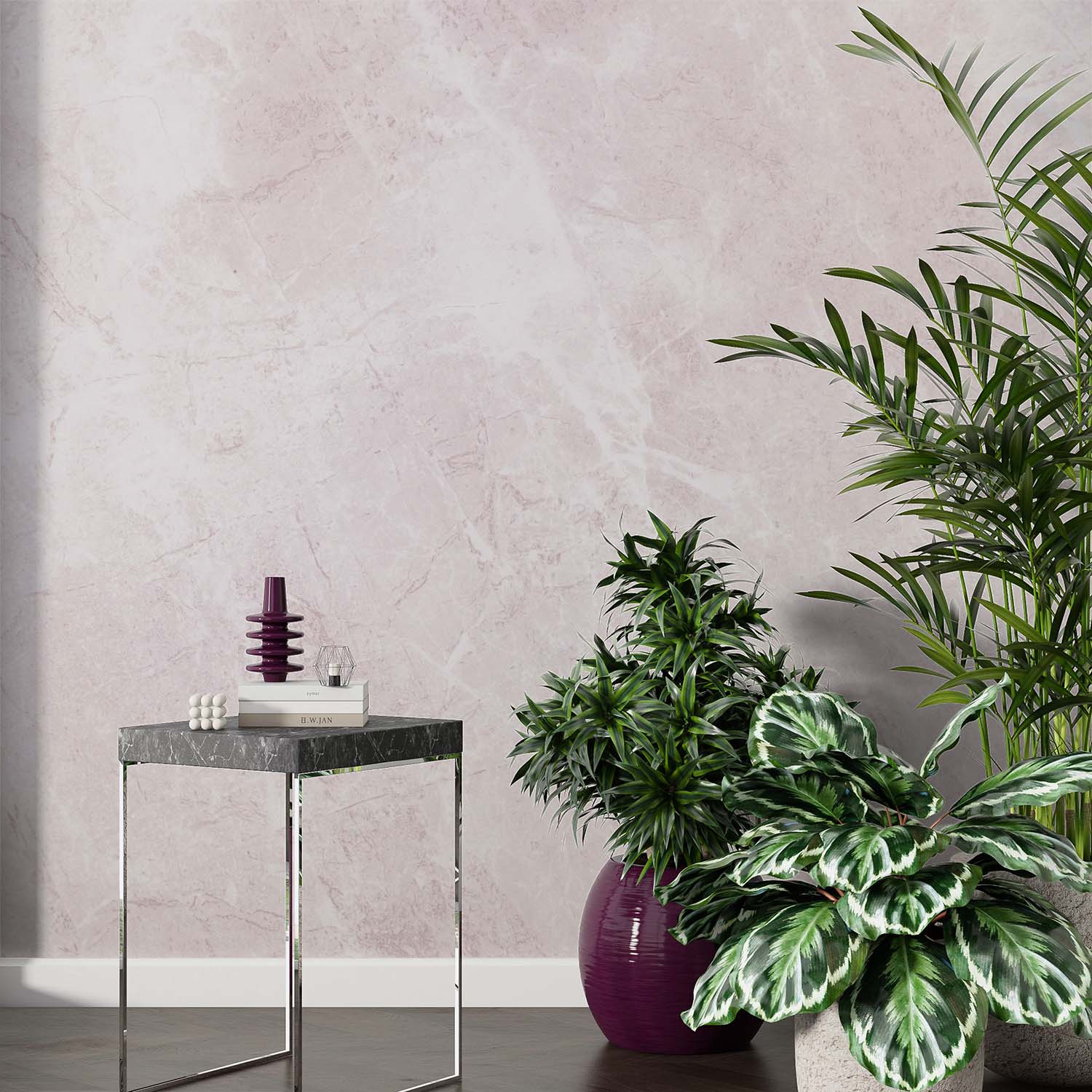 U ontvangt een staal van 15 × 20 cm op Variovlies behang, met dezelfde print en structuur als het uiteindelijke product. Zo kunt u thuis rustig beoordelen of het ontwerp goed past.