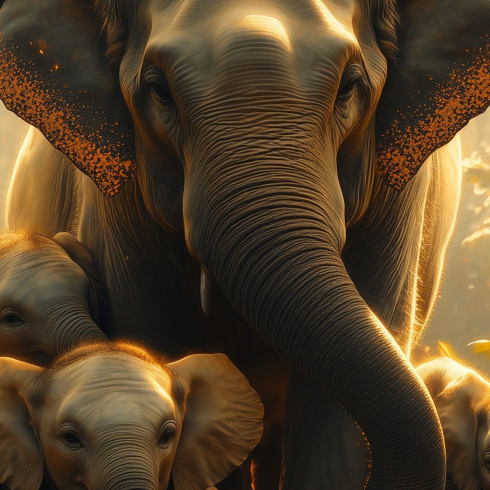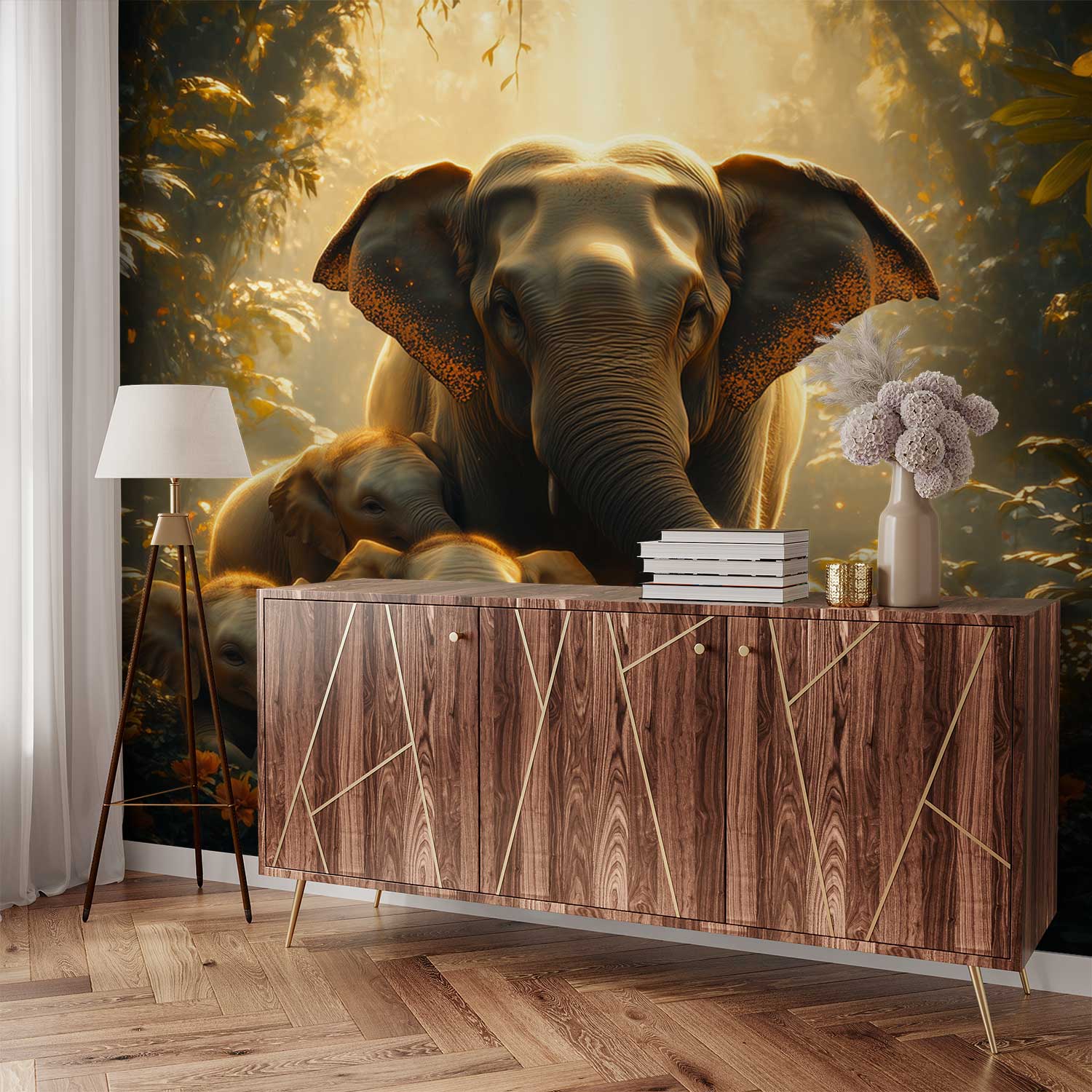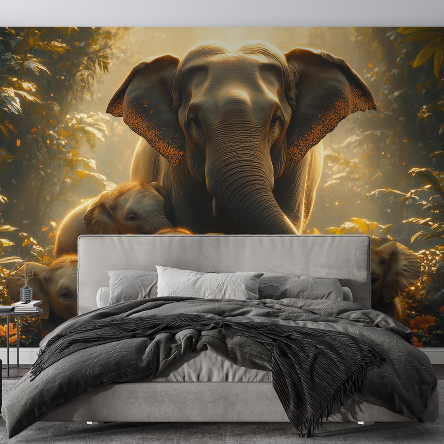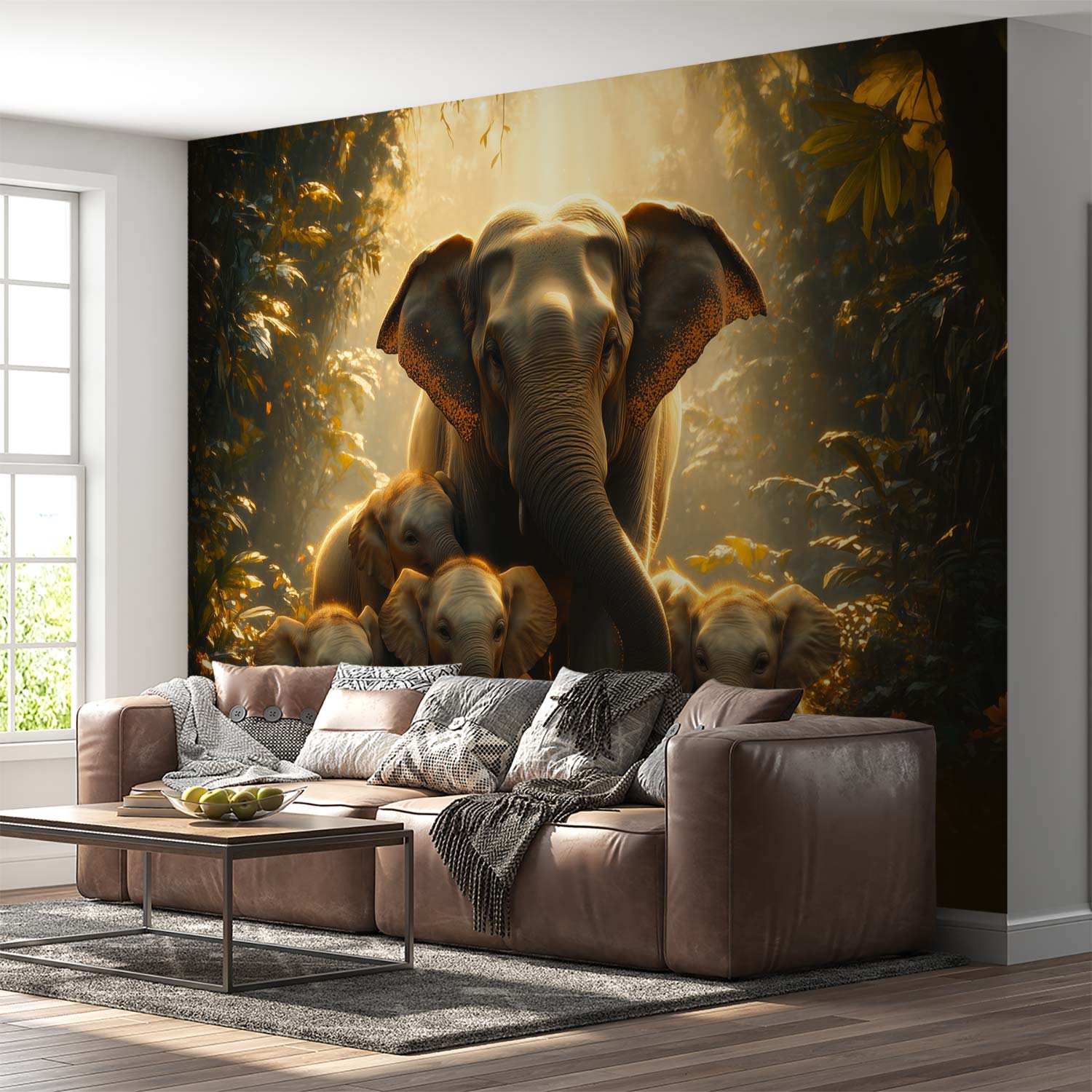 Terug naar collectie / Behang / Beschermende olifantenfamilie in bos behang
