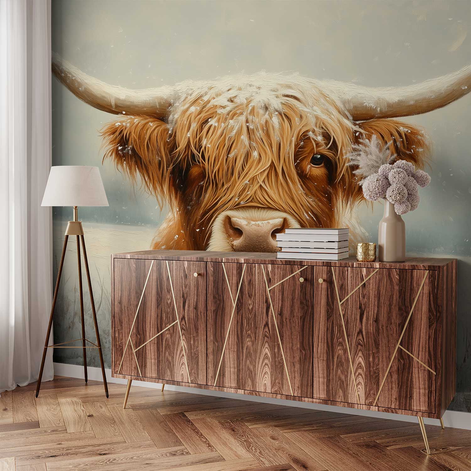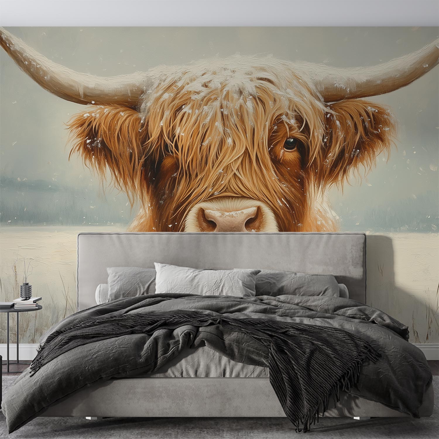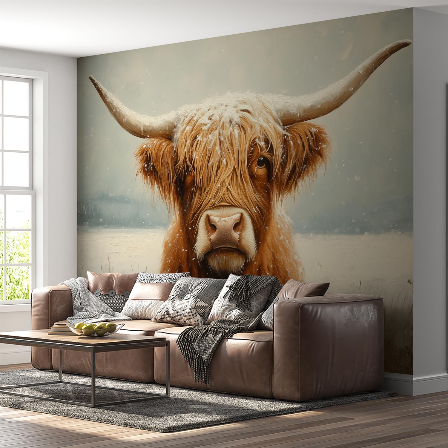 Terug naar collectie / Behang / Besneeuwde Hooglander in Winter behang