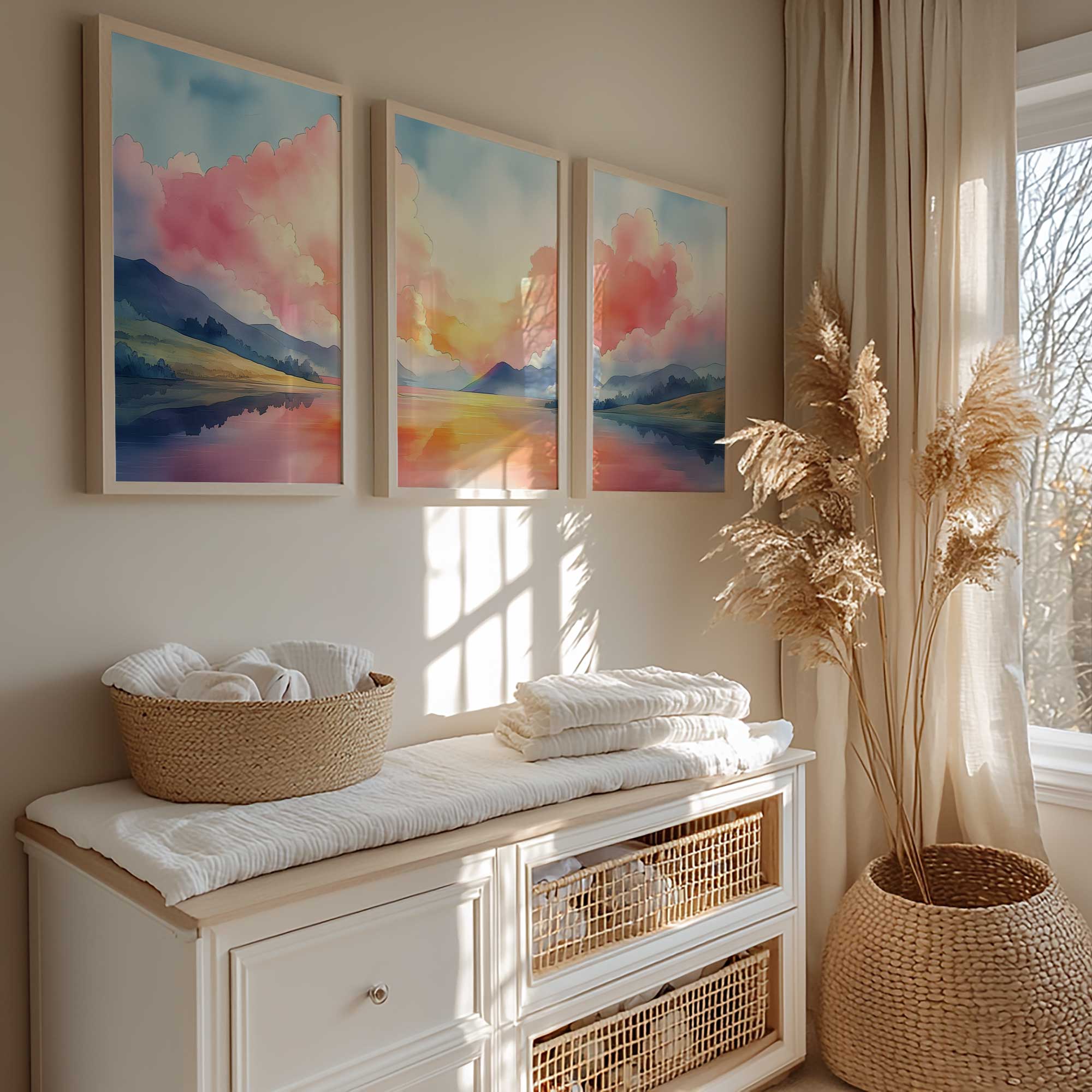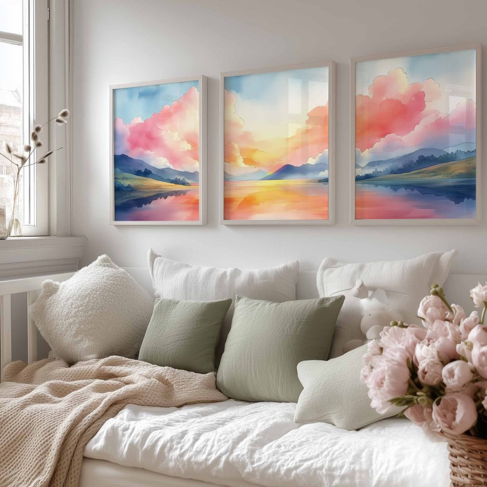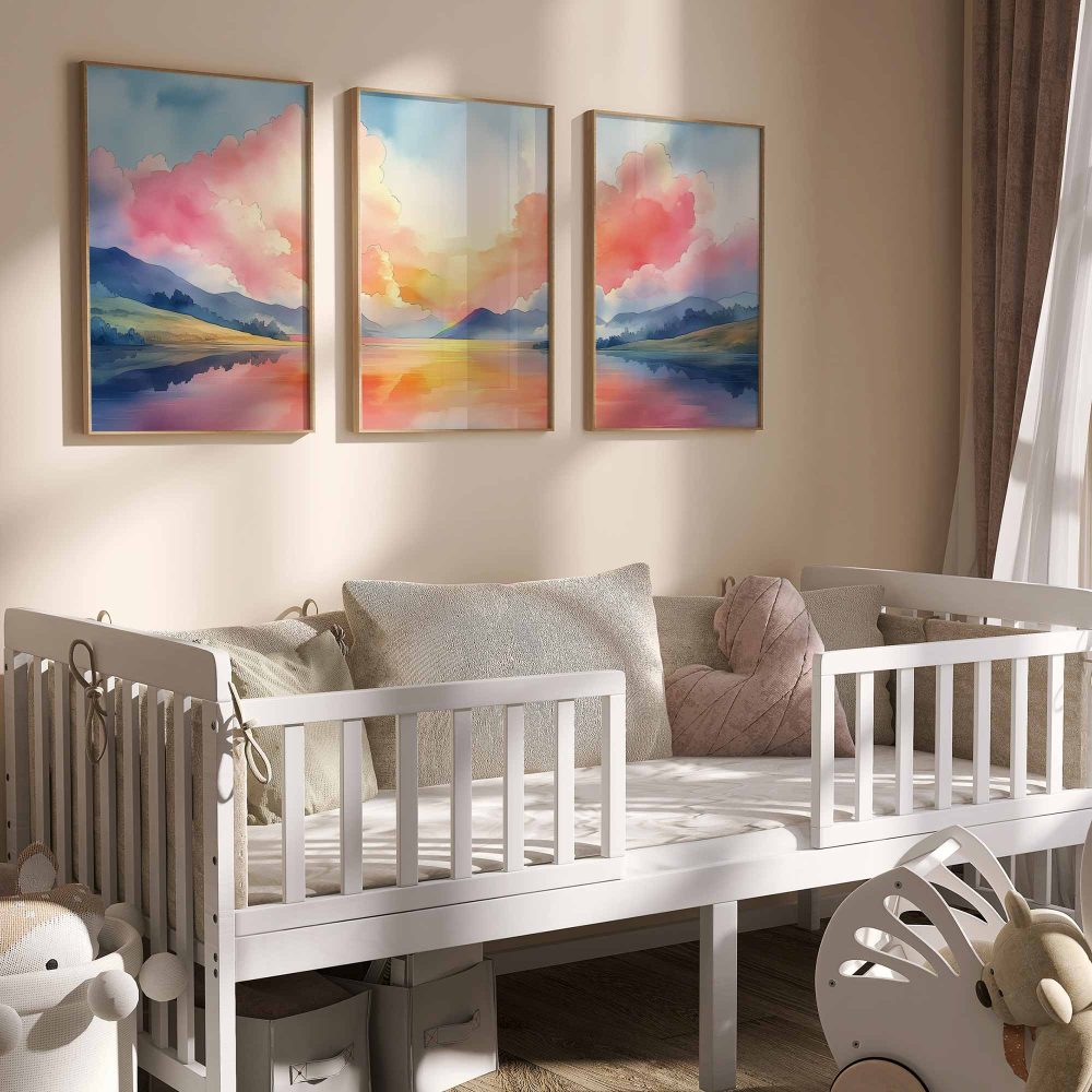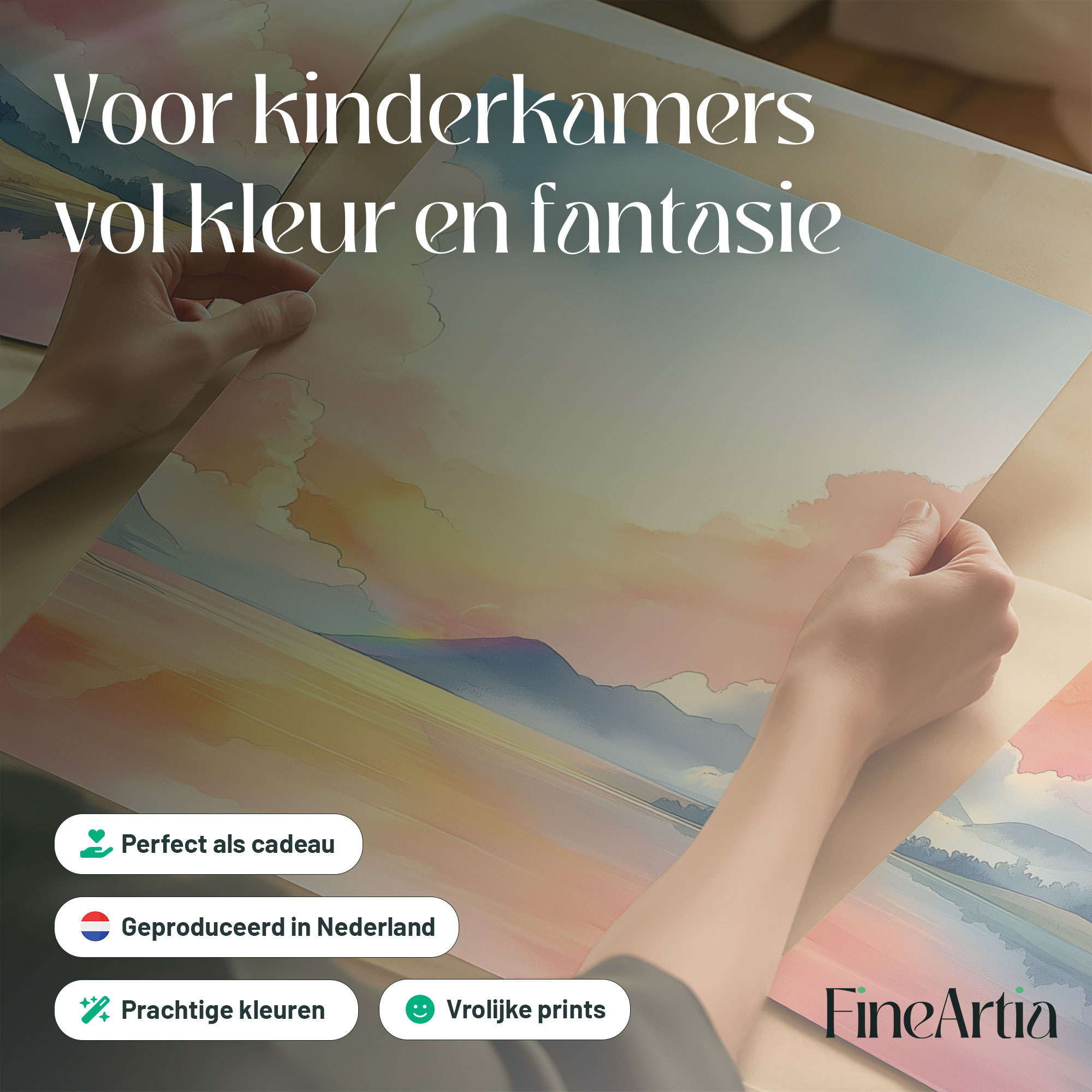 Terug naar collectie / Kinderkamer posters / Betoverend Berglandschap met Roze Wolken en Meer