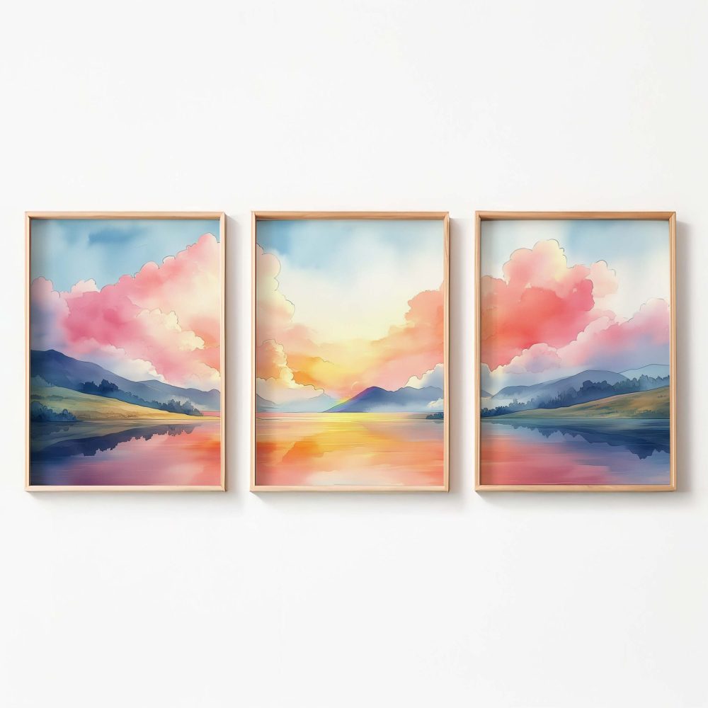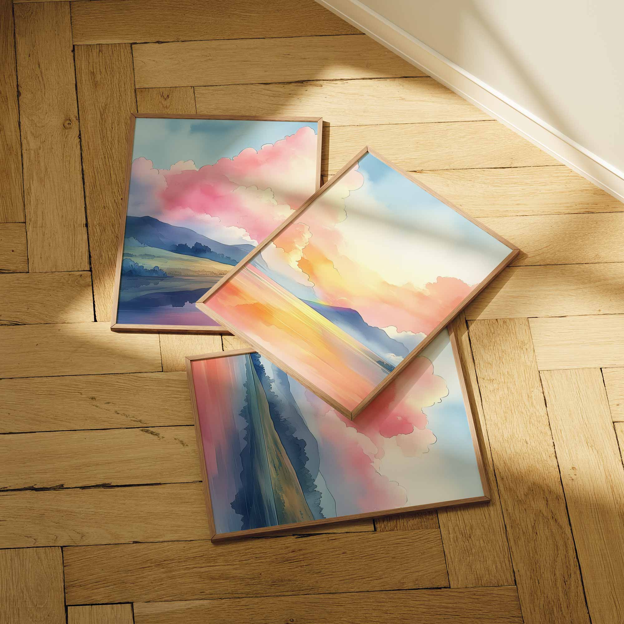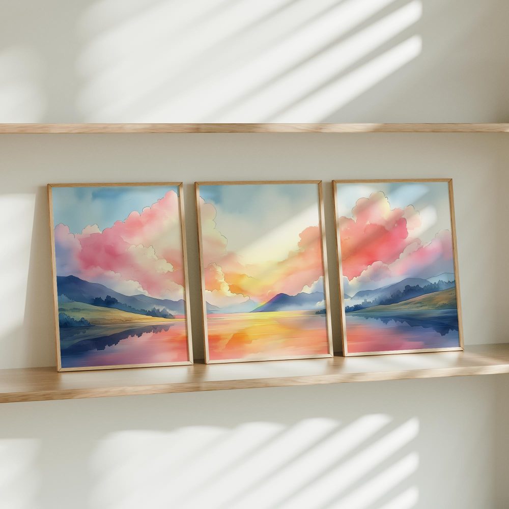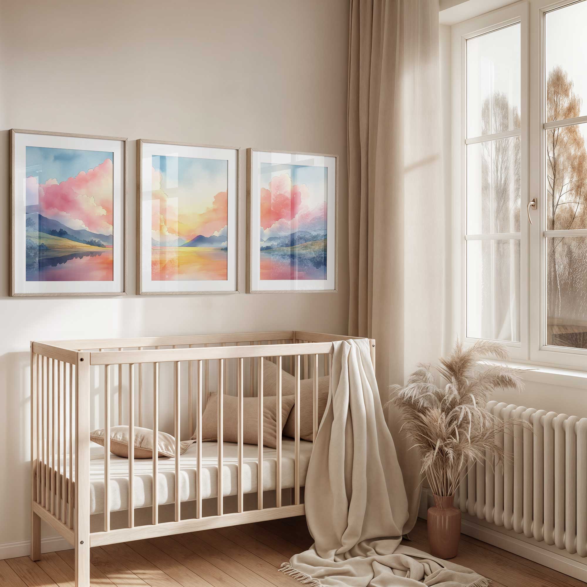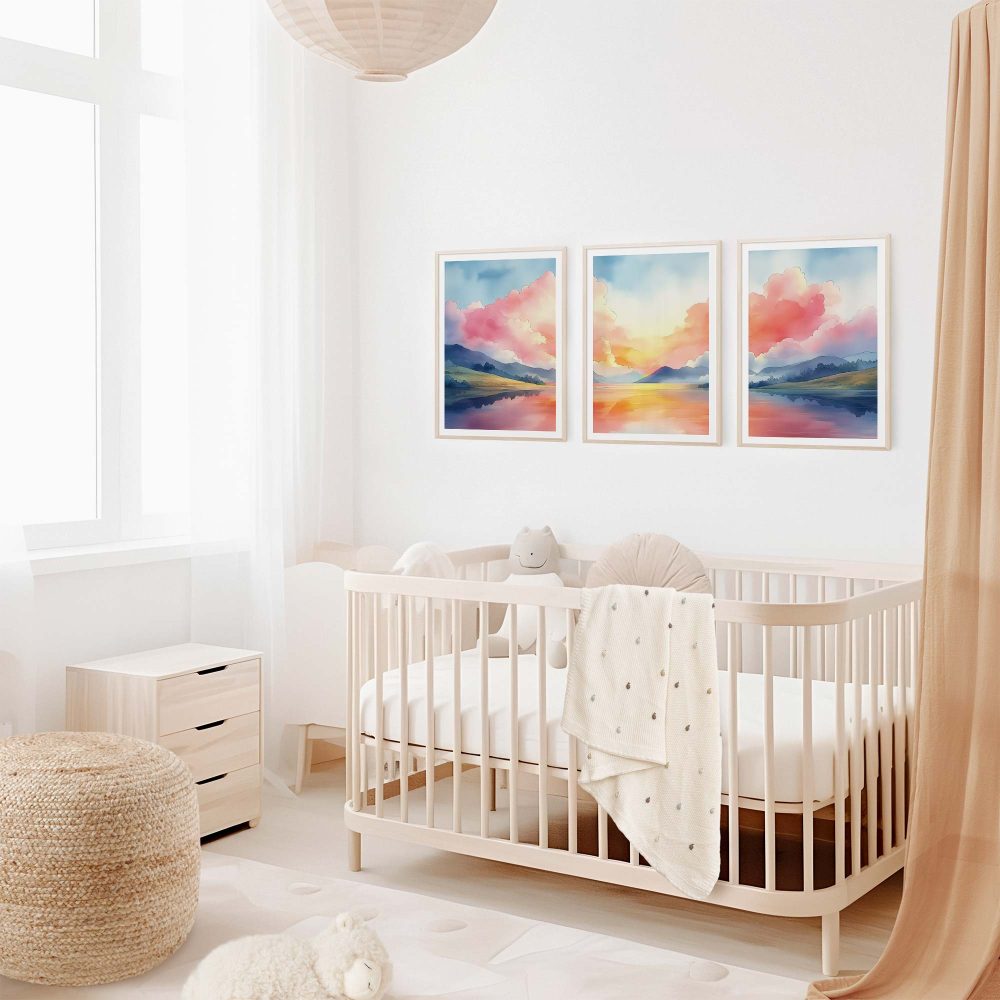 Terug naar collectie / Kinderkamer posters / Betoverend Berglandschap met Roze Wolken en Meer