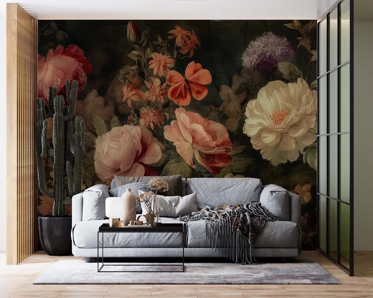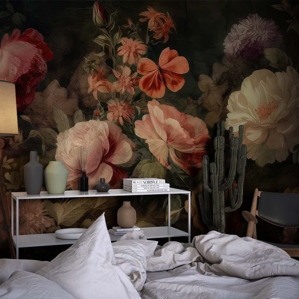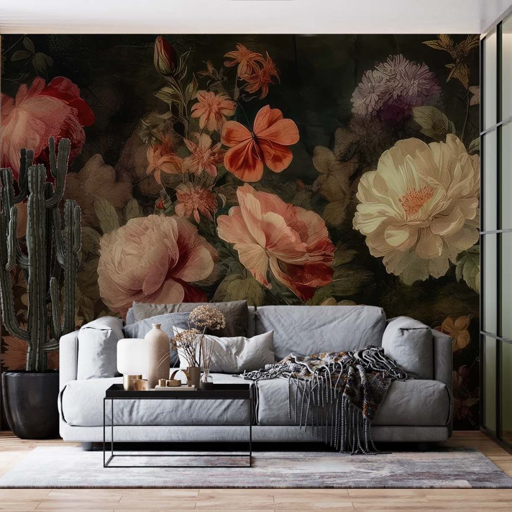 Terug naar collectie / Behang / Betoverend Bloemen Behang in Blauw-Oranje