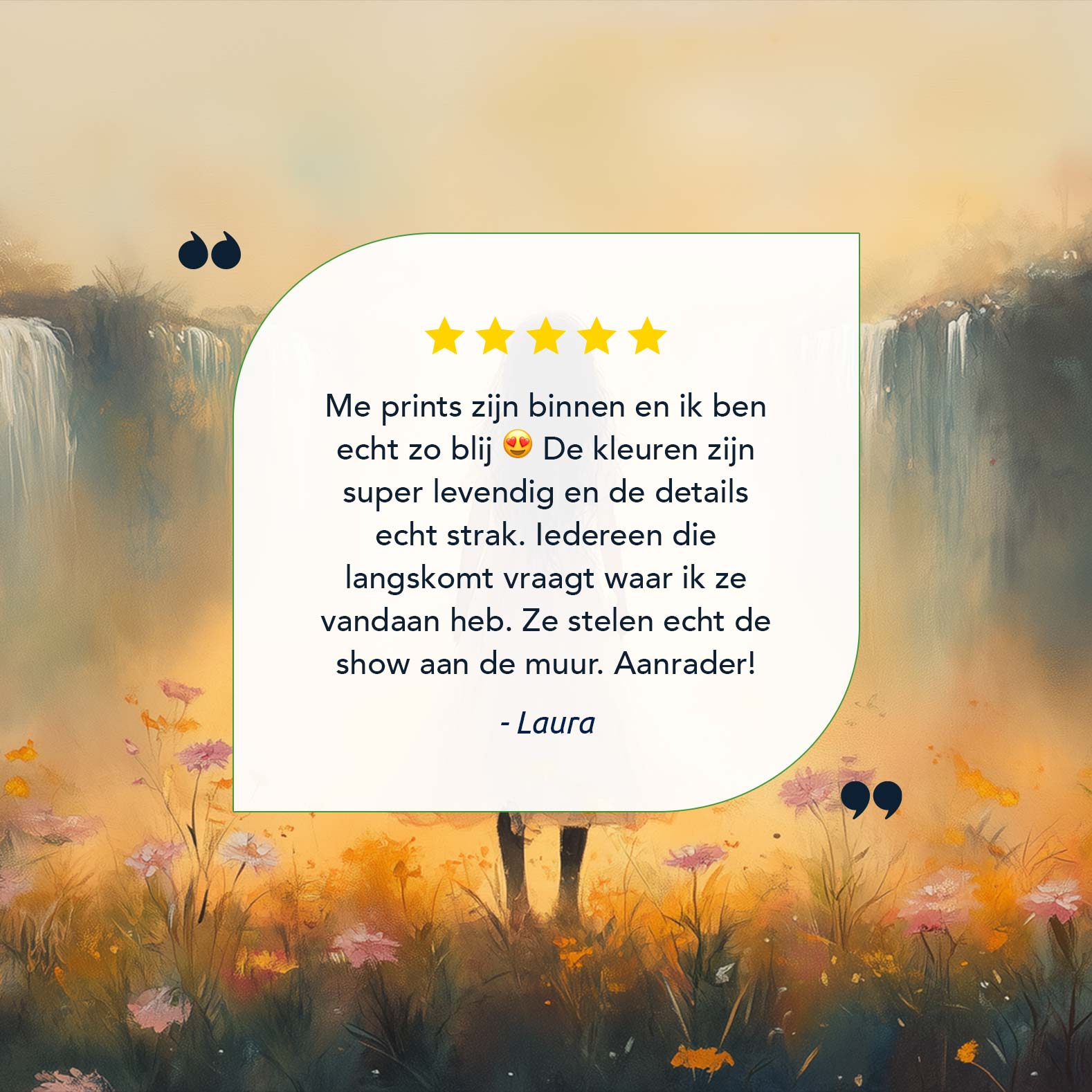 Betoverend bloemenveld met waterval en dromerige vrouw