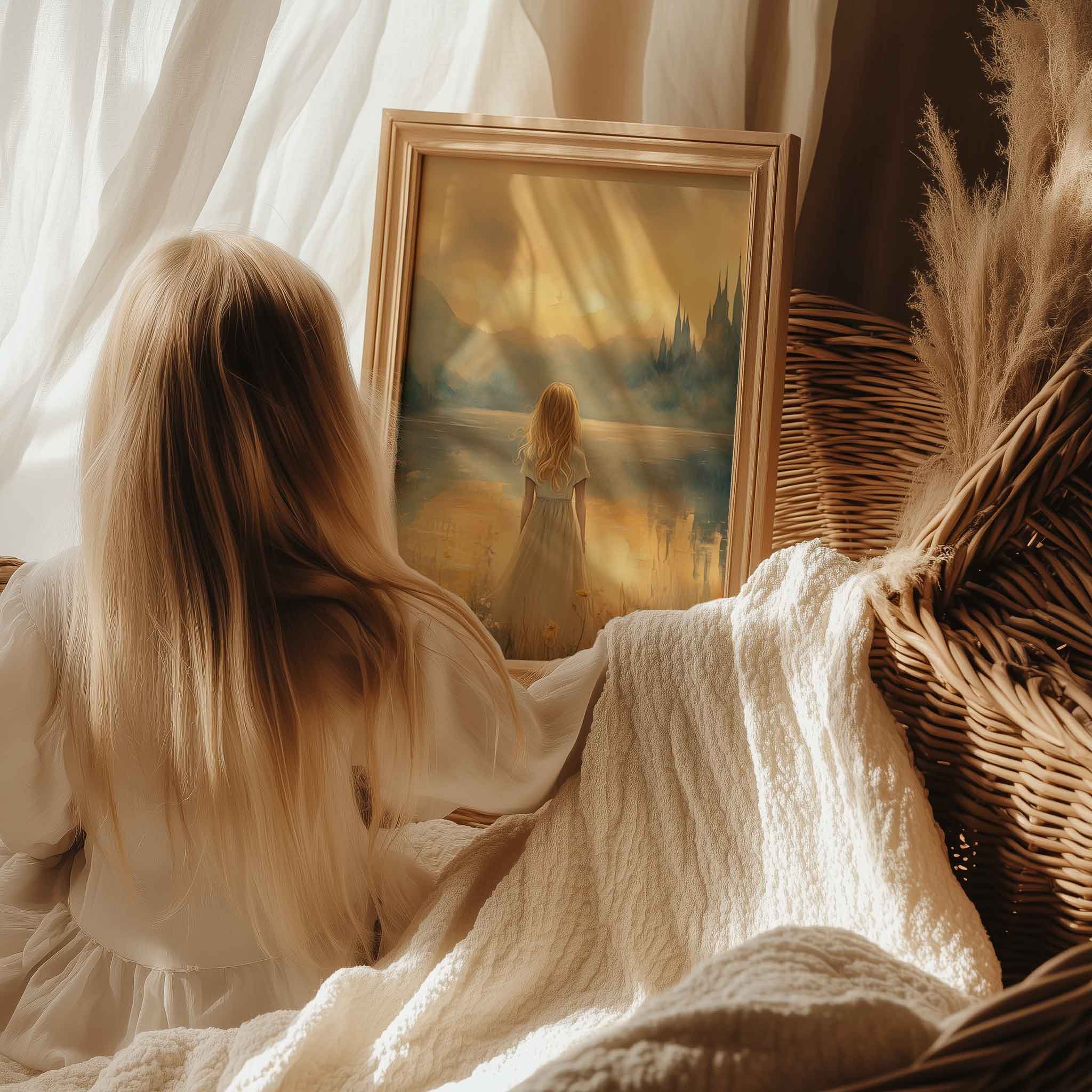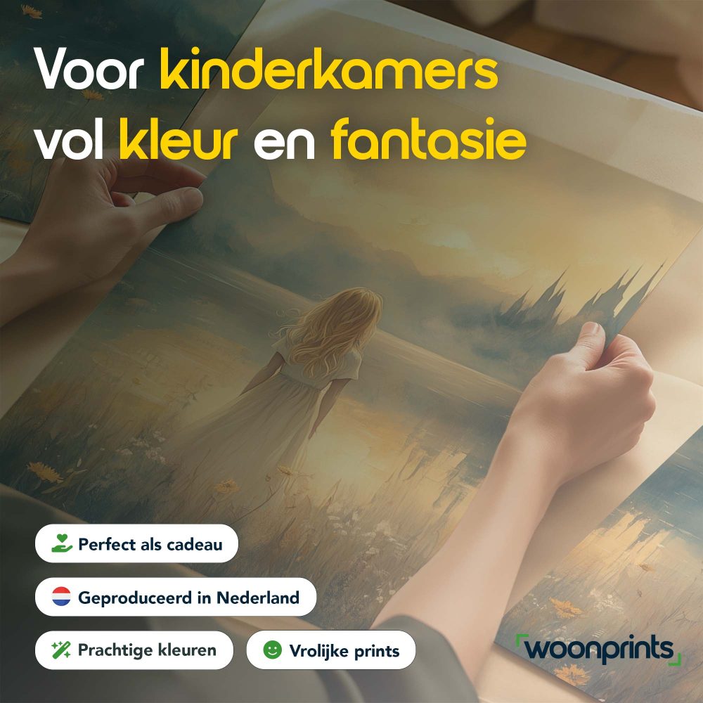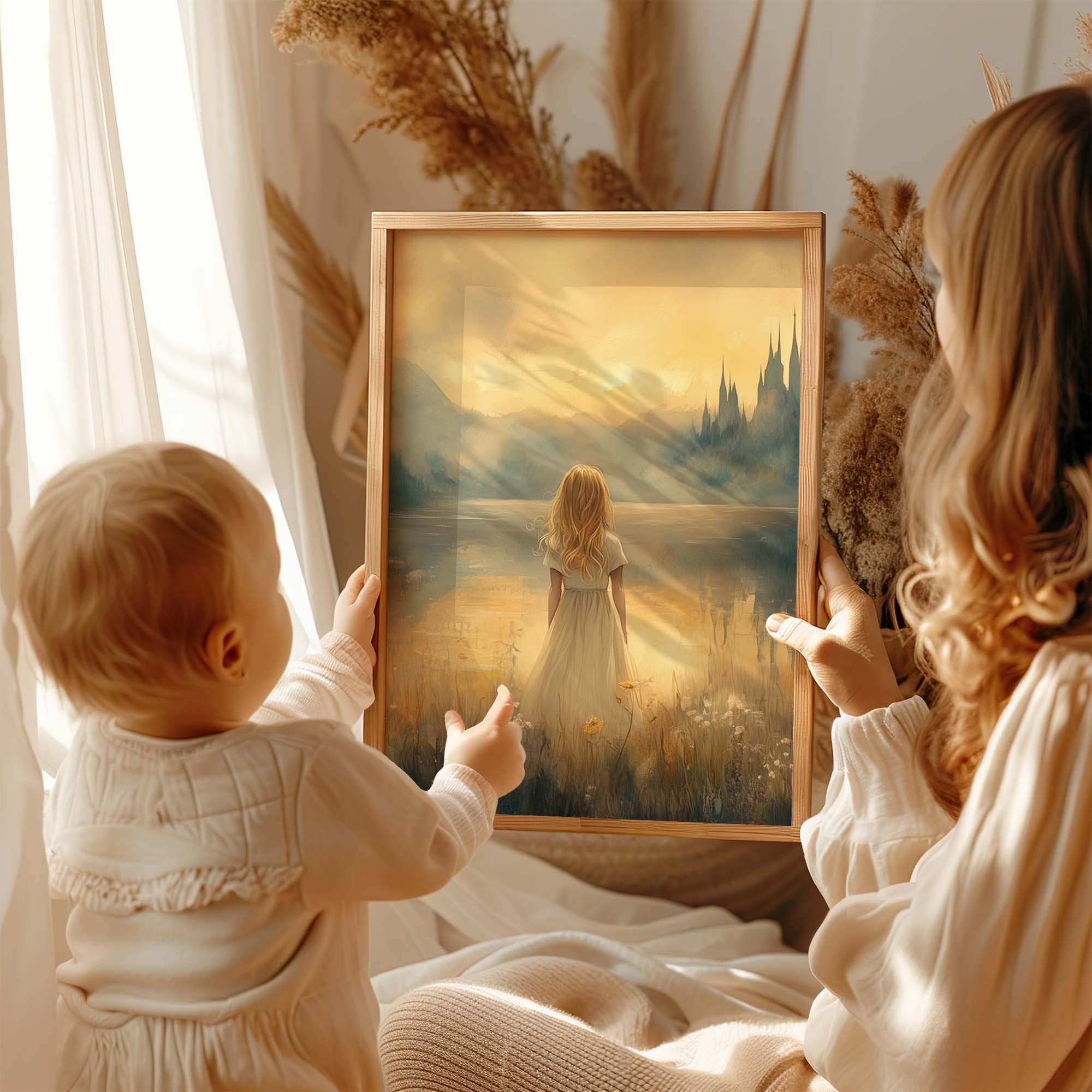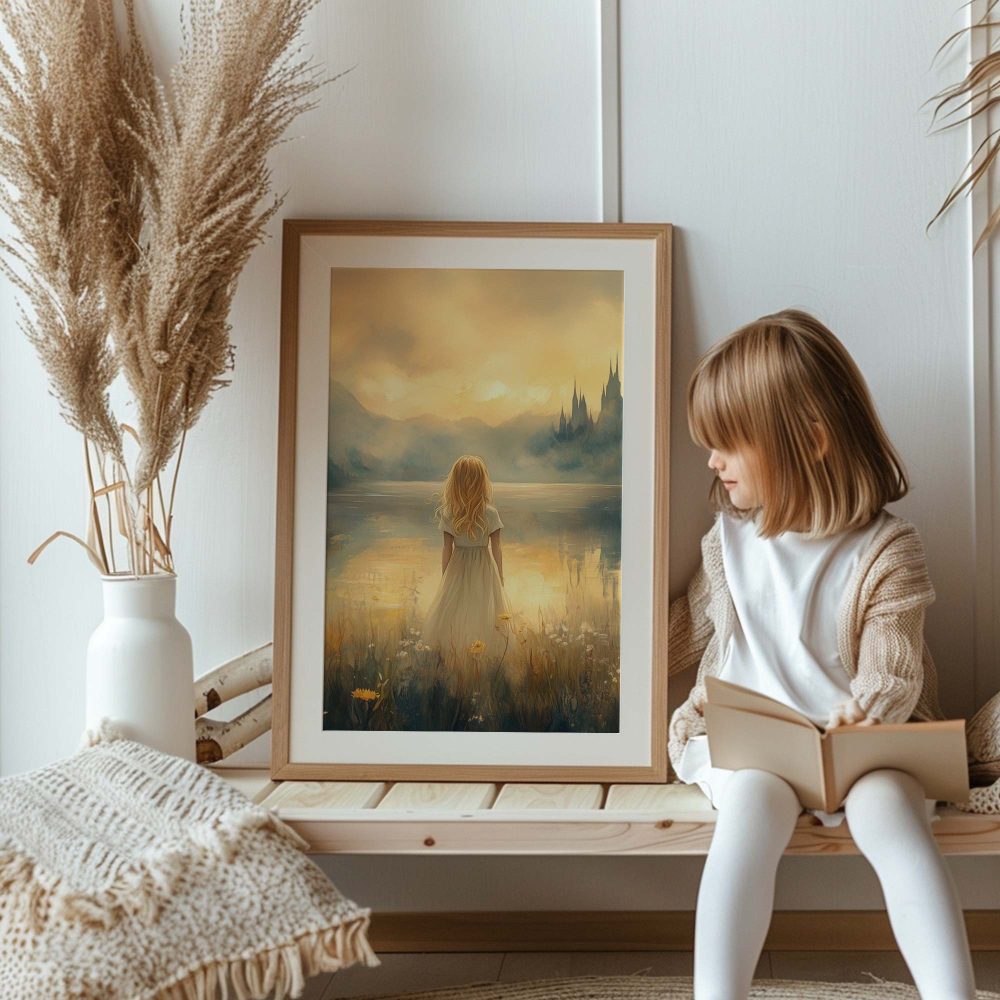 Terug naar collectie / Kinderkamer posters / Bloemen posters / Betoverend Landschap met Dame en Kasteel