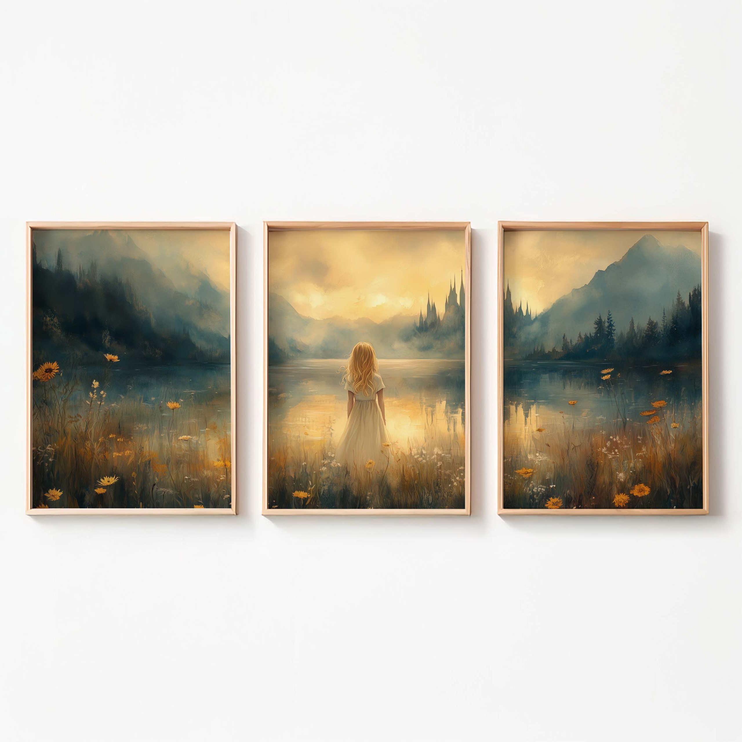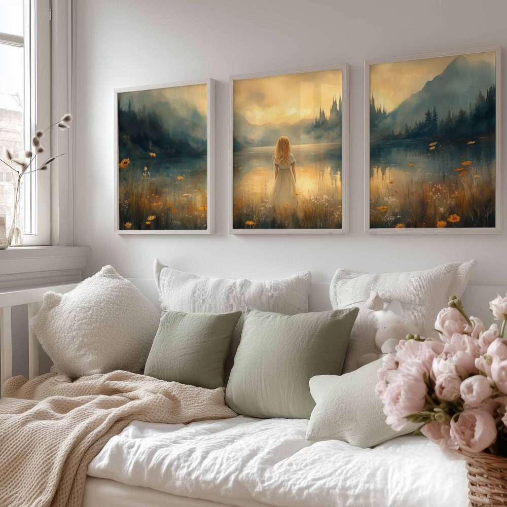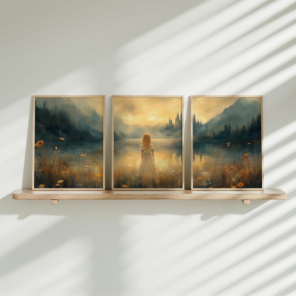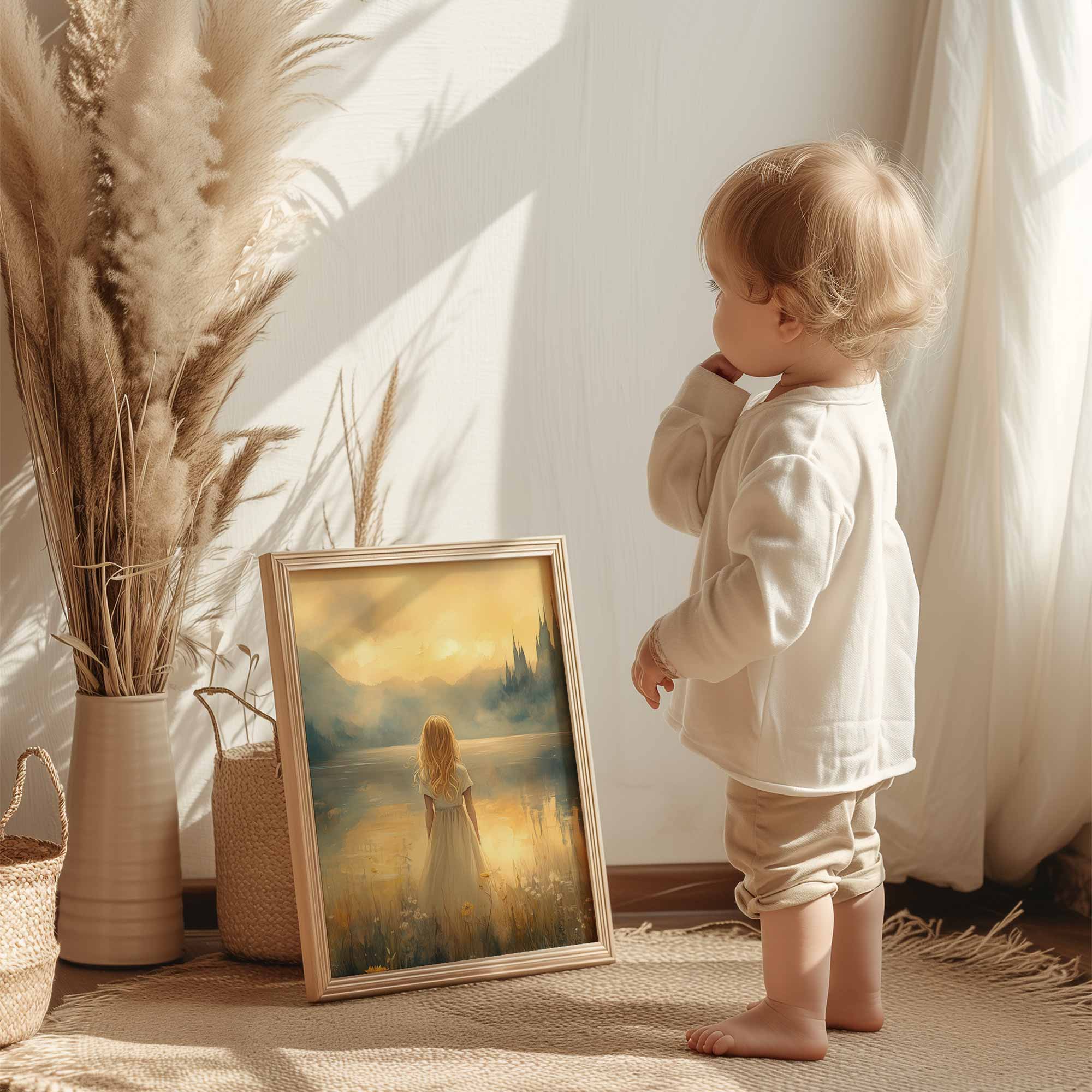 Terug naar collectie / Kinderkamer posters / Bloemen posters / Betoverend Landschap met Dame en Kasteel