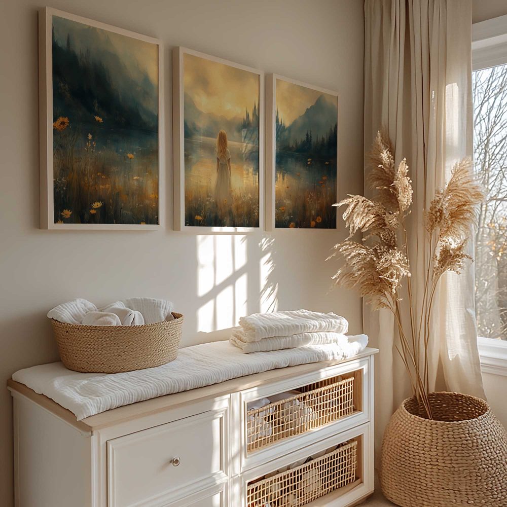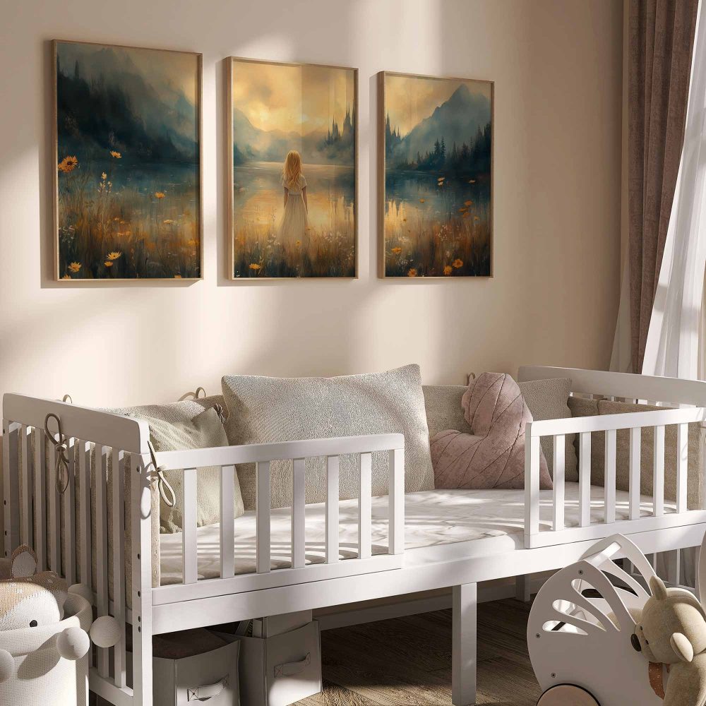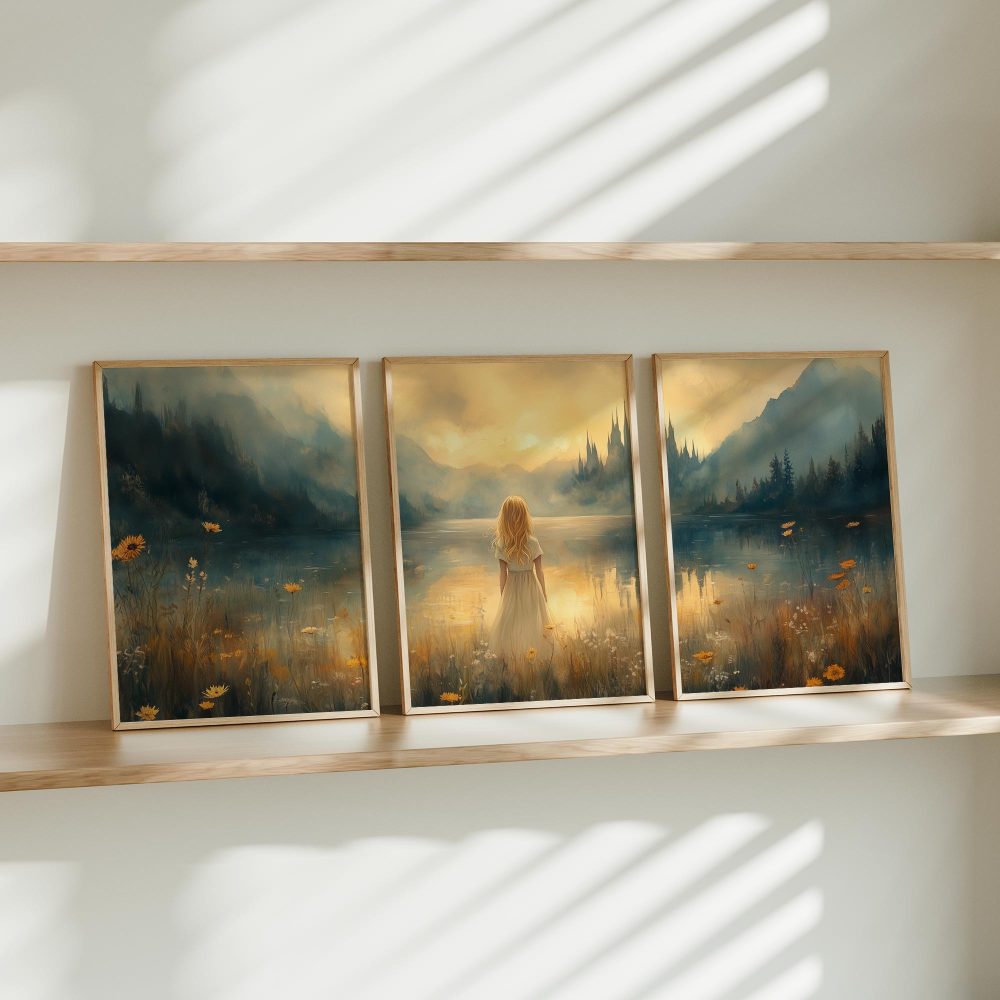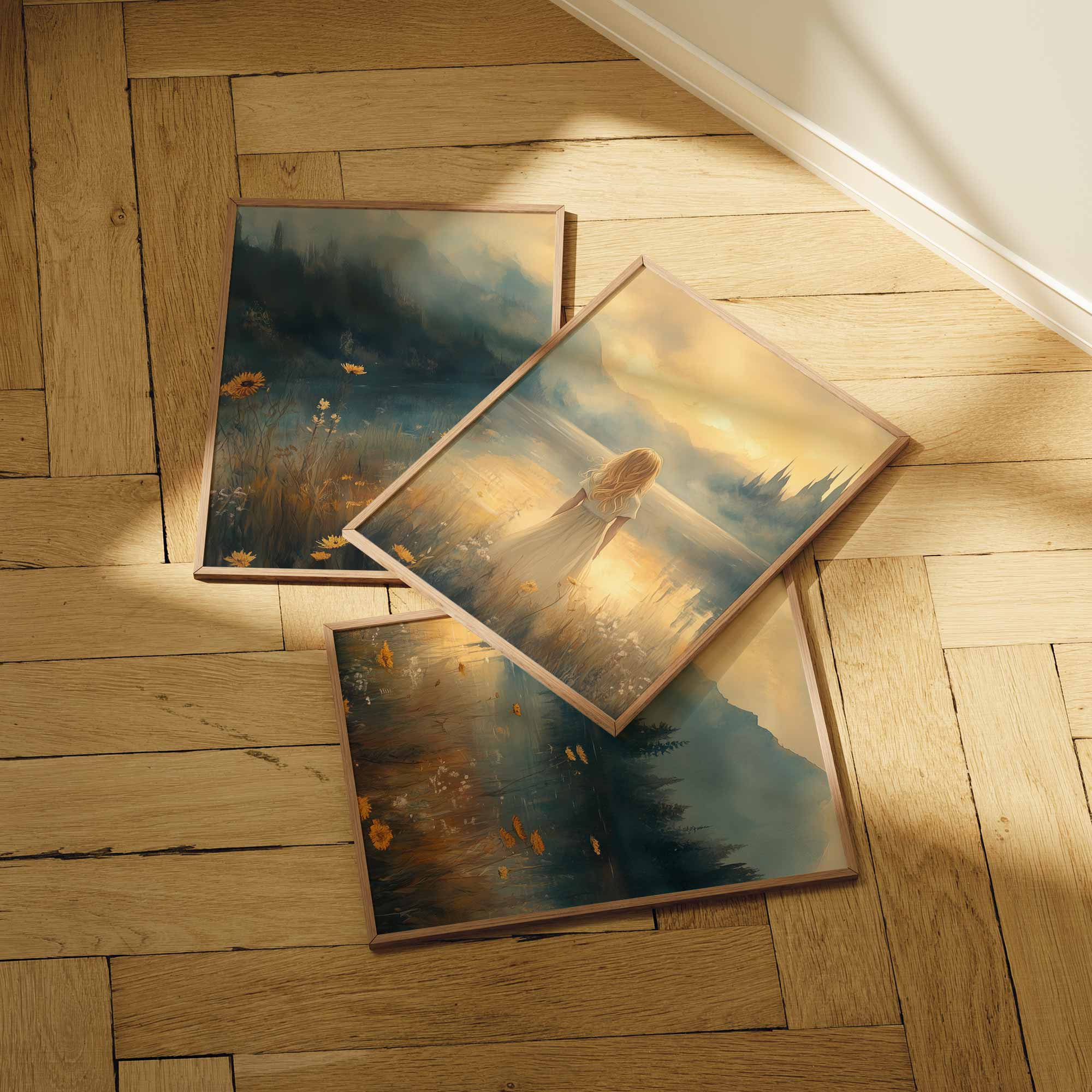Terug naar collectie / Kinderkamer posters / Bloemen posters / Betoverend Landschap met Dame en Kasteel