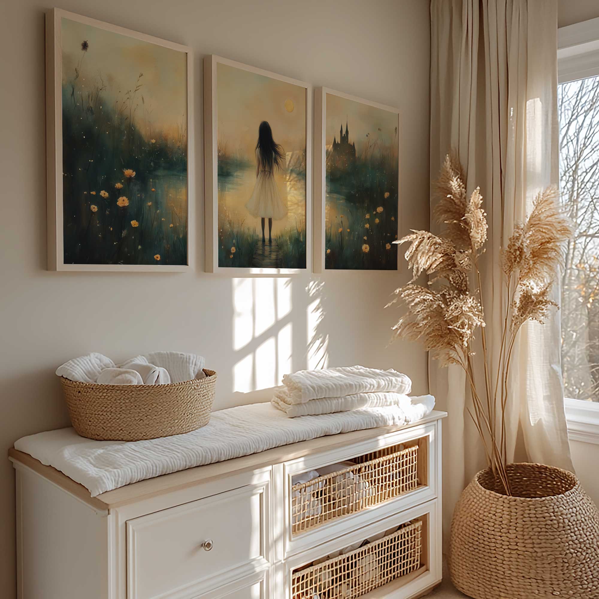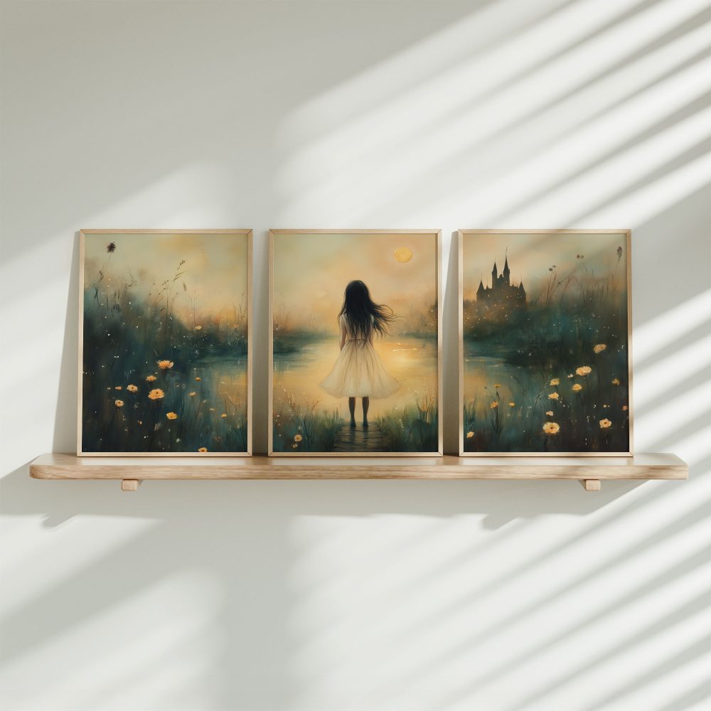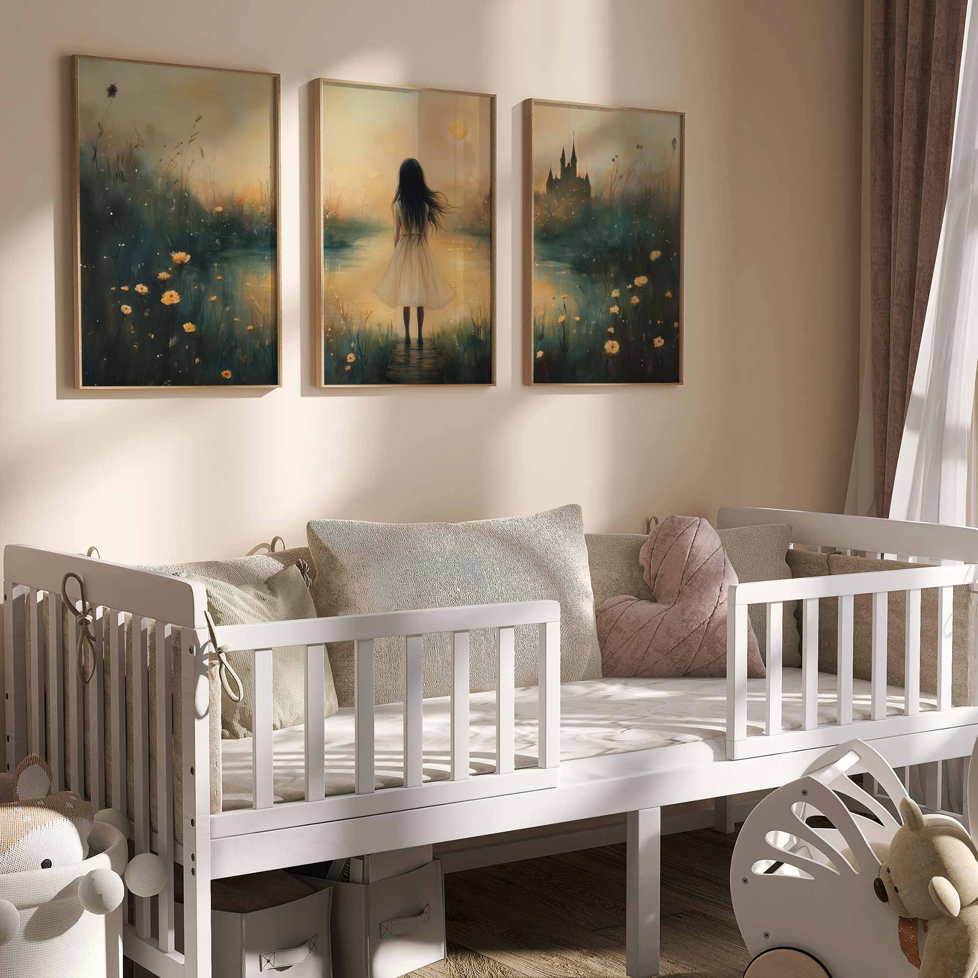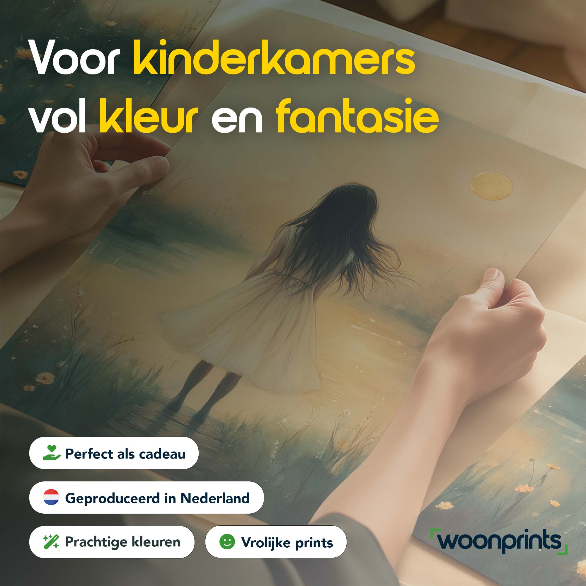 Terug naar collectie / Kinderkamer posters / Betoverend Landschap met Dromerige Dame en Kasteel