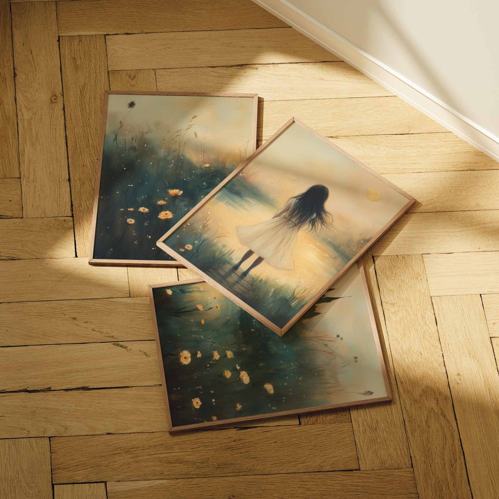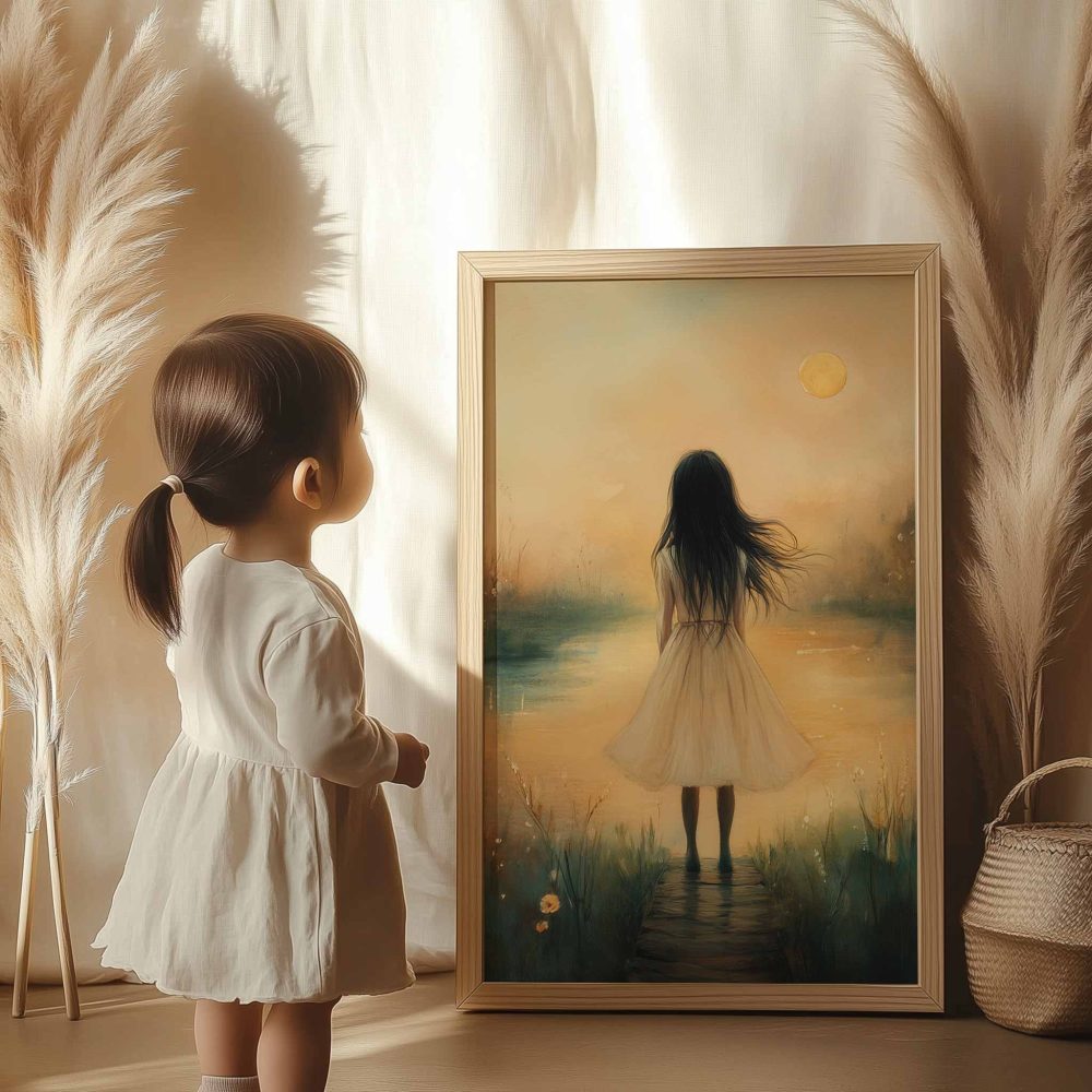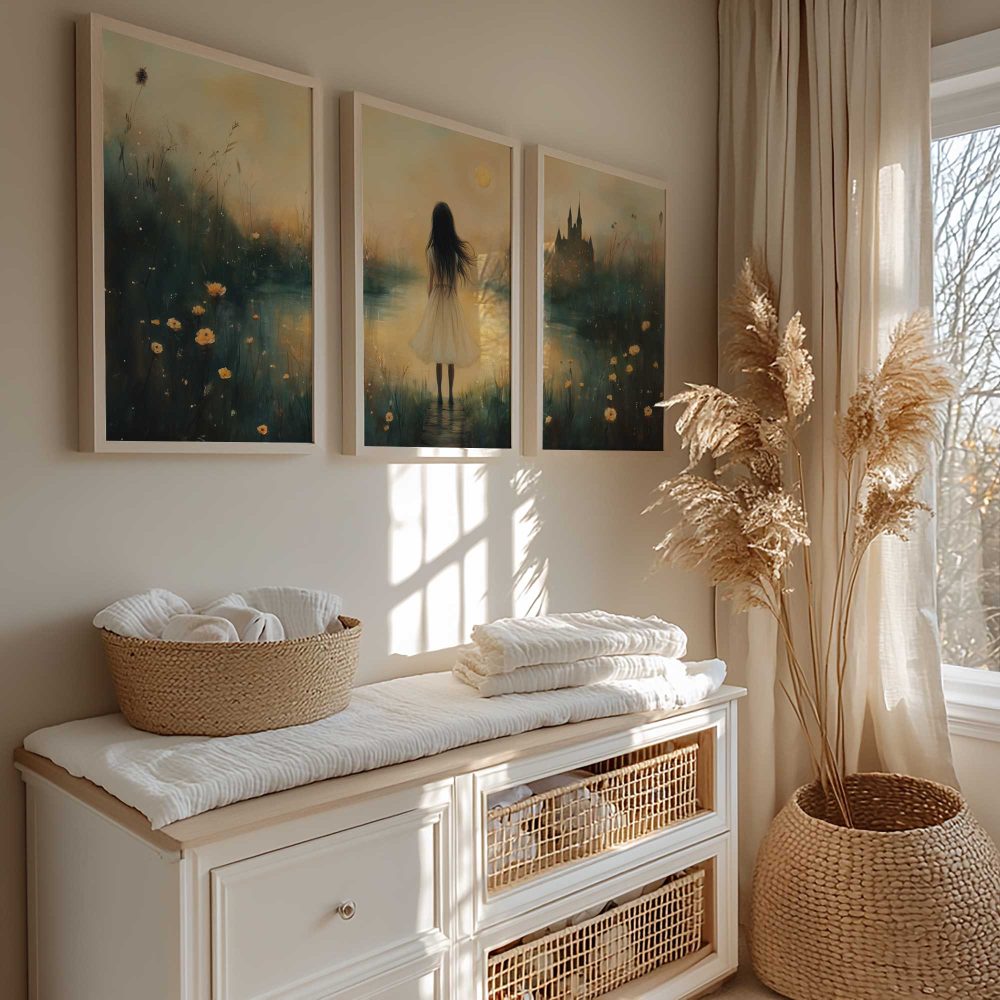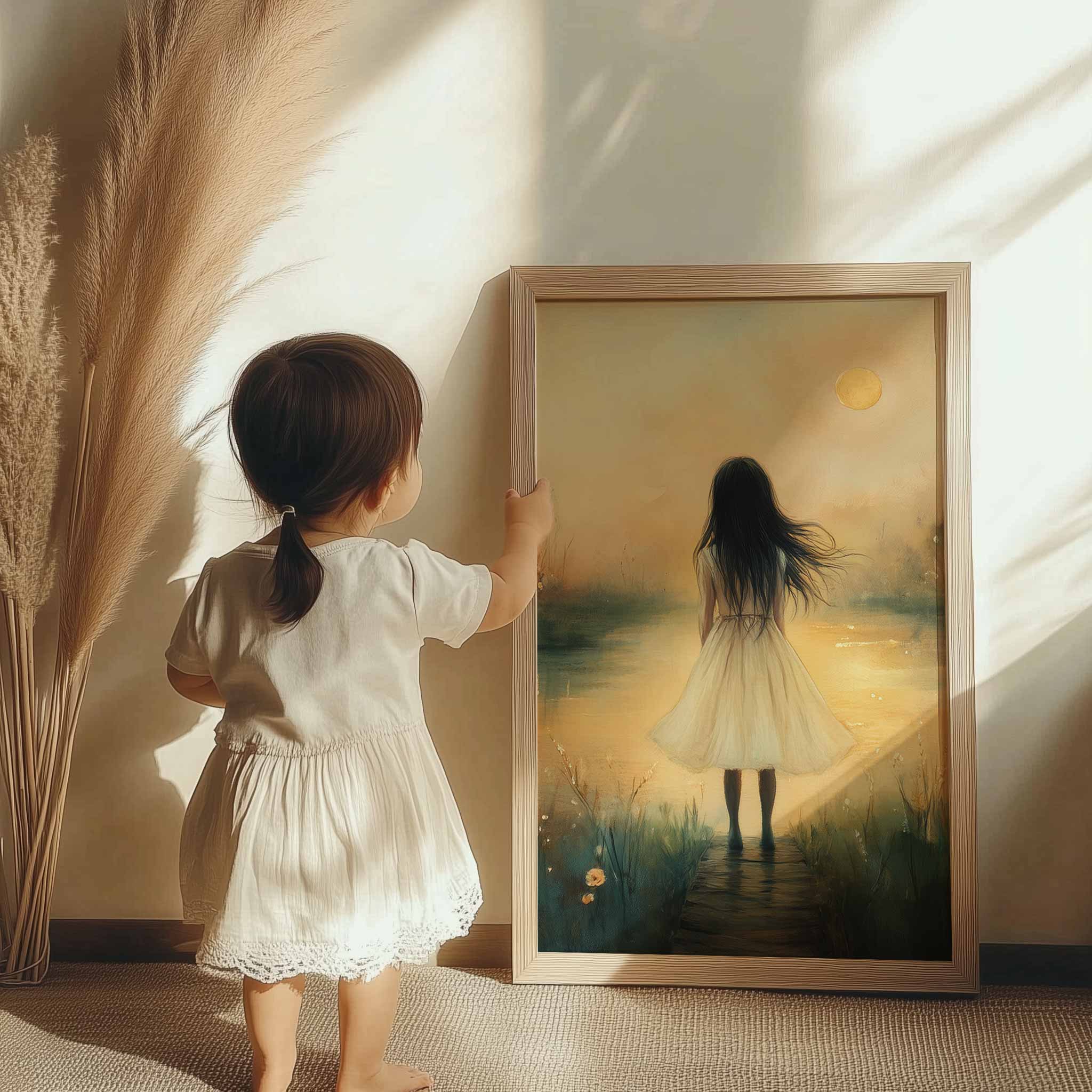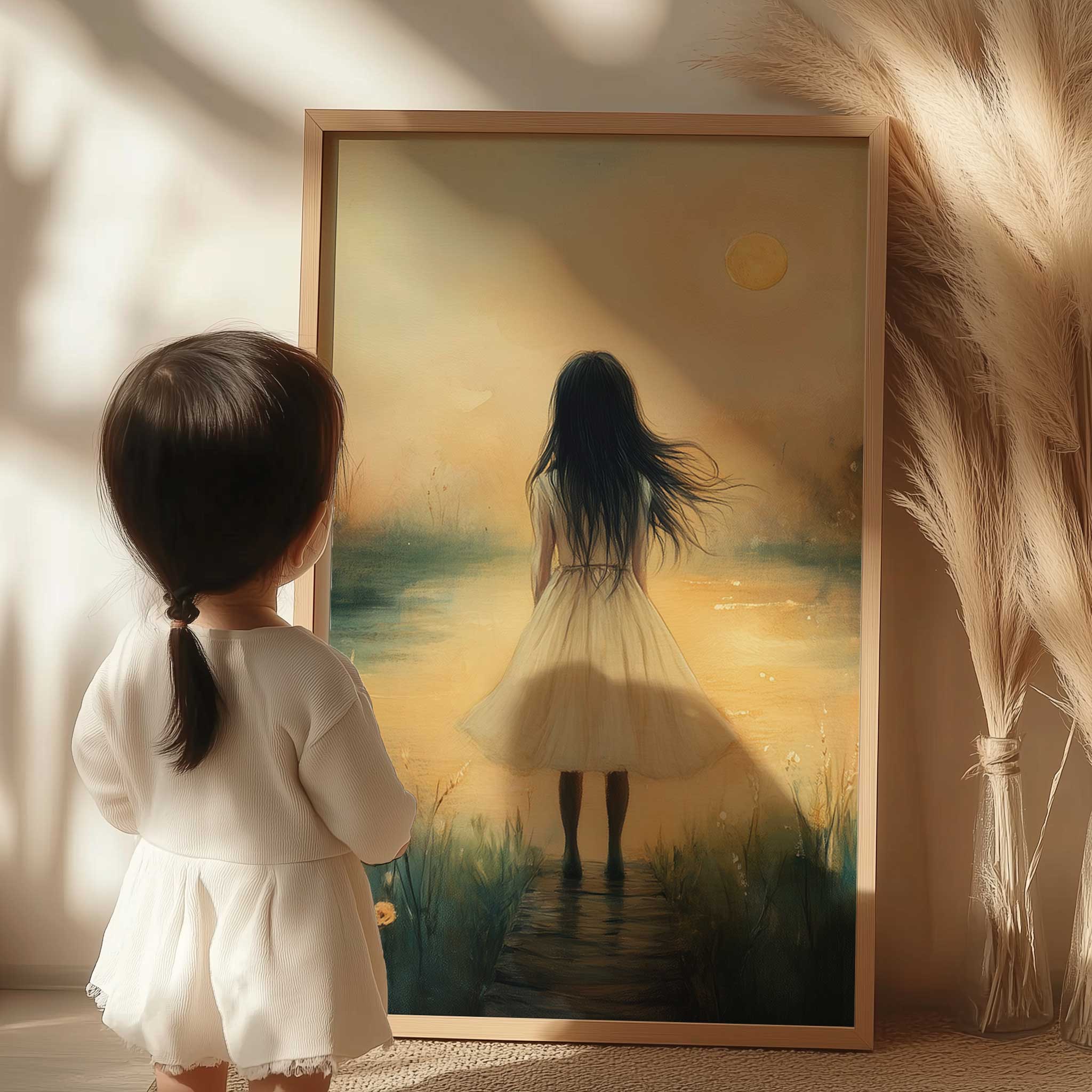 Terug naar collectie / Kinderkamer posters / Betoverend Landschap met Dromerige Dame en Kasteel