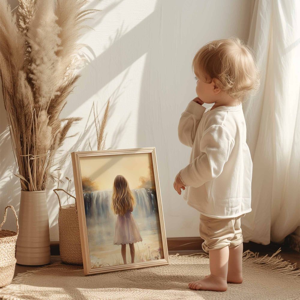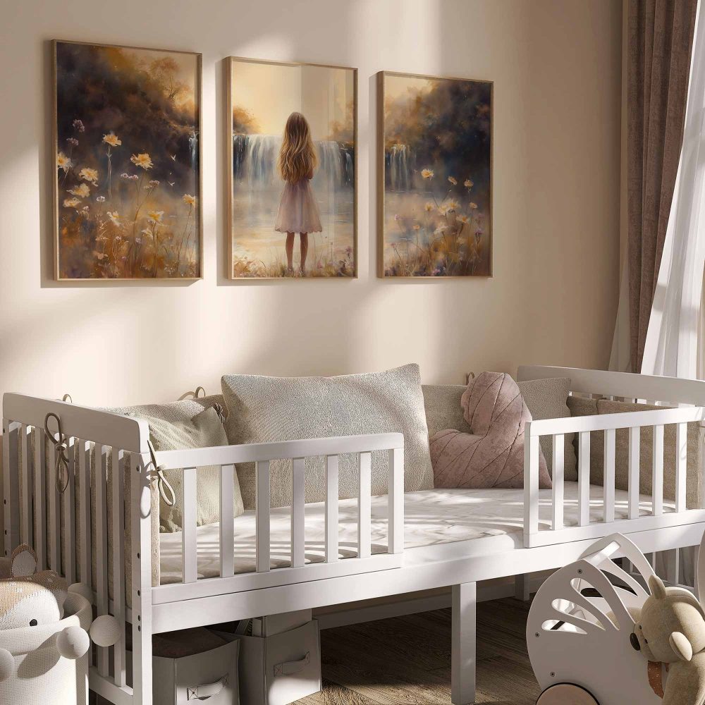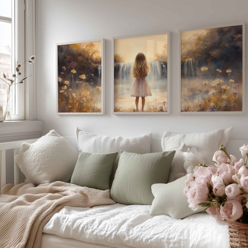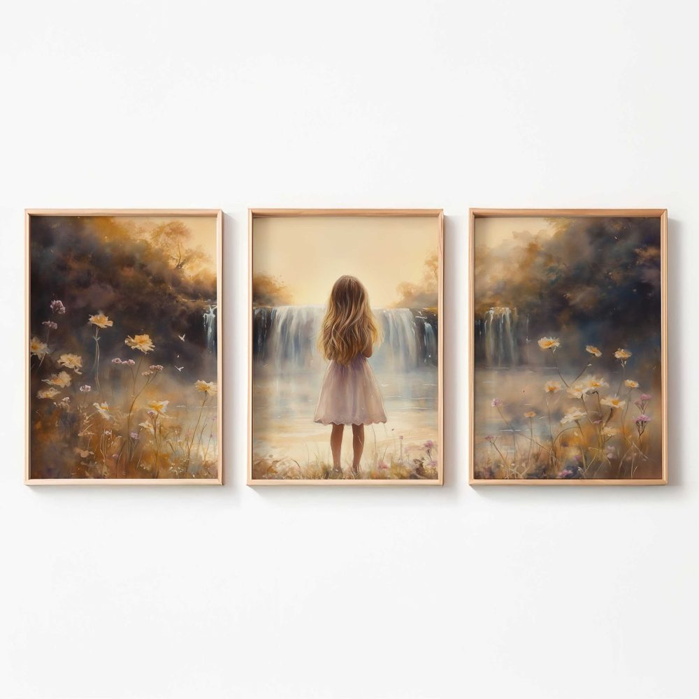 Terug naar collectie / Kinderkamer posters / Bloemen posters / Betoverend Meisje bij Dromerige Waterval