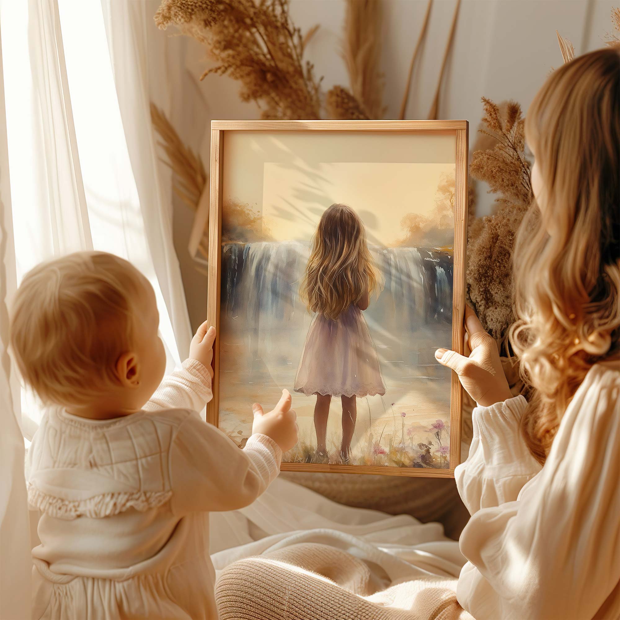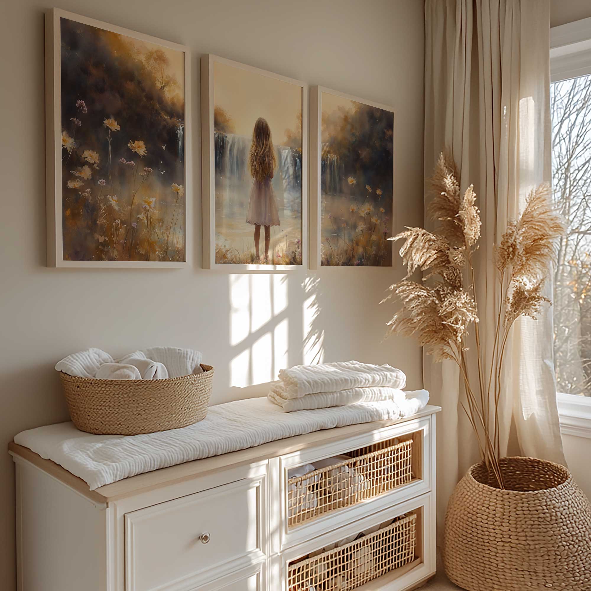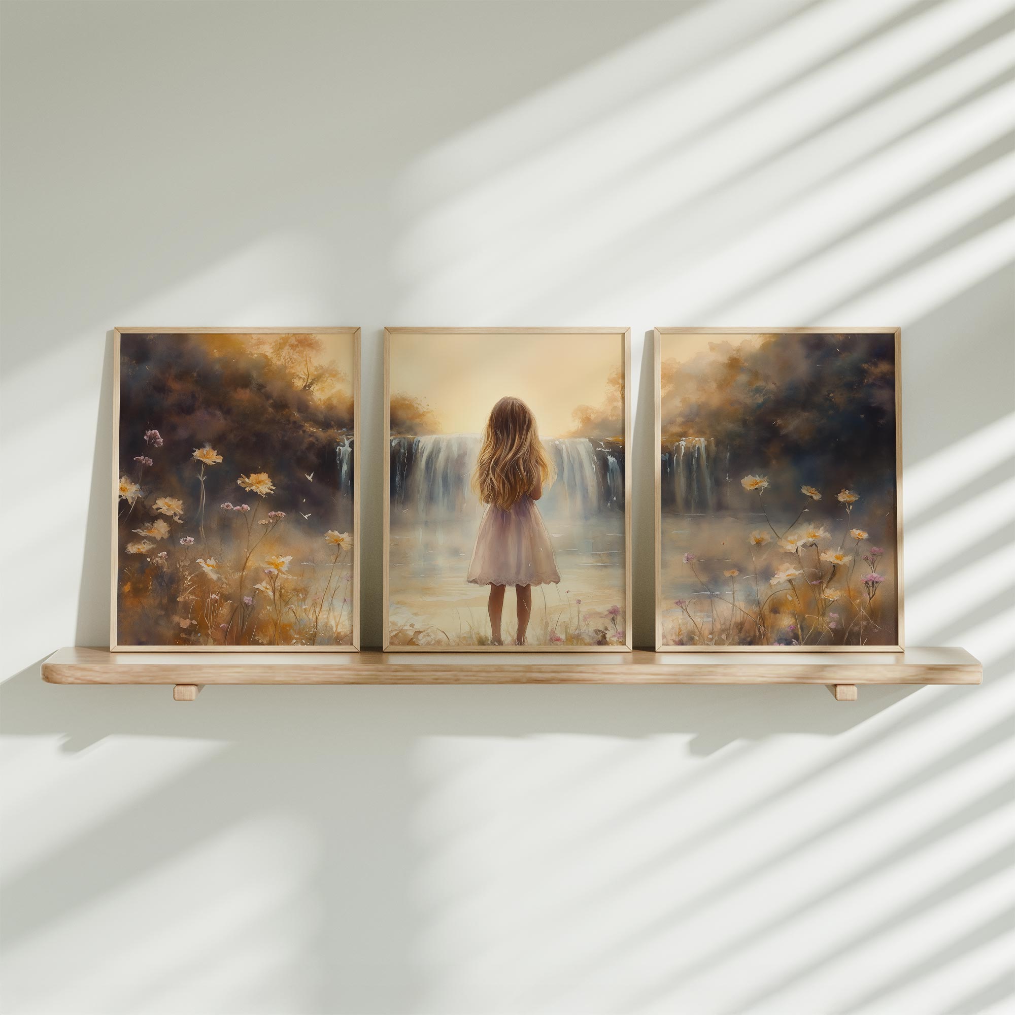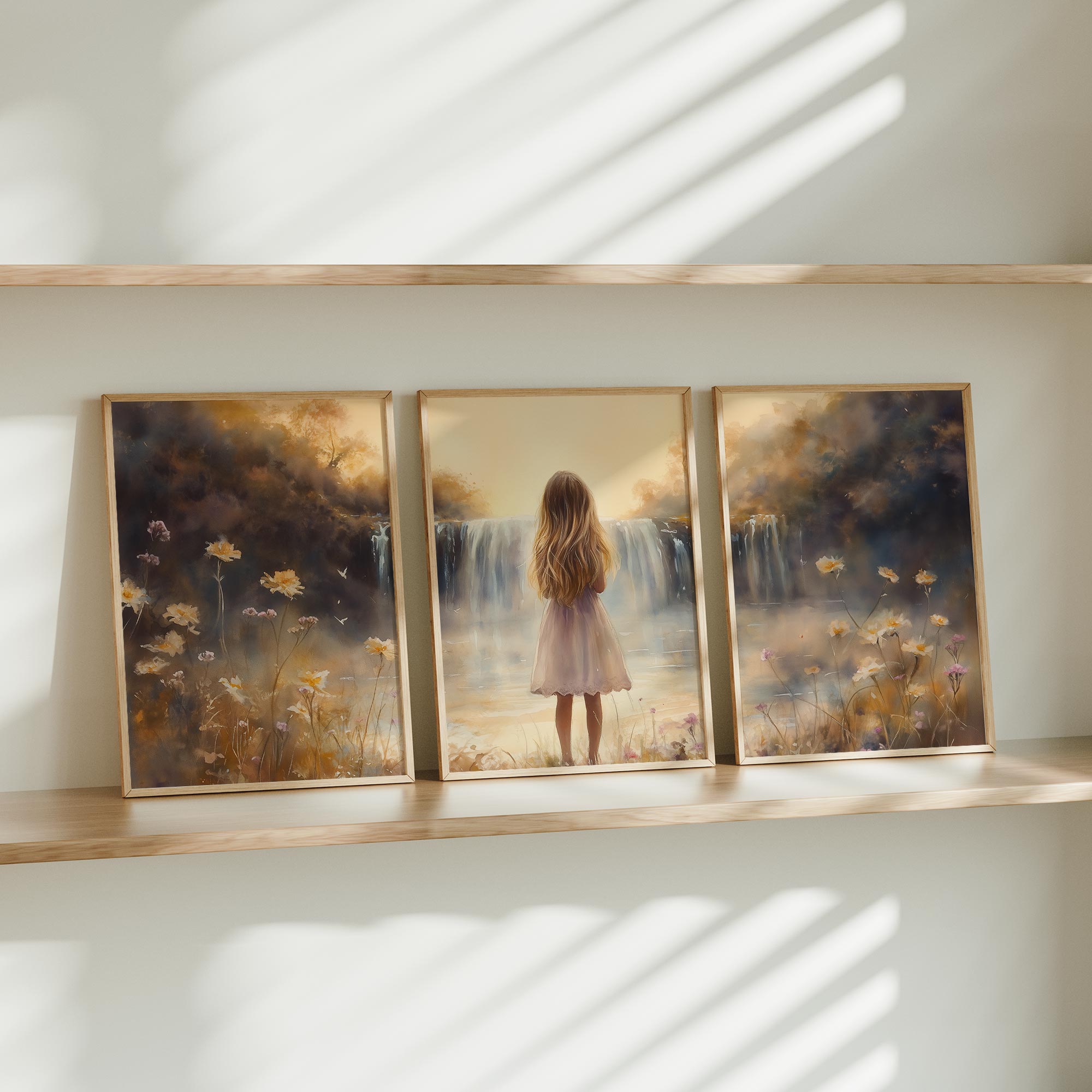 Terug naar collectie / Kinderkamer posters / Bloemen posters / Betoverend Meisje bij Dromerige Waterval