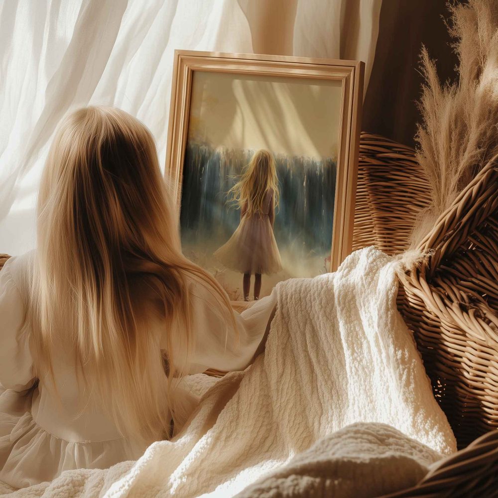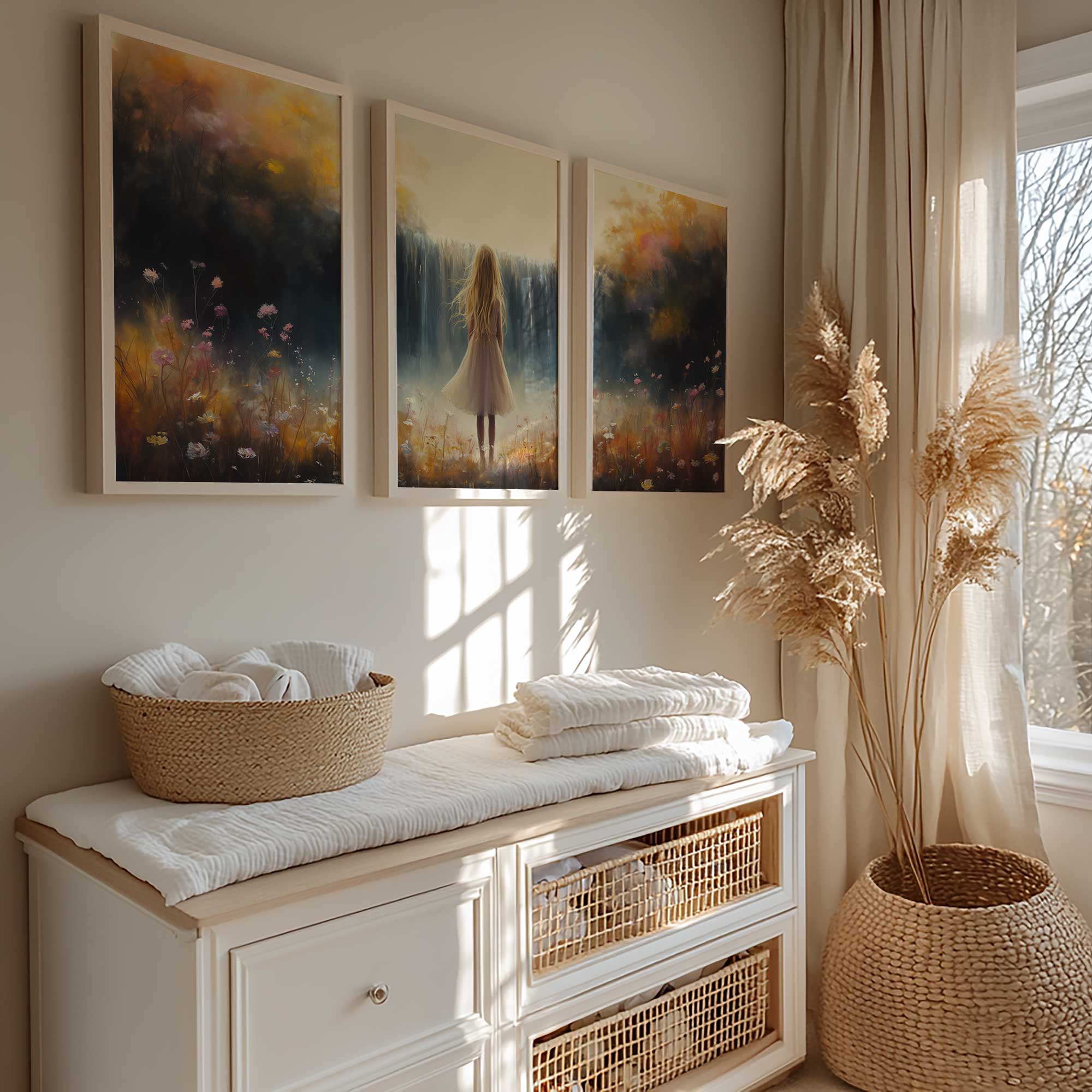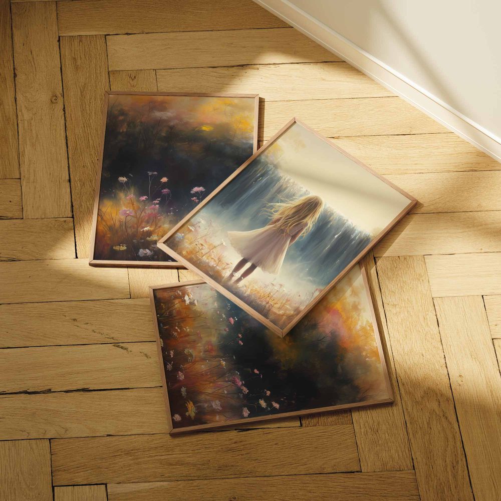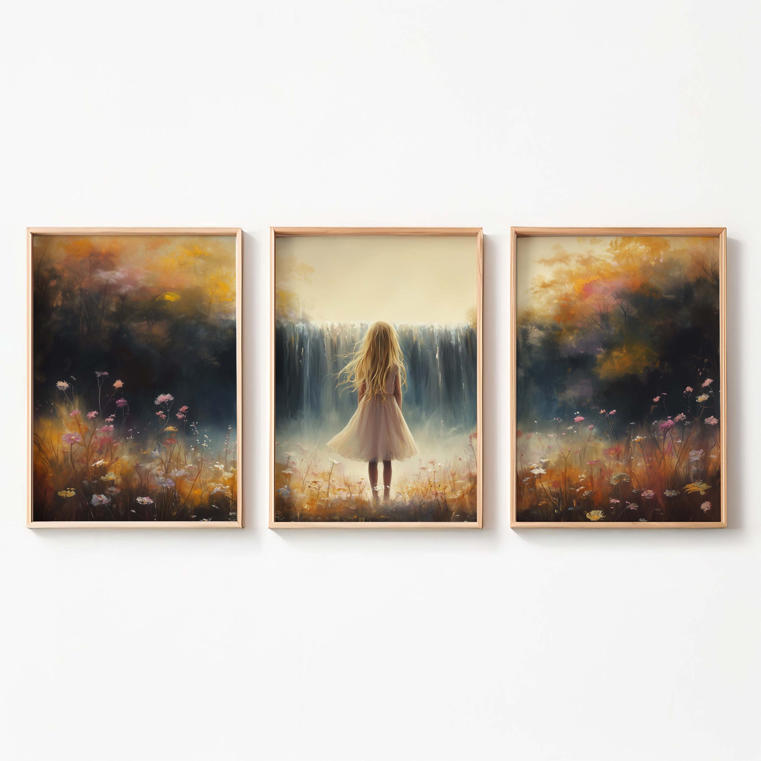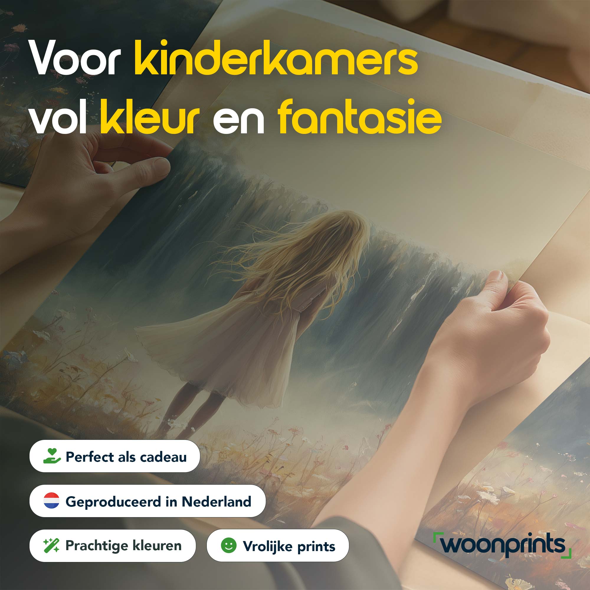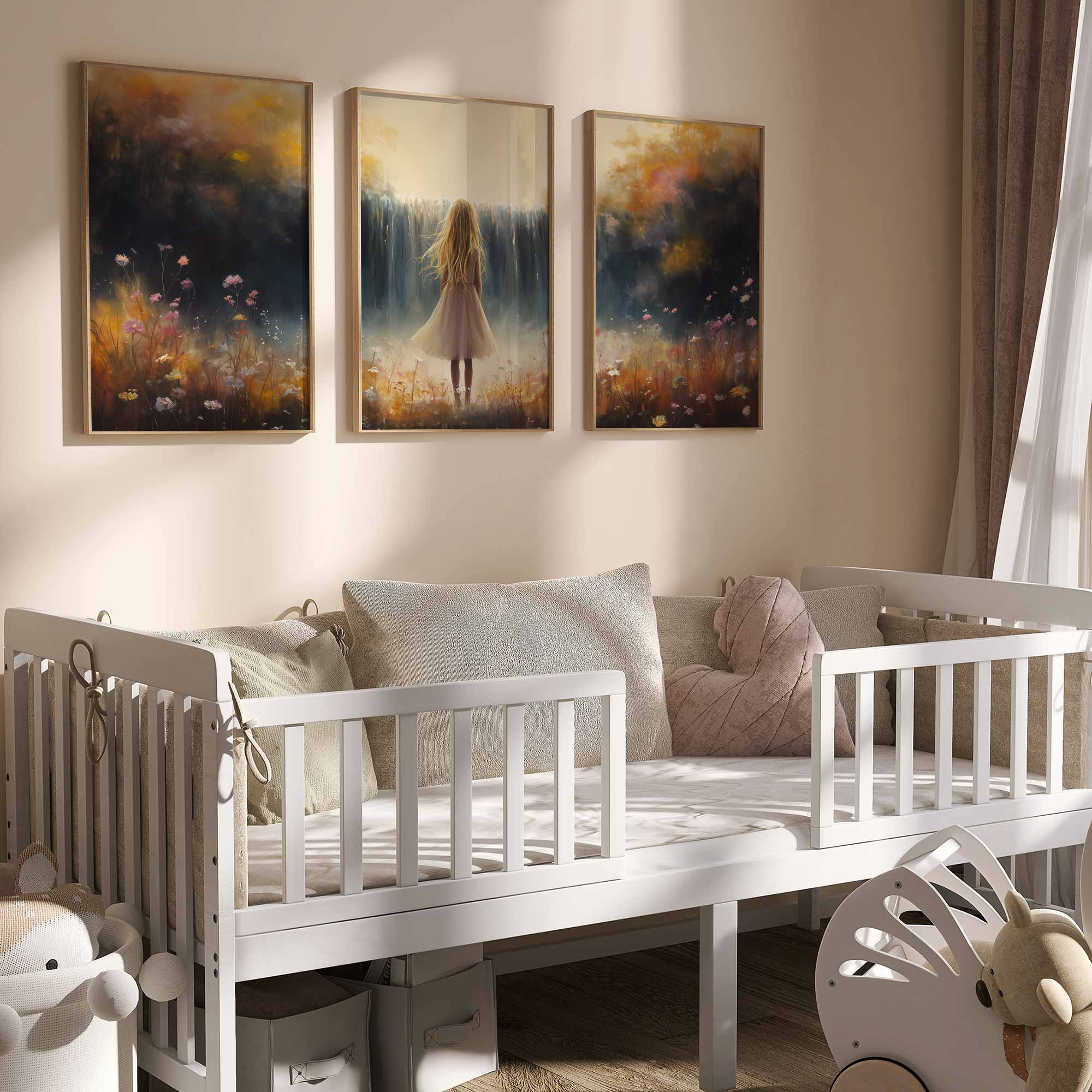 Terug naar collectie / Kinderkamer posters / Bloemen posters / Betoverend Meisje bij Waterval in Pastel Droomwereld