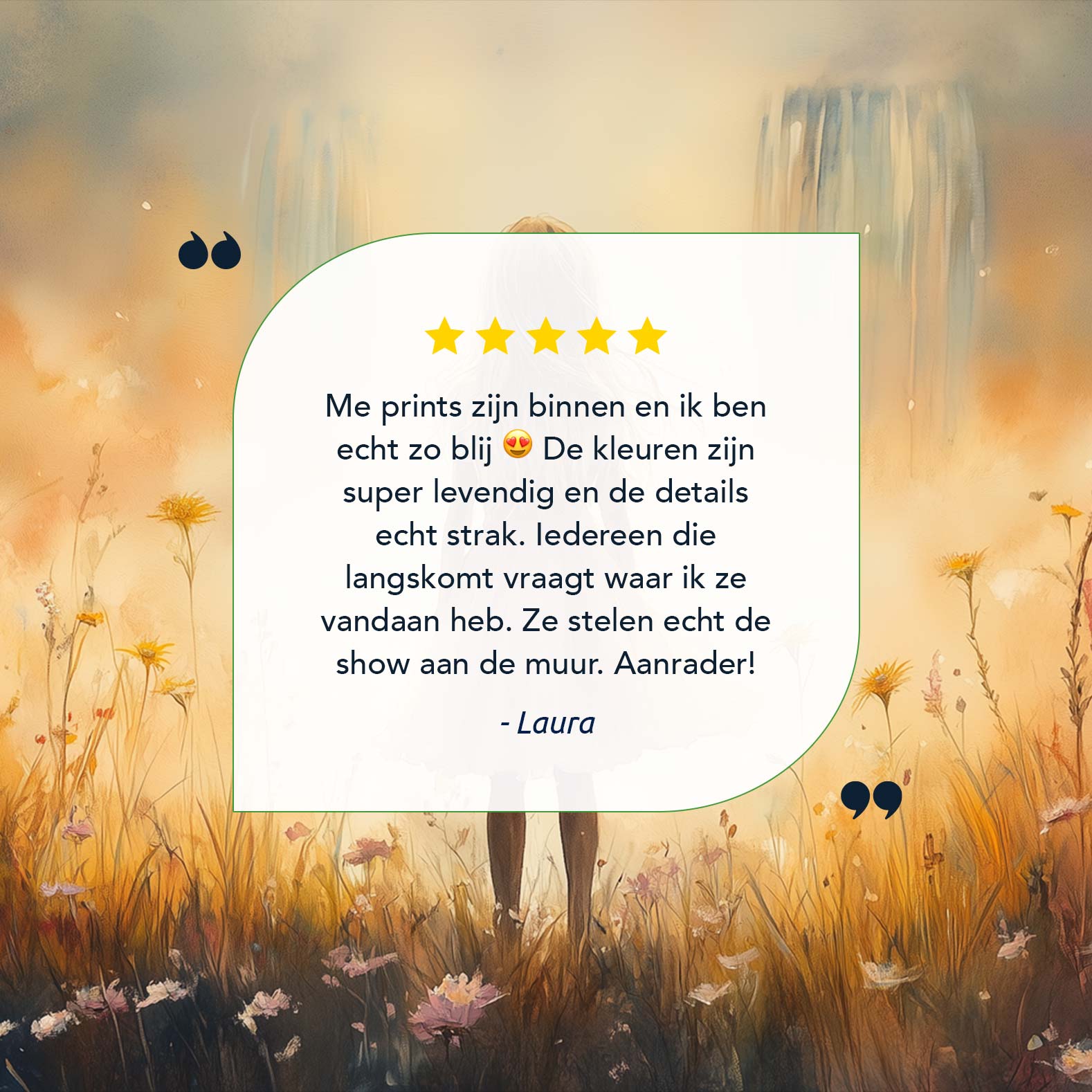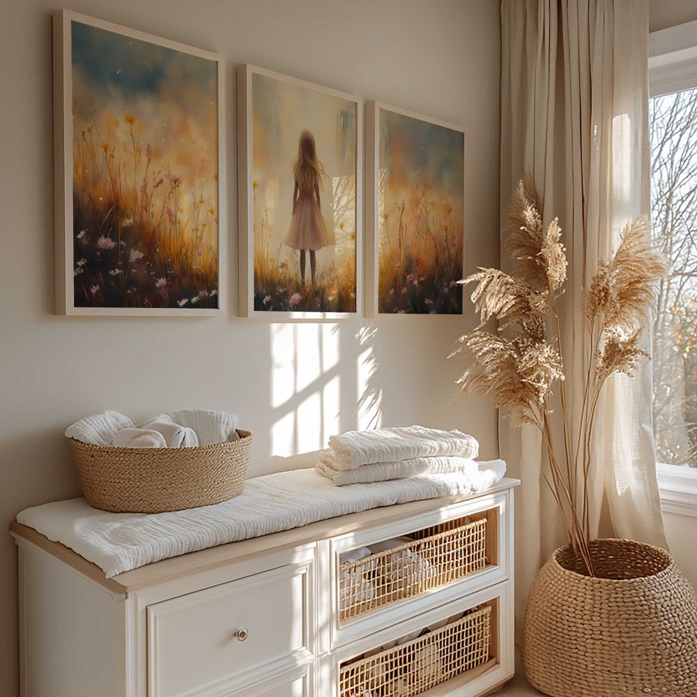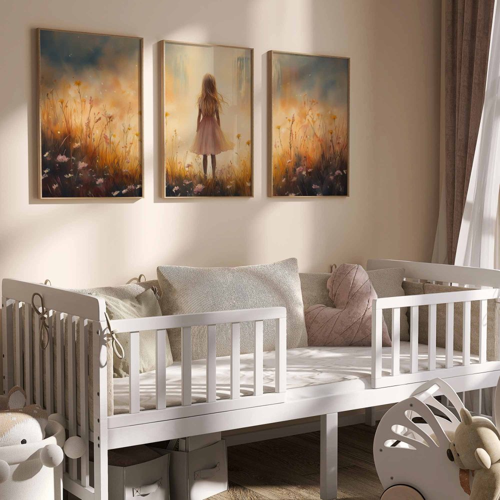 Terug naar collectie / Kinderkamer posters / Bloemen posters / Betoverend Meisje in Bloemenveld met Waterval
