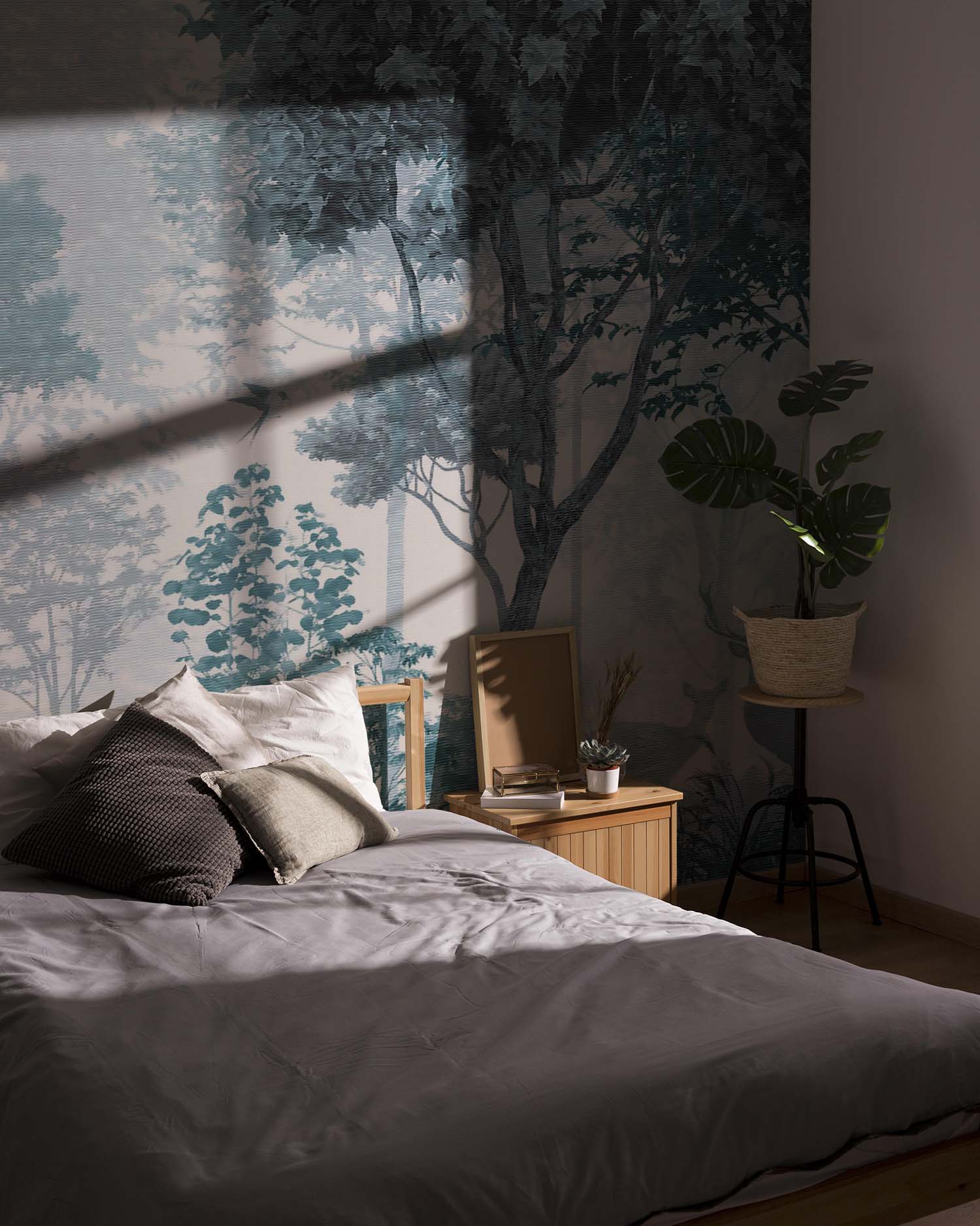 U ontvangt een staal van 15 × 20 cm op Variovlies behang, met dezelfde print en structuur als het uiteindelijke product. Zo kunt u thuis rustig beoordelen of het ontwerp goed past.