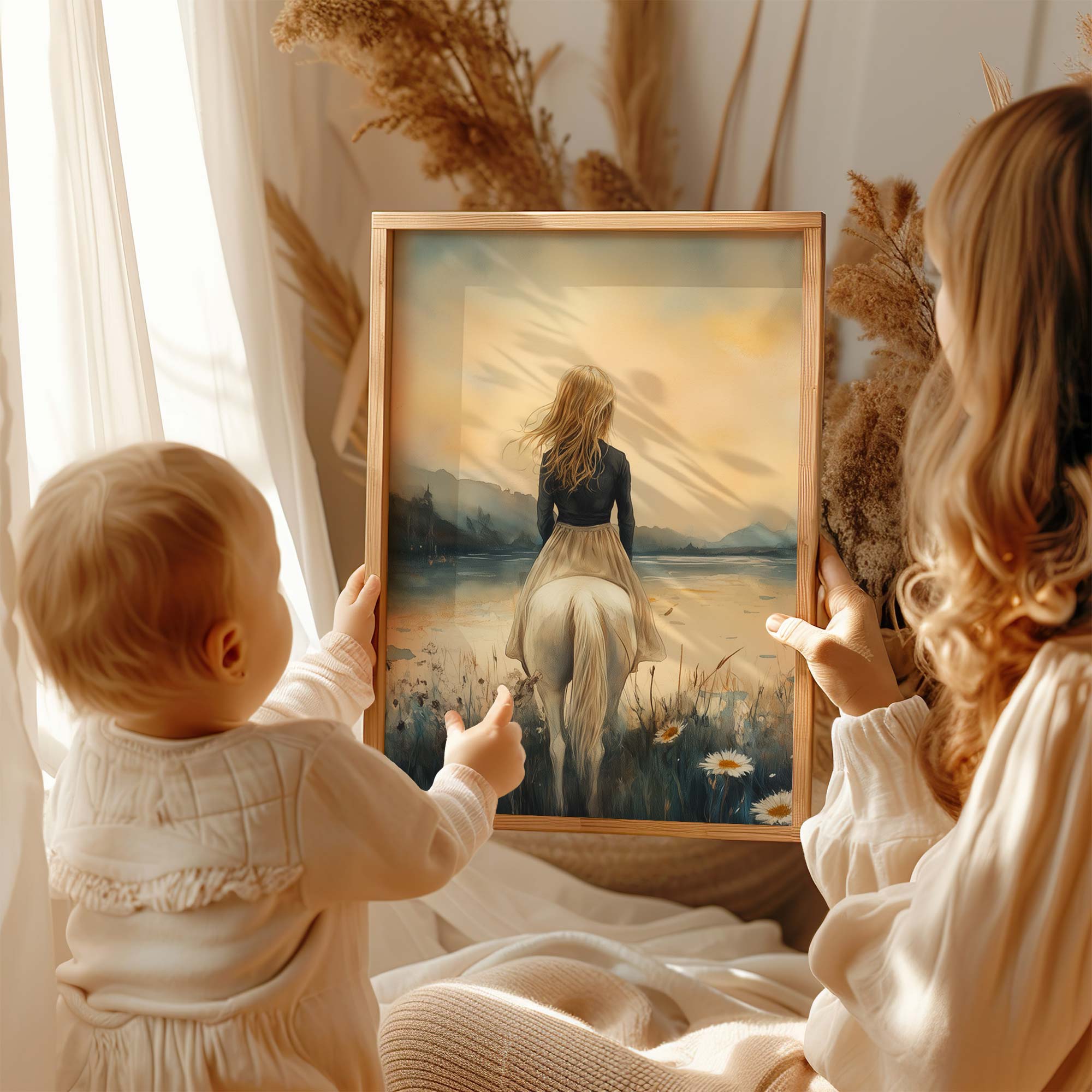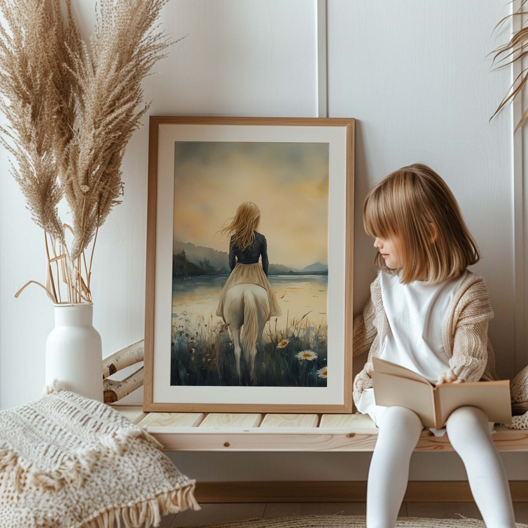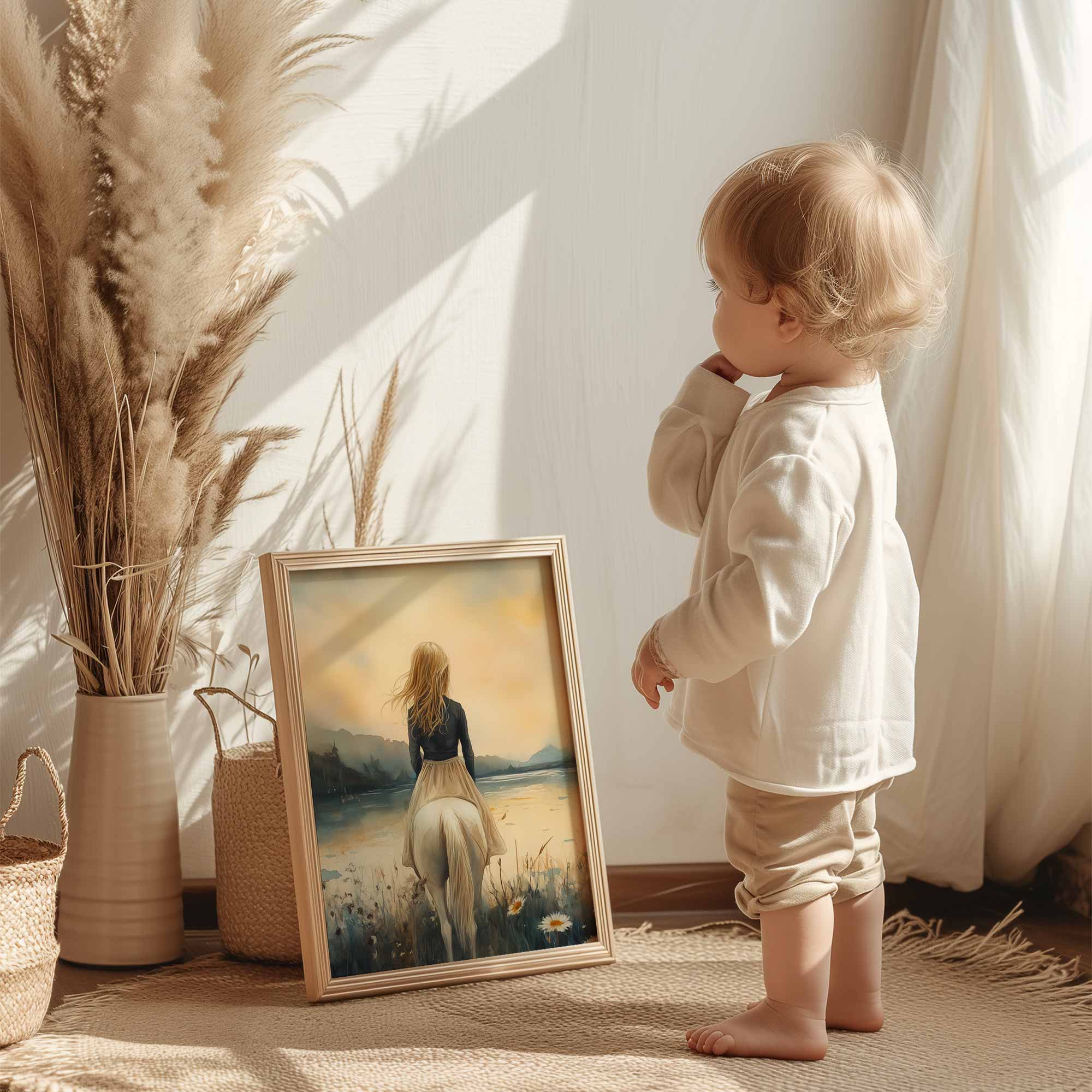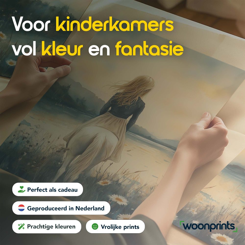 Terug naar collectie / Kinderkamer posters / Bloemen posters / Betoverend Paard en Meisje in Bloemenveld