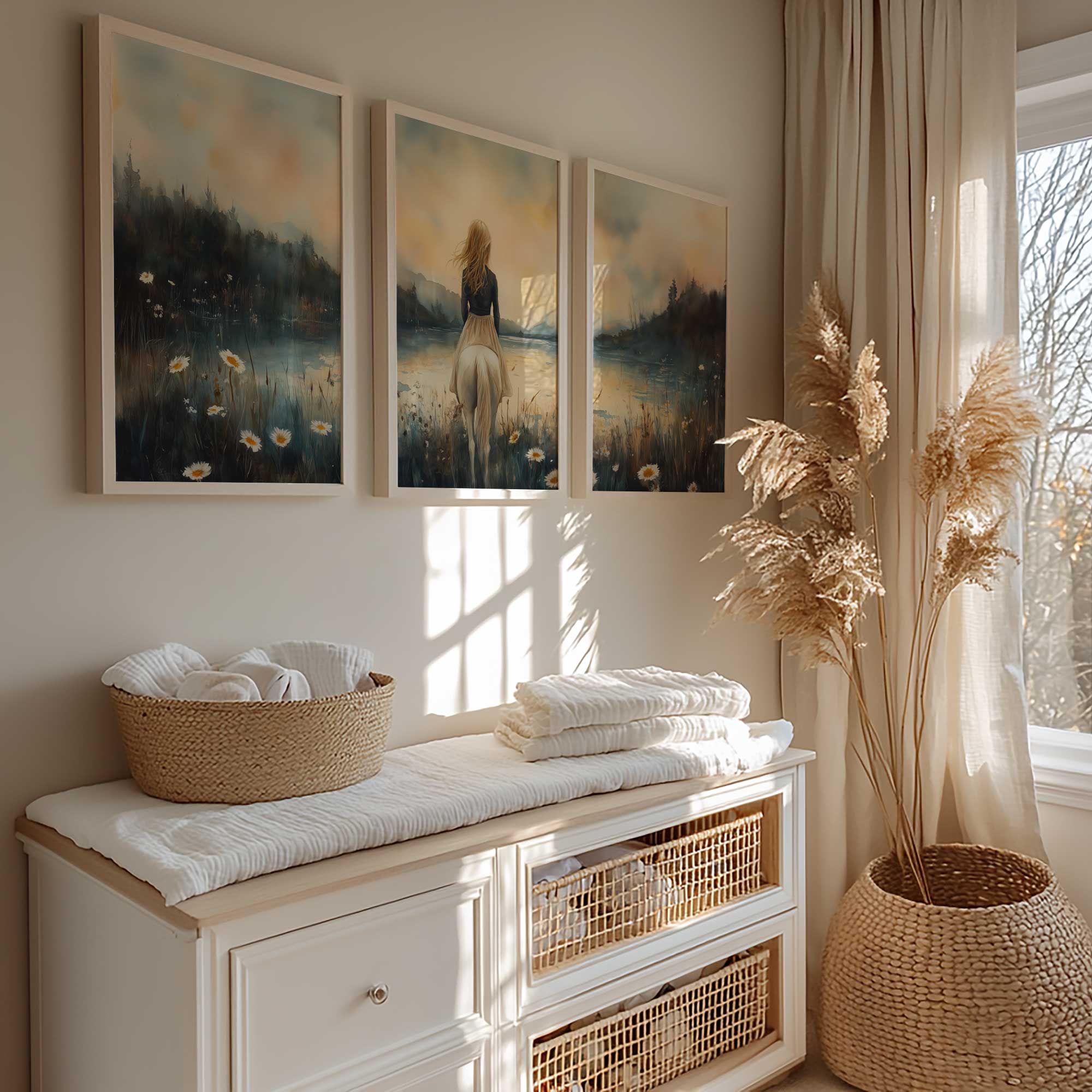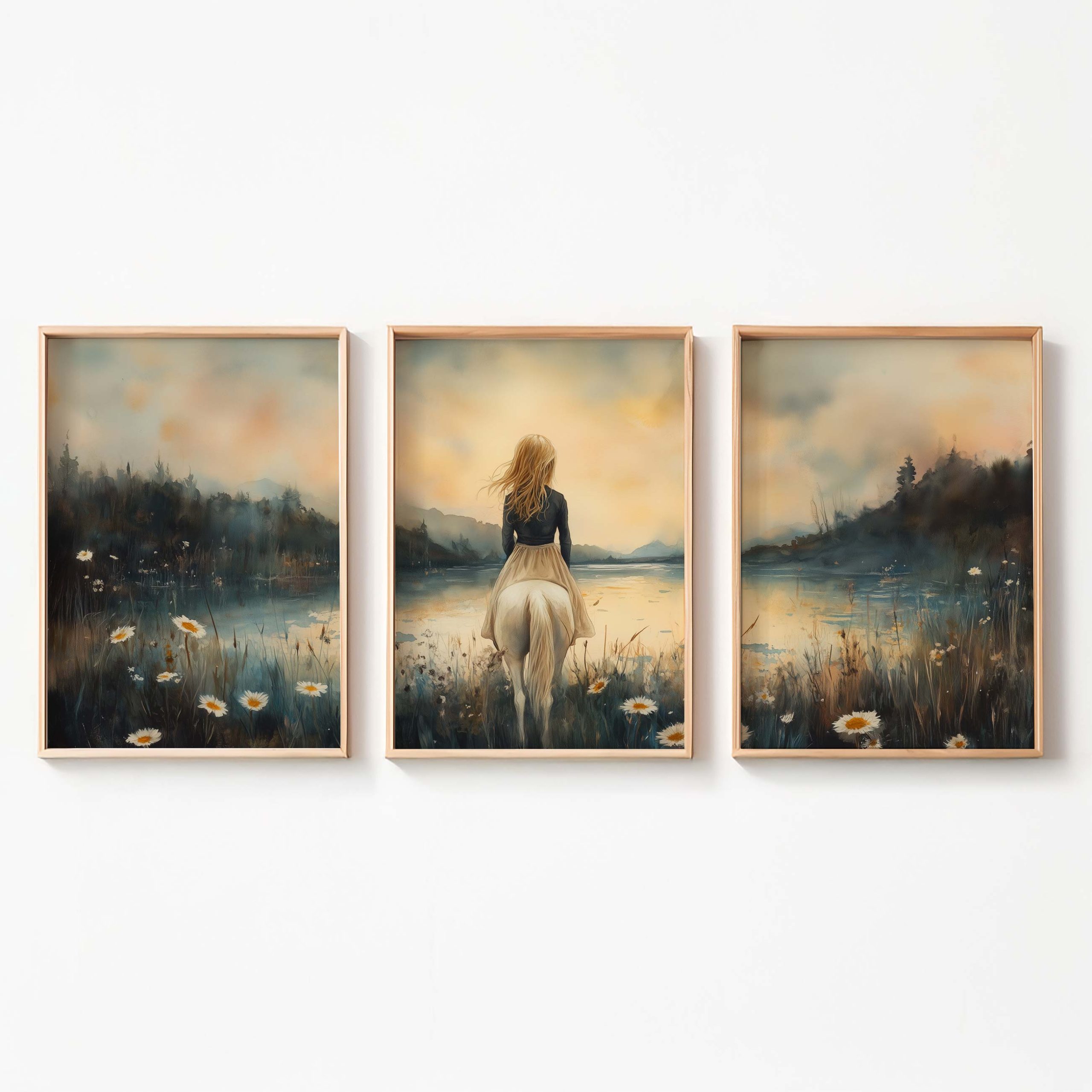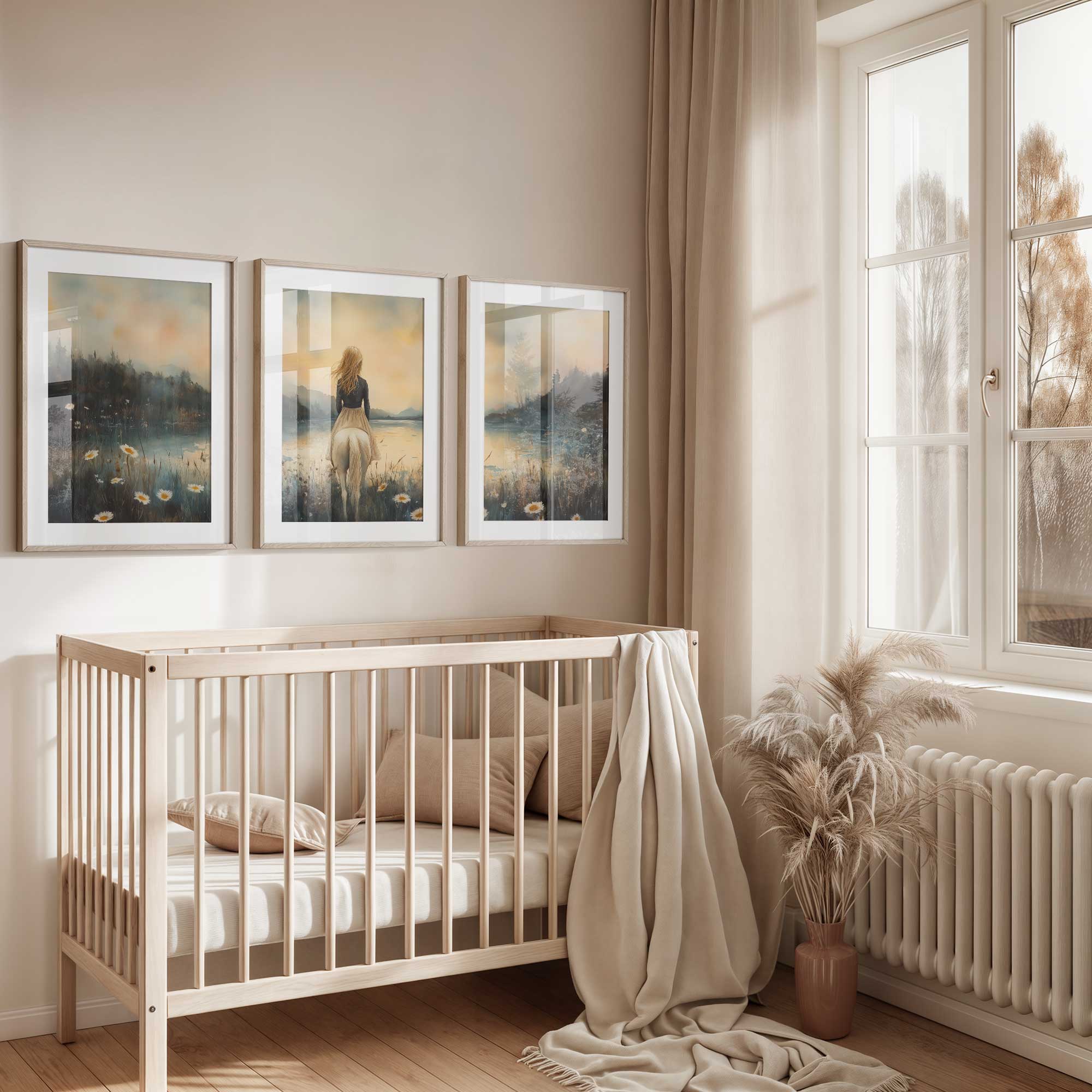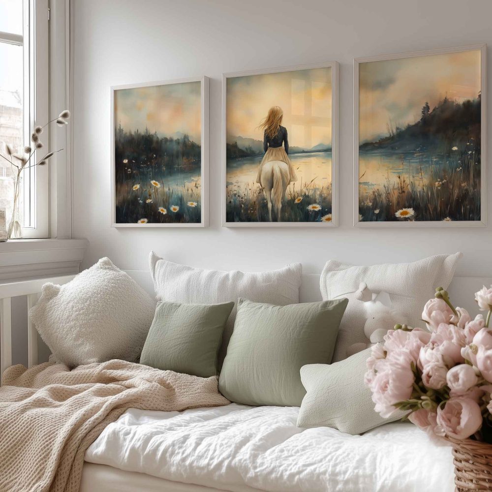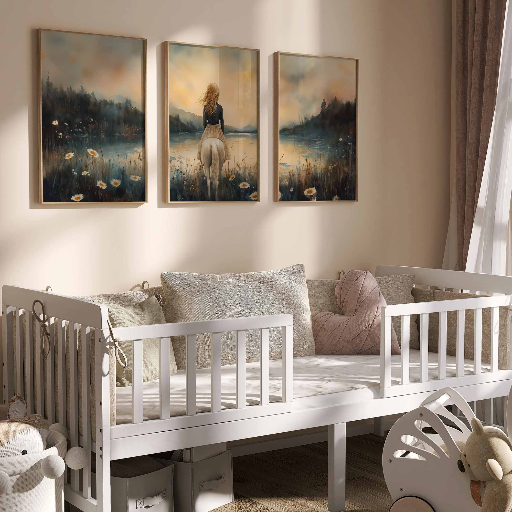 Terug naar collectie / Kinderkamer posters / Bloemen posters / Betoverend Paard en Meisje in Bloemenveld