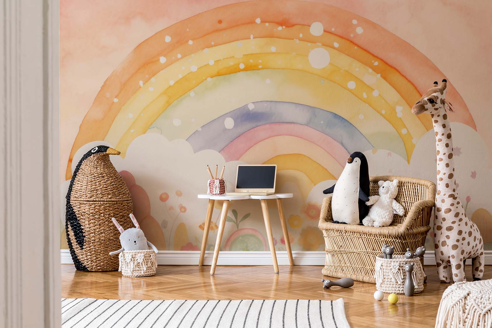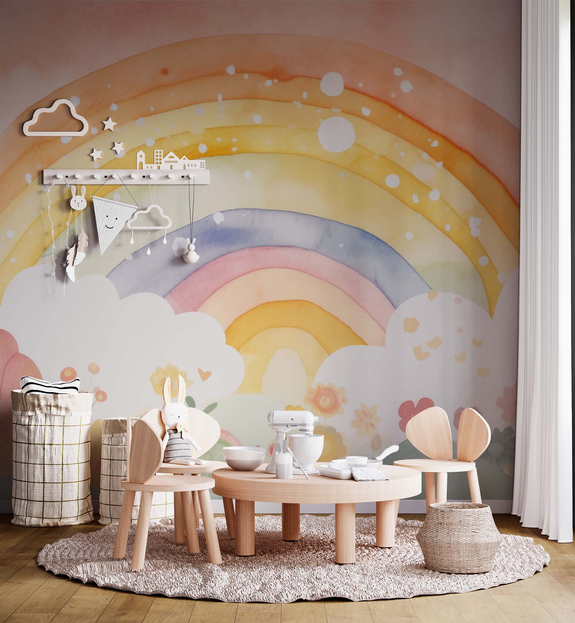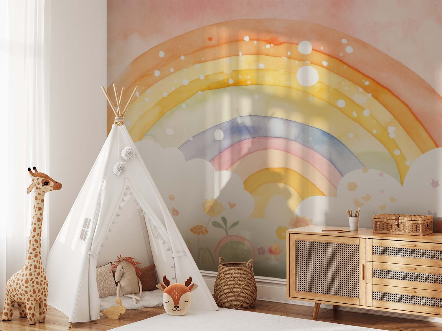 Terug naar collectie / Behang / Kinderkamer behang / Babykamer behang / Betoverend Regenboog Kinderbehang