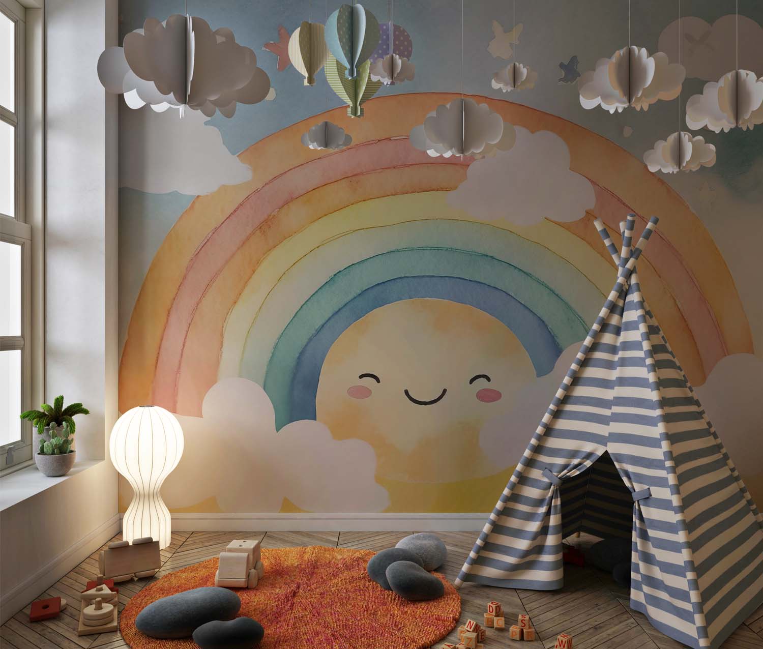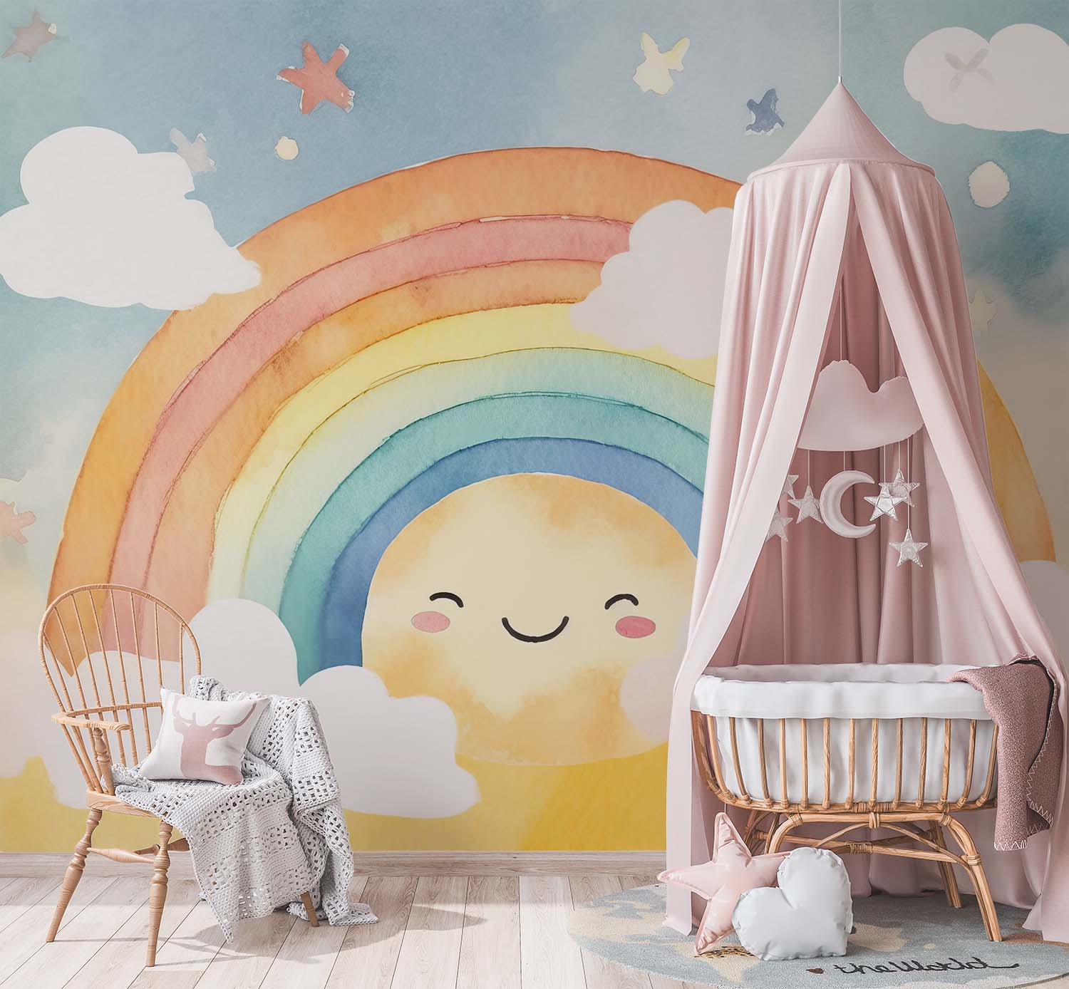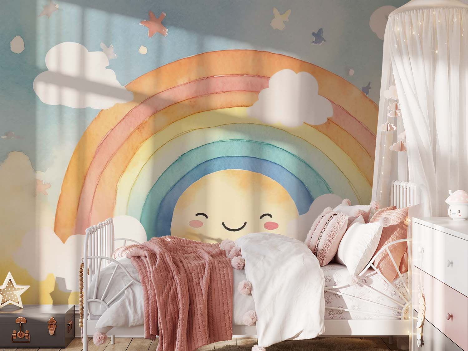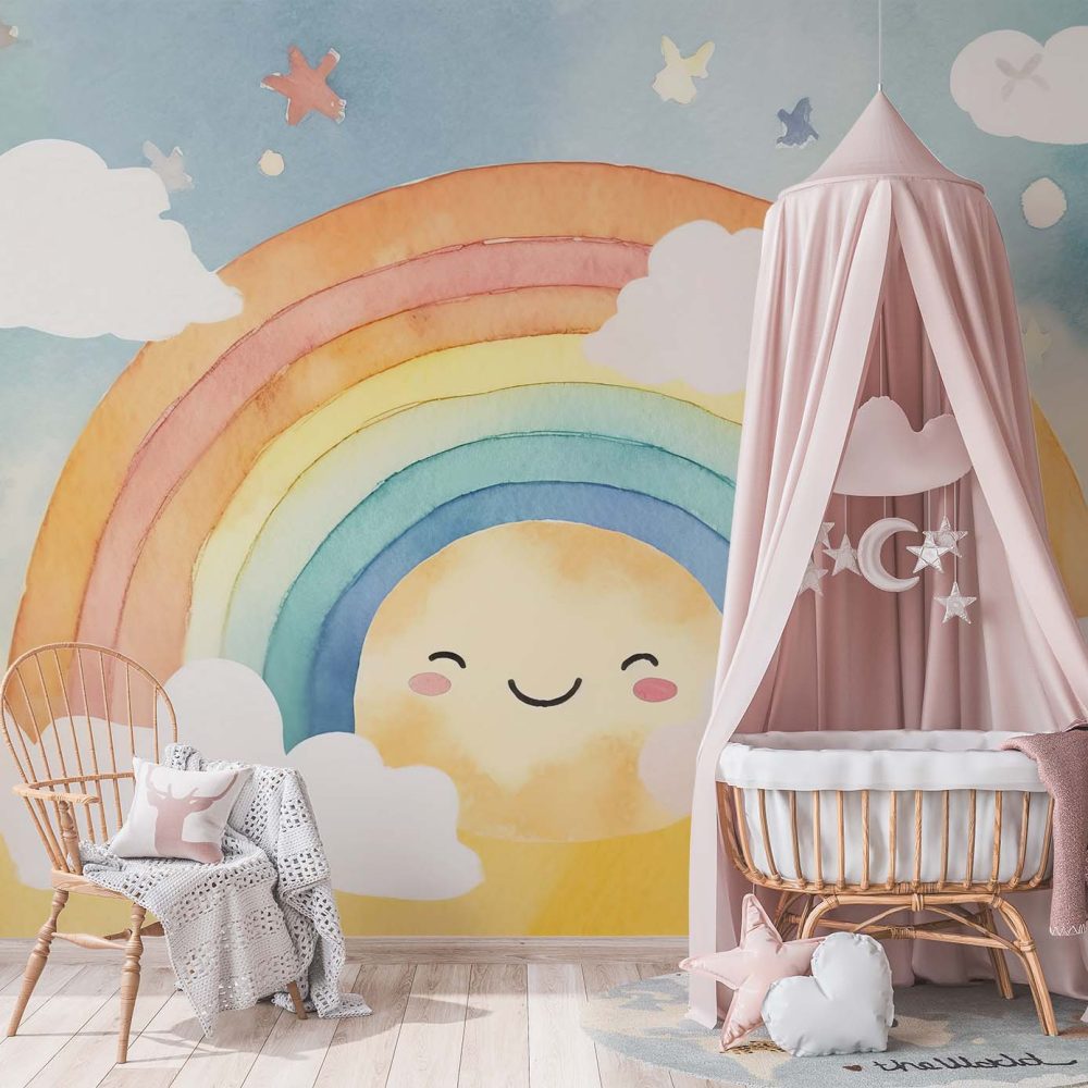 Terug naar collectie / Behang / Kinderkamer behang / Babykamer behang / Betoverend Regenboog Kinderkamer Behang