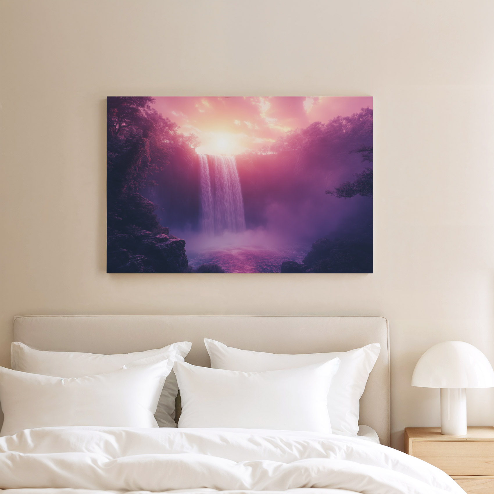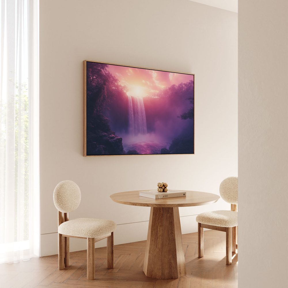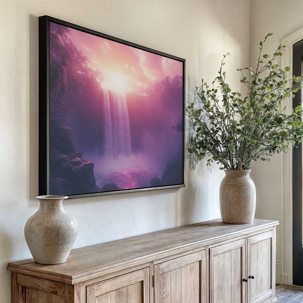 Terug naar collectie / Schilderijen / Bergen Schilderij / Betoverend Roze Waterval Landschap