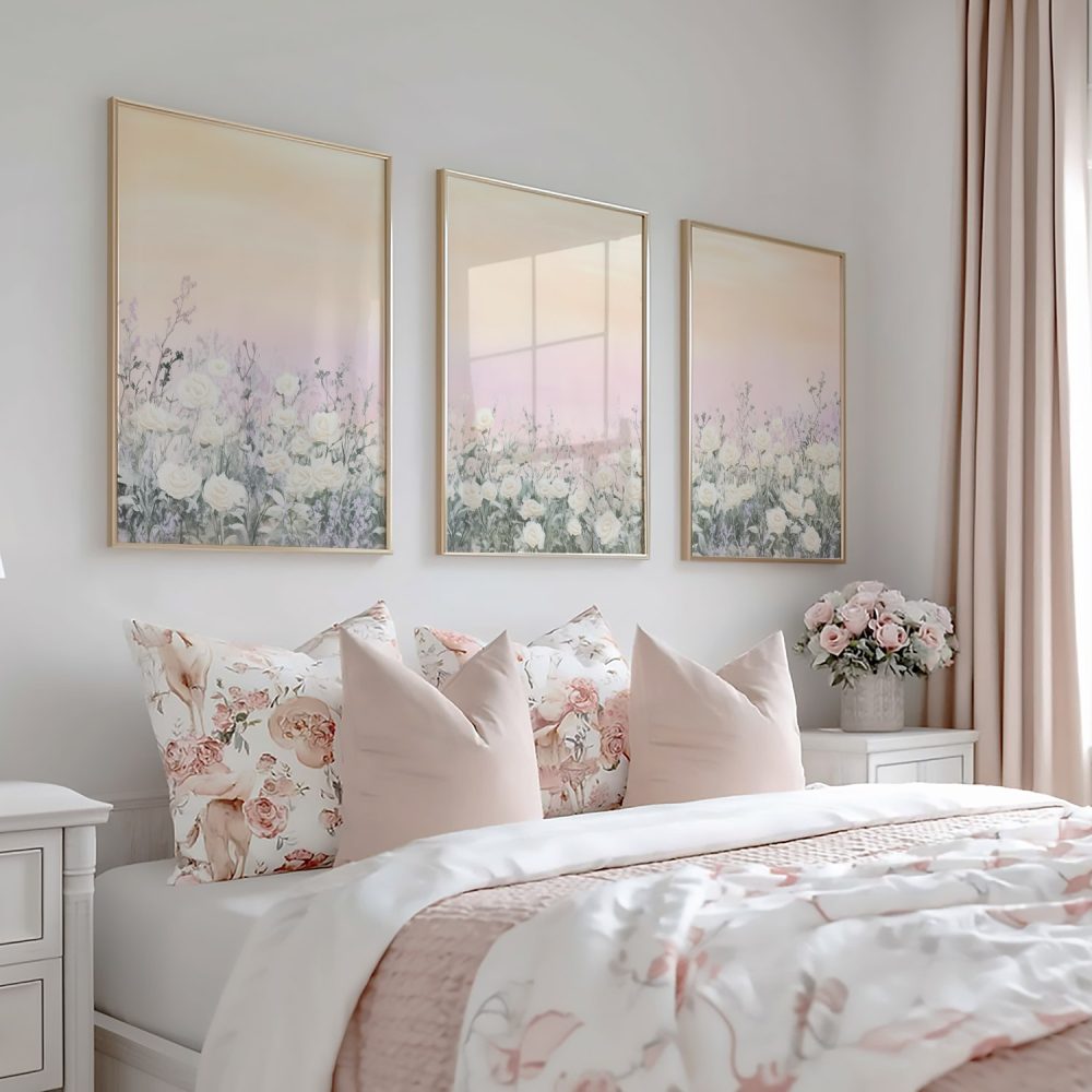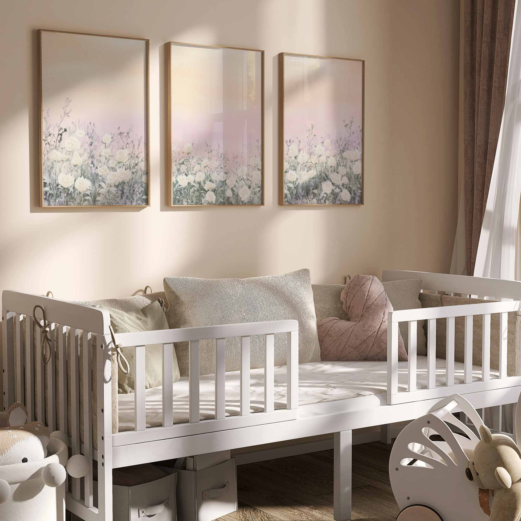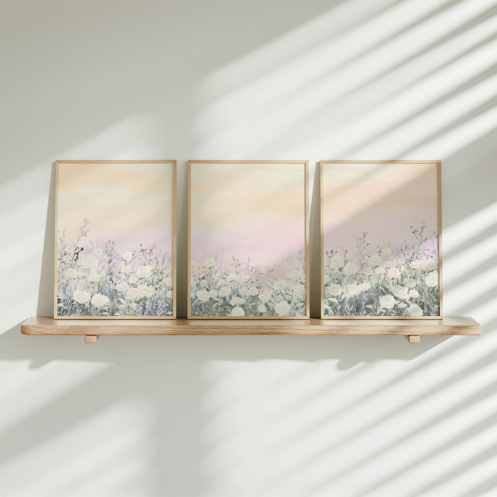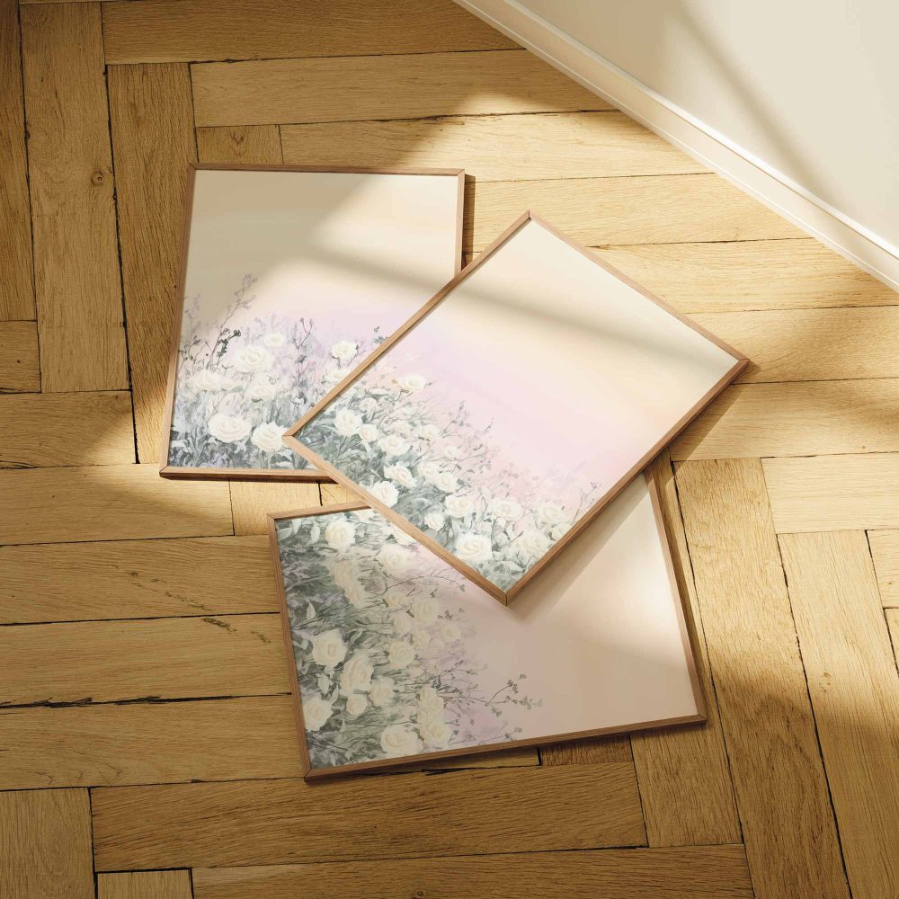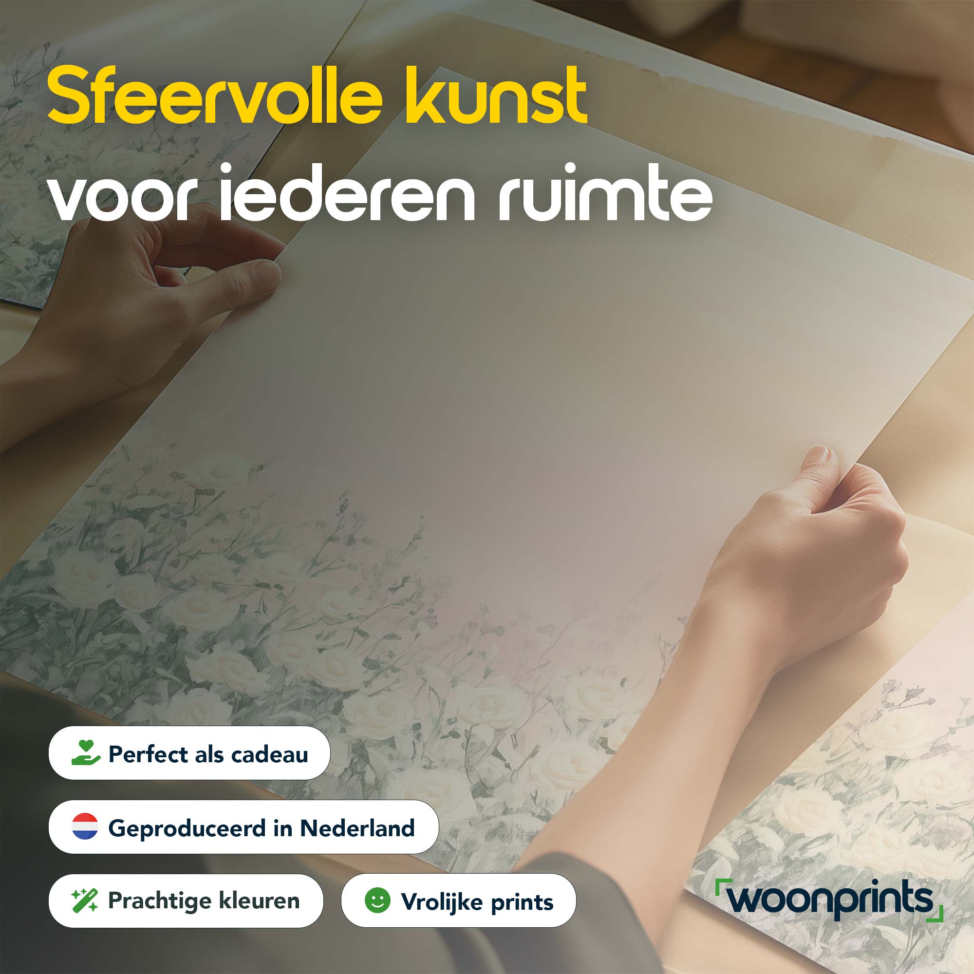 Terug naar collectie / Kinderkamer posters / Bloemen posters / Betoverend Rozenveld in Pastel Roze en Wit