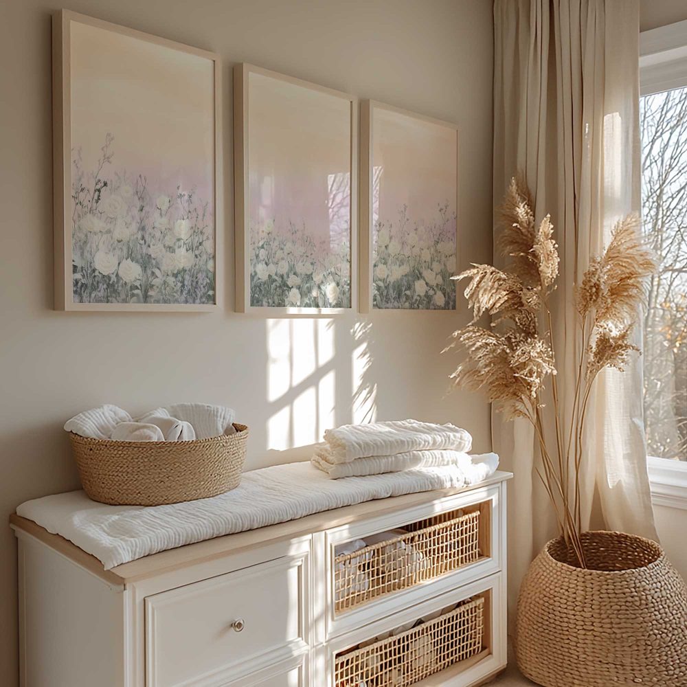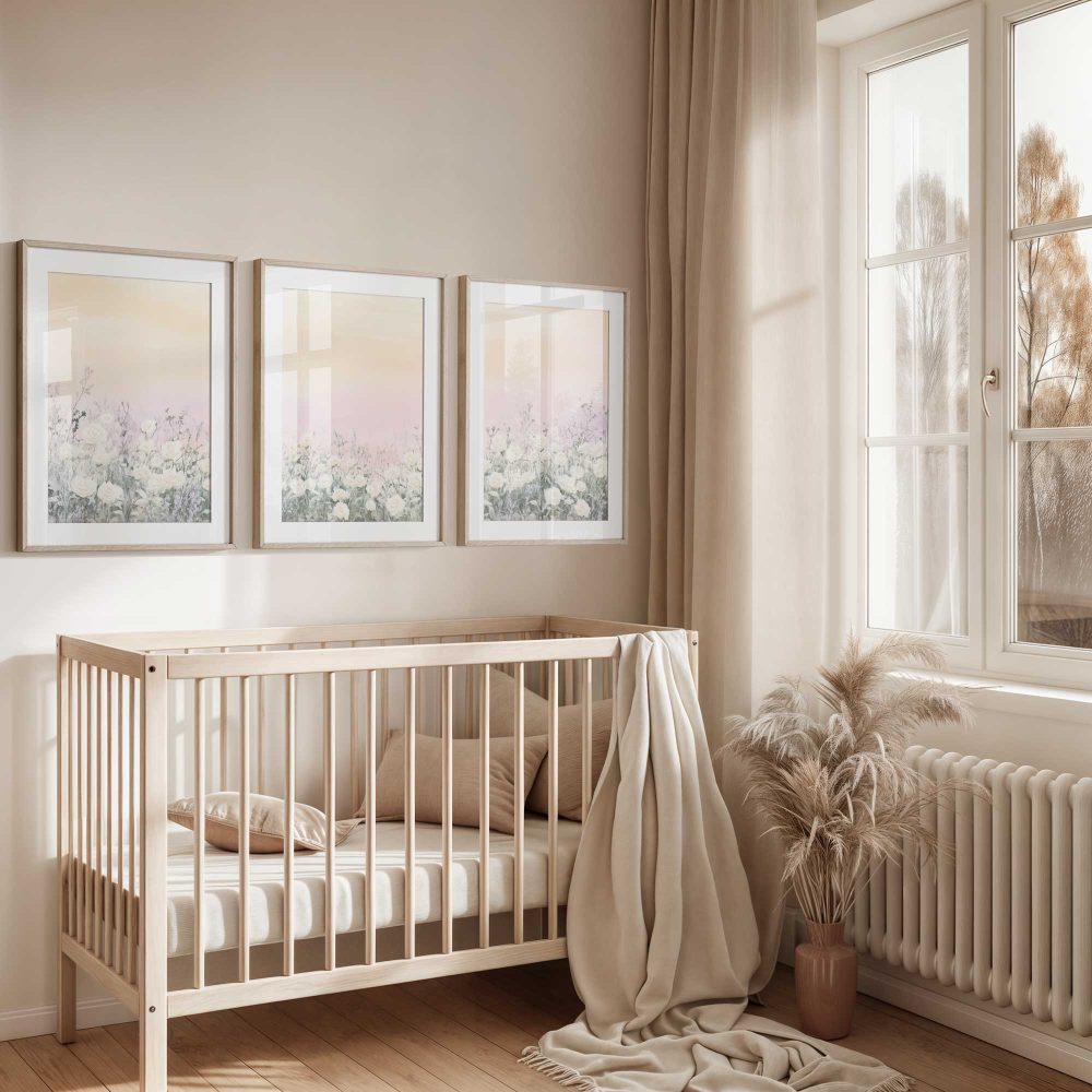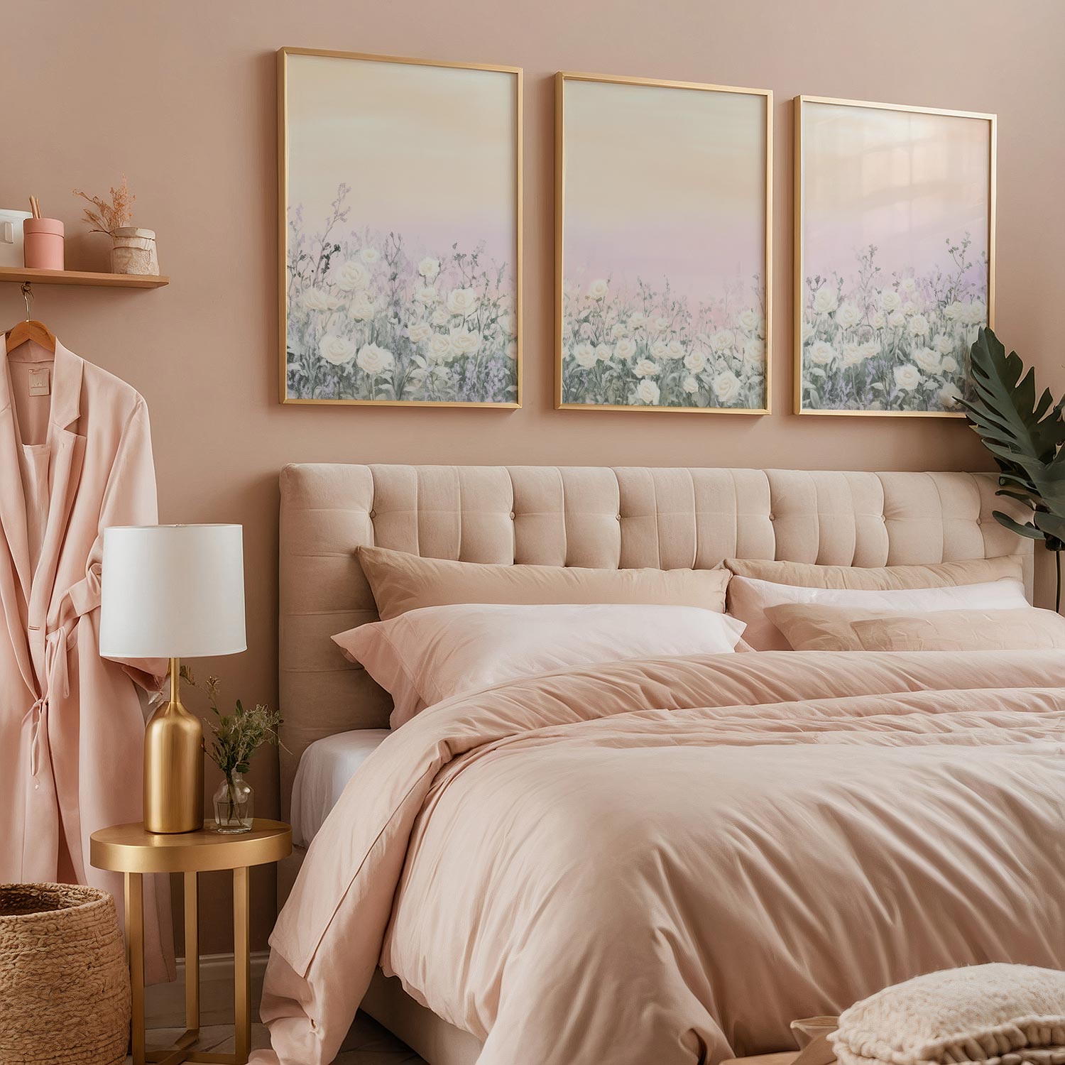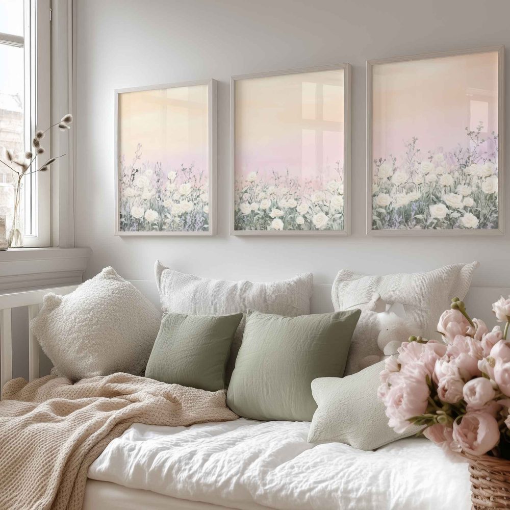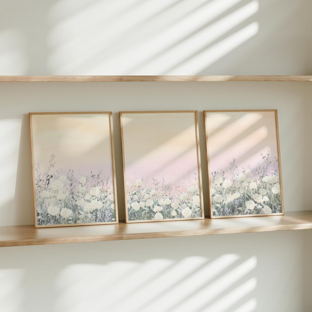 Terug naar collectie / Kinderkamer posters / Bloemen posters / Betoverend Rozenveld in Pastel Roze en Wit