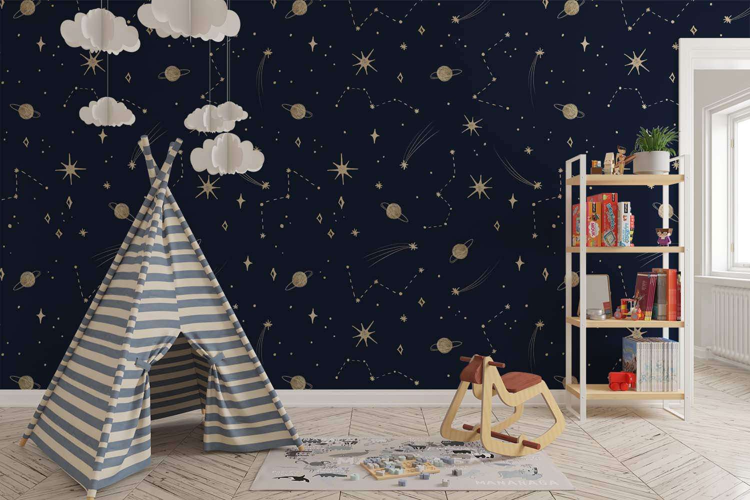 Terug naar collectie / Behang / Kinderkamer behang / Babykamer behang / Betoverend Sterren Kinderbehang