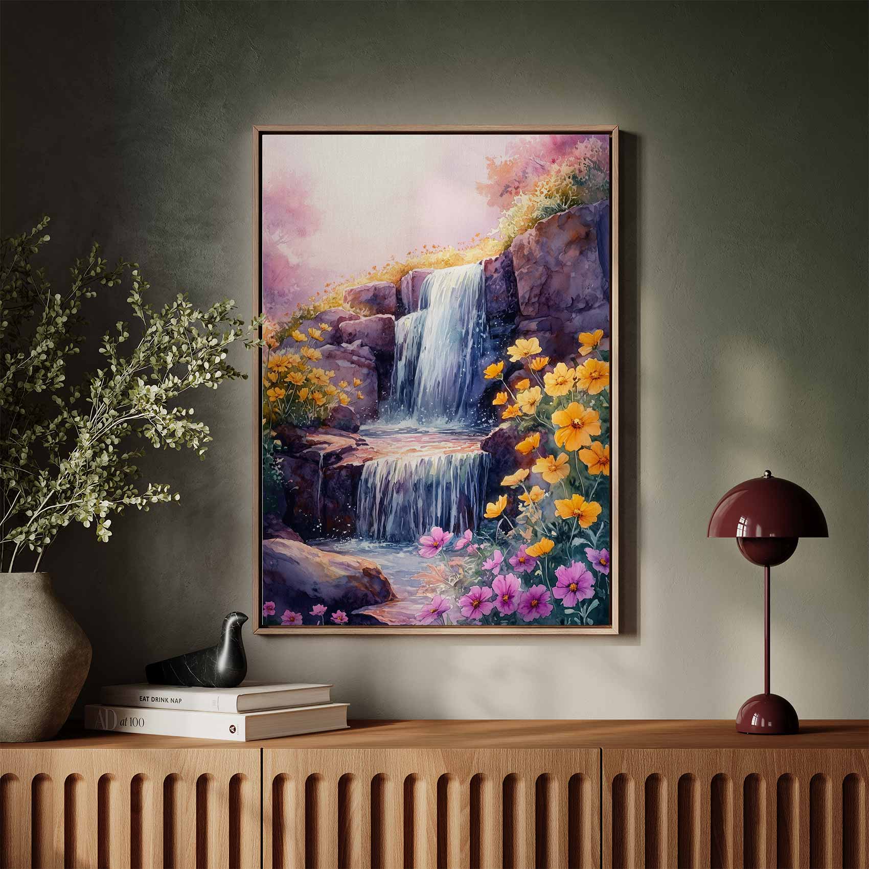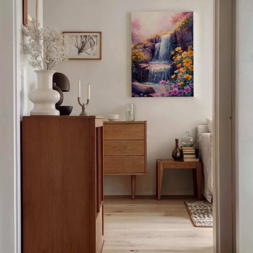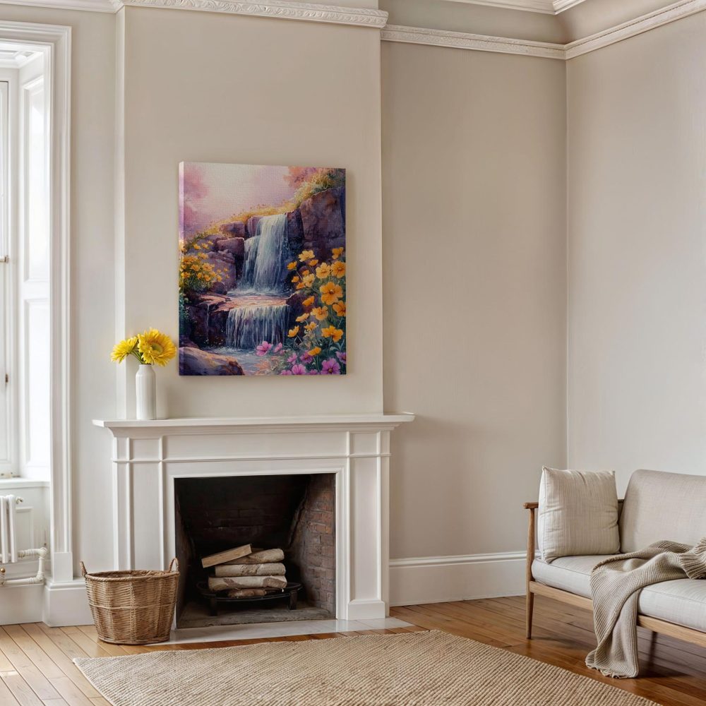 Terug naar collectie / Schilderijen / Bergen Schilderij / Betoverend waterval bloementafereel