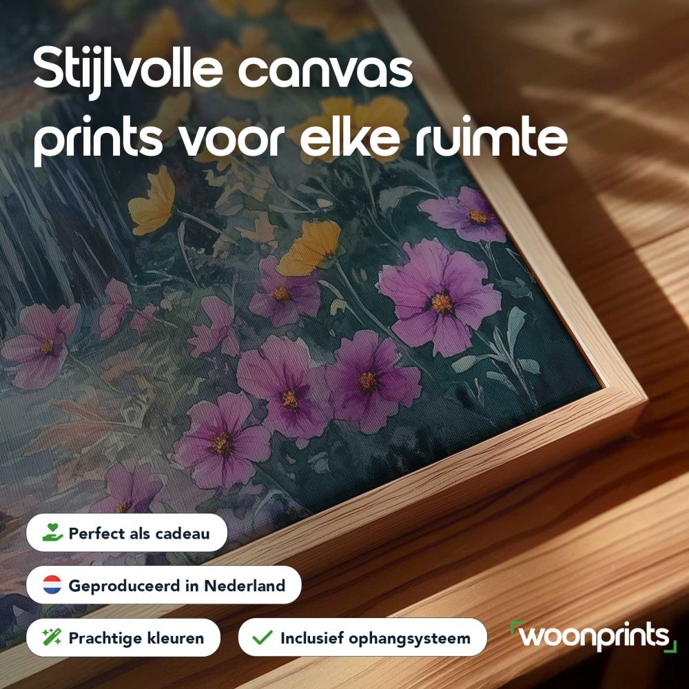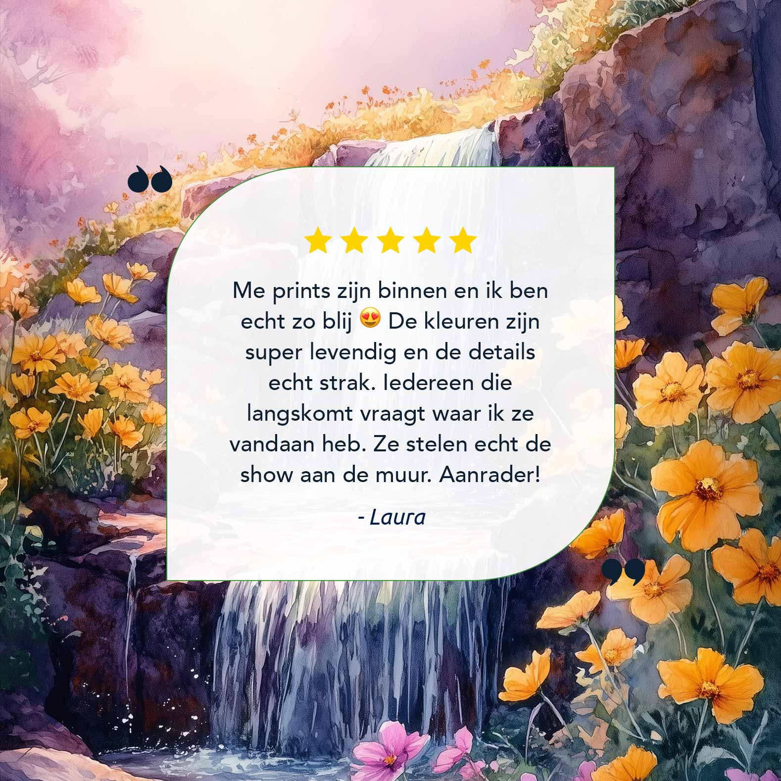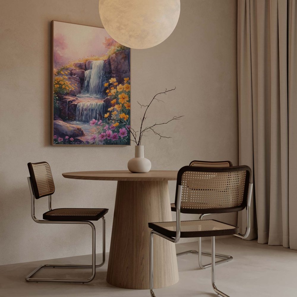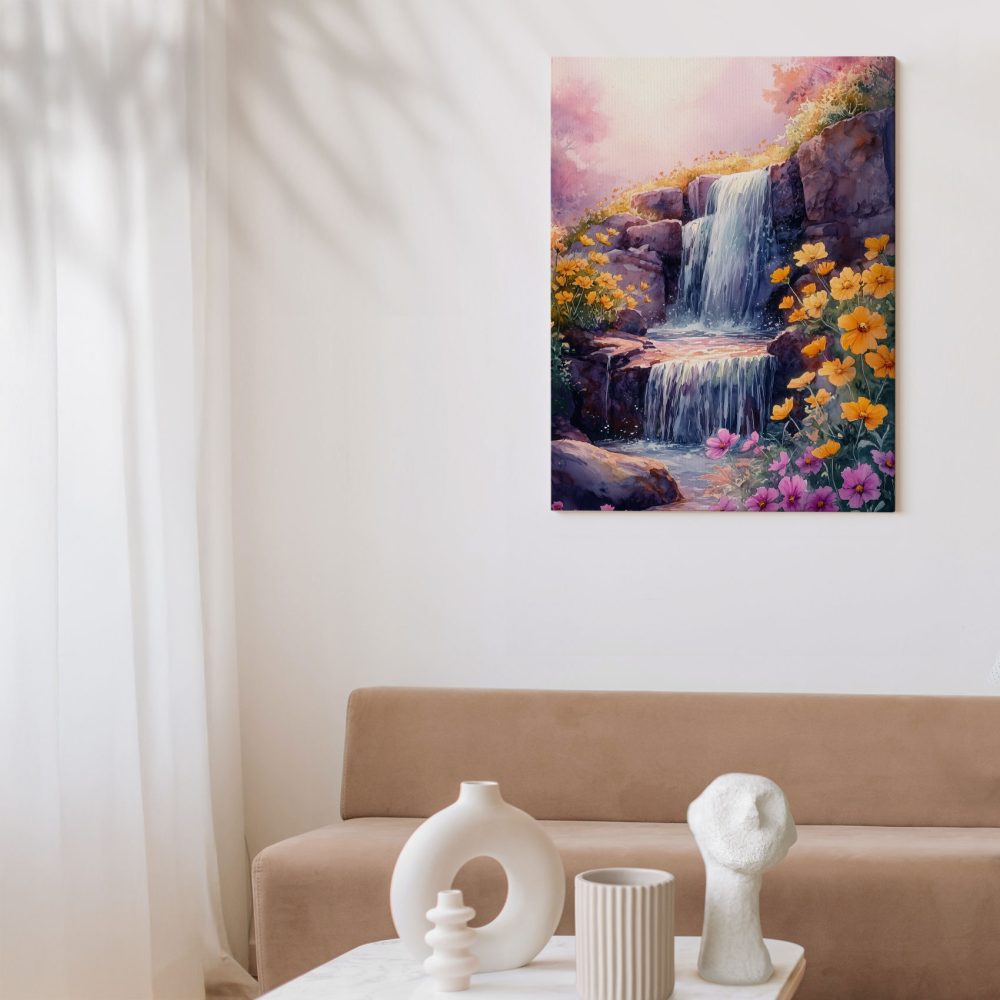 Terug naar collectie / Schilderijen / Bergen Schilderij / Betoverend waterval bloementafereel