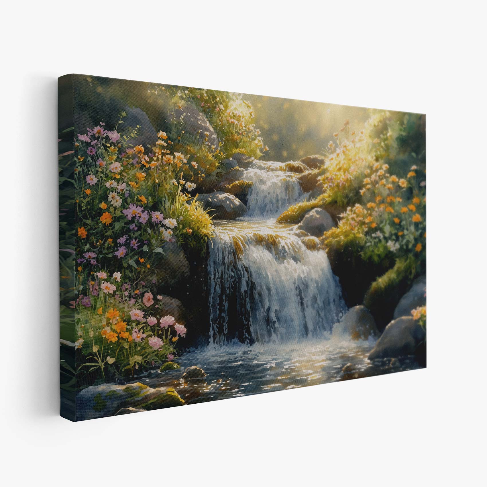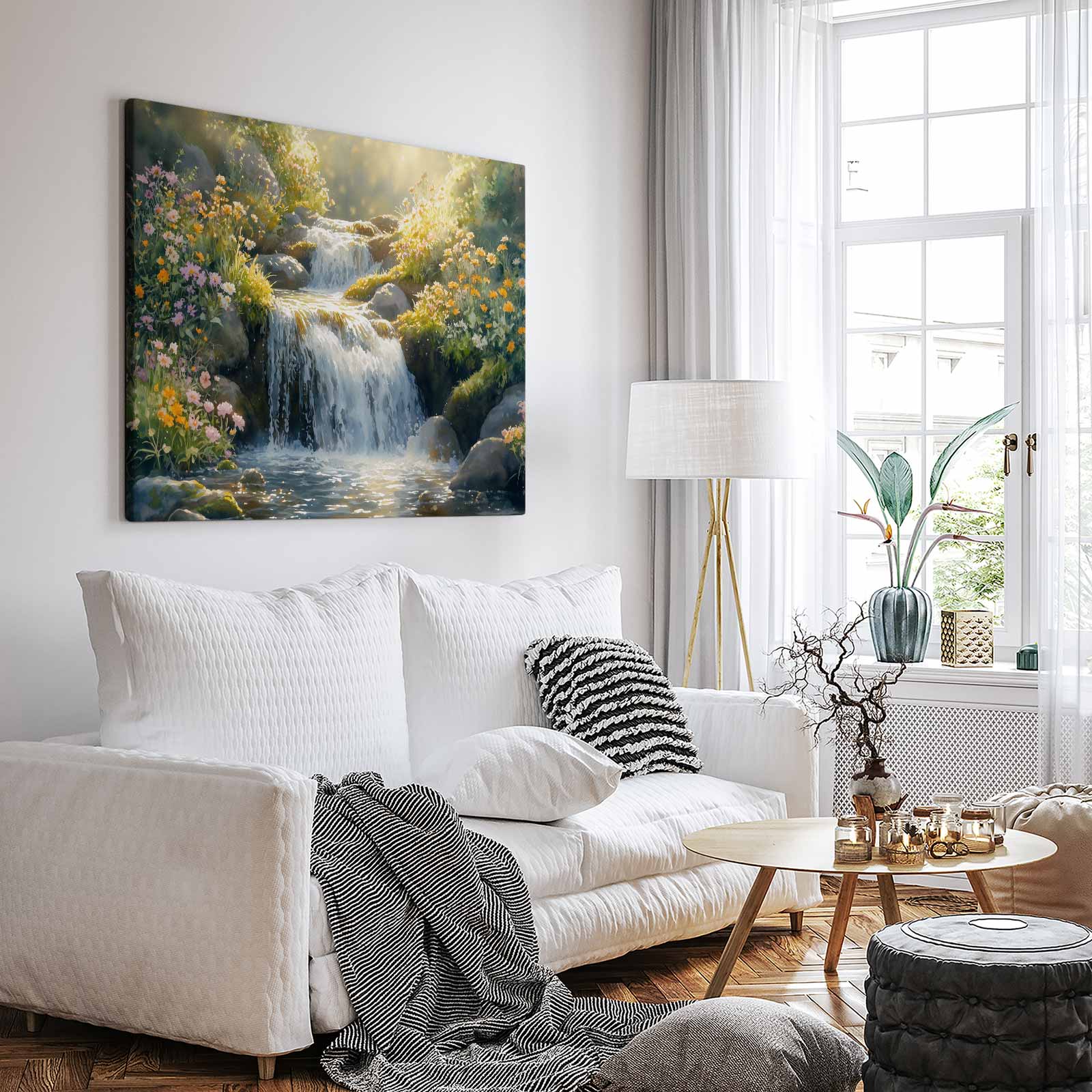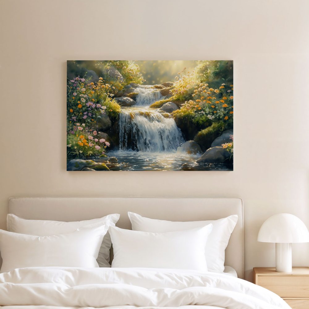 Terug naar collectie / Schilderijen / Bloemen Schilderij / Betoverend waterval bloementuin