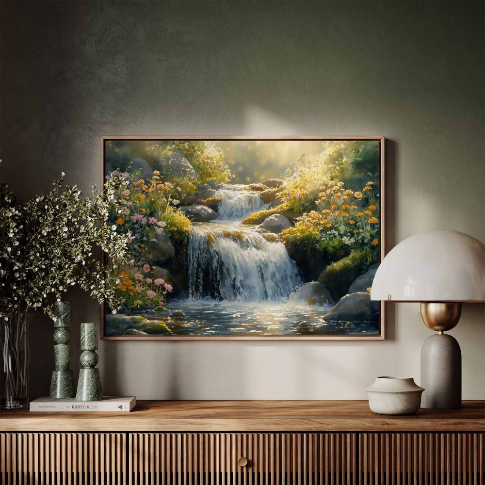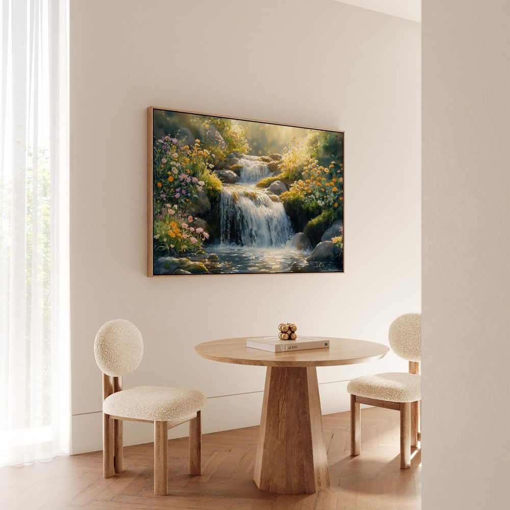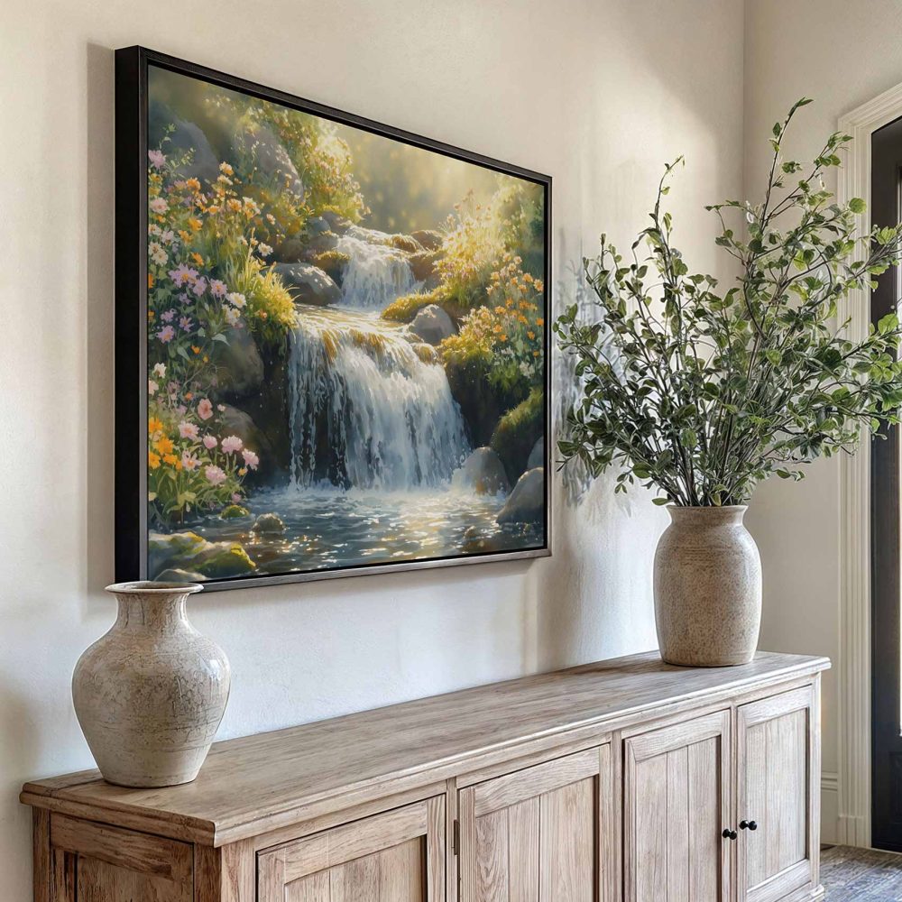 Terug naar collectie / Schilderijen / Bloemen Schilderij / Betoverend waterval bloementuin